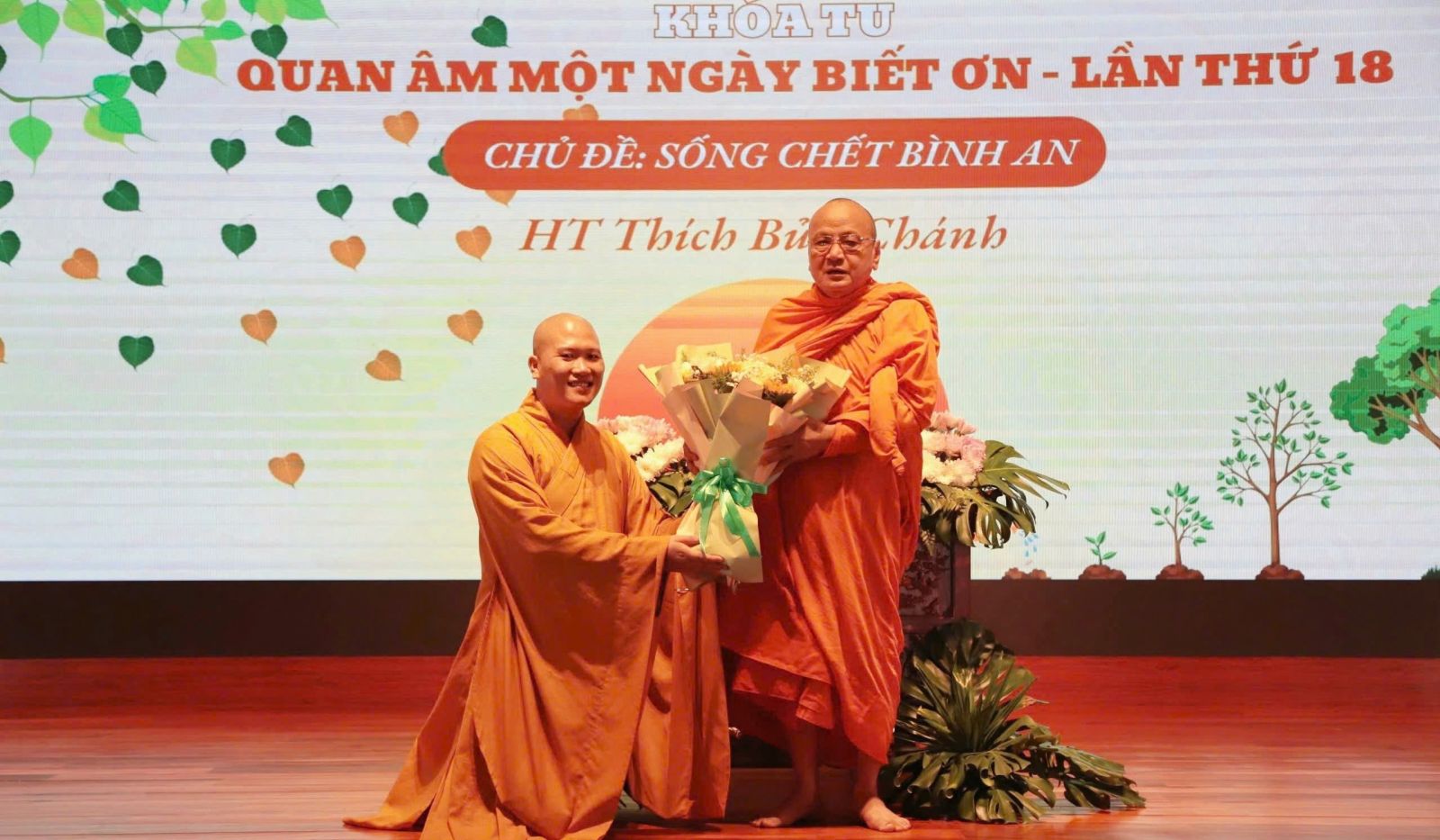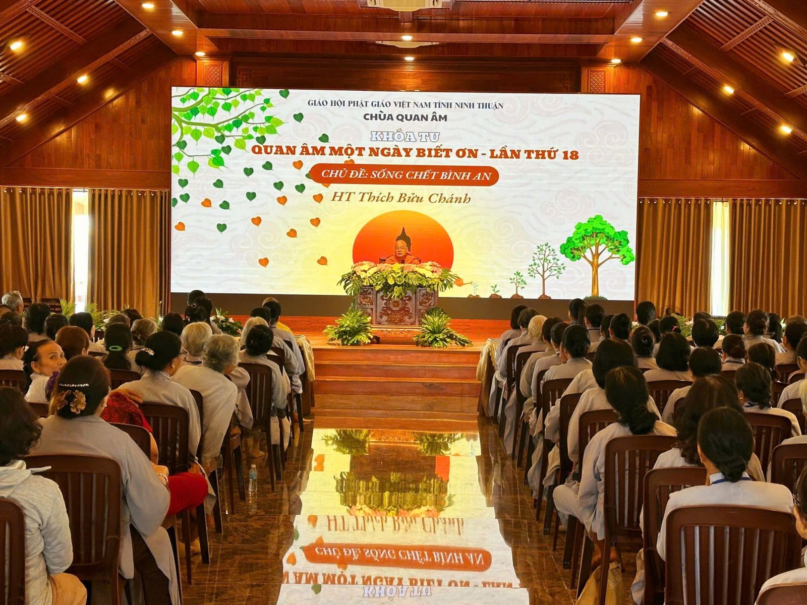 Nhận lời mời của ban tổ chức khóa tu Một Ngày Biết Ơn, hòa thượng Thích Bửu Chánh - Phó ban hoằng Pháp Trung ương GHPGVN, thuyết giảng đề tài SỐNG CHẾT BÌNH AN dành cho khoảng 300 Phật tử.
