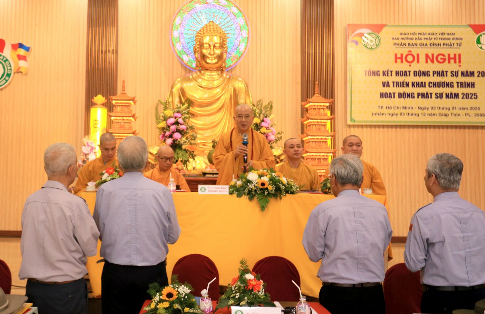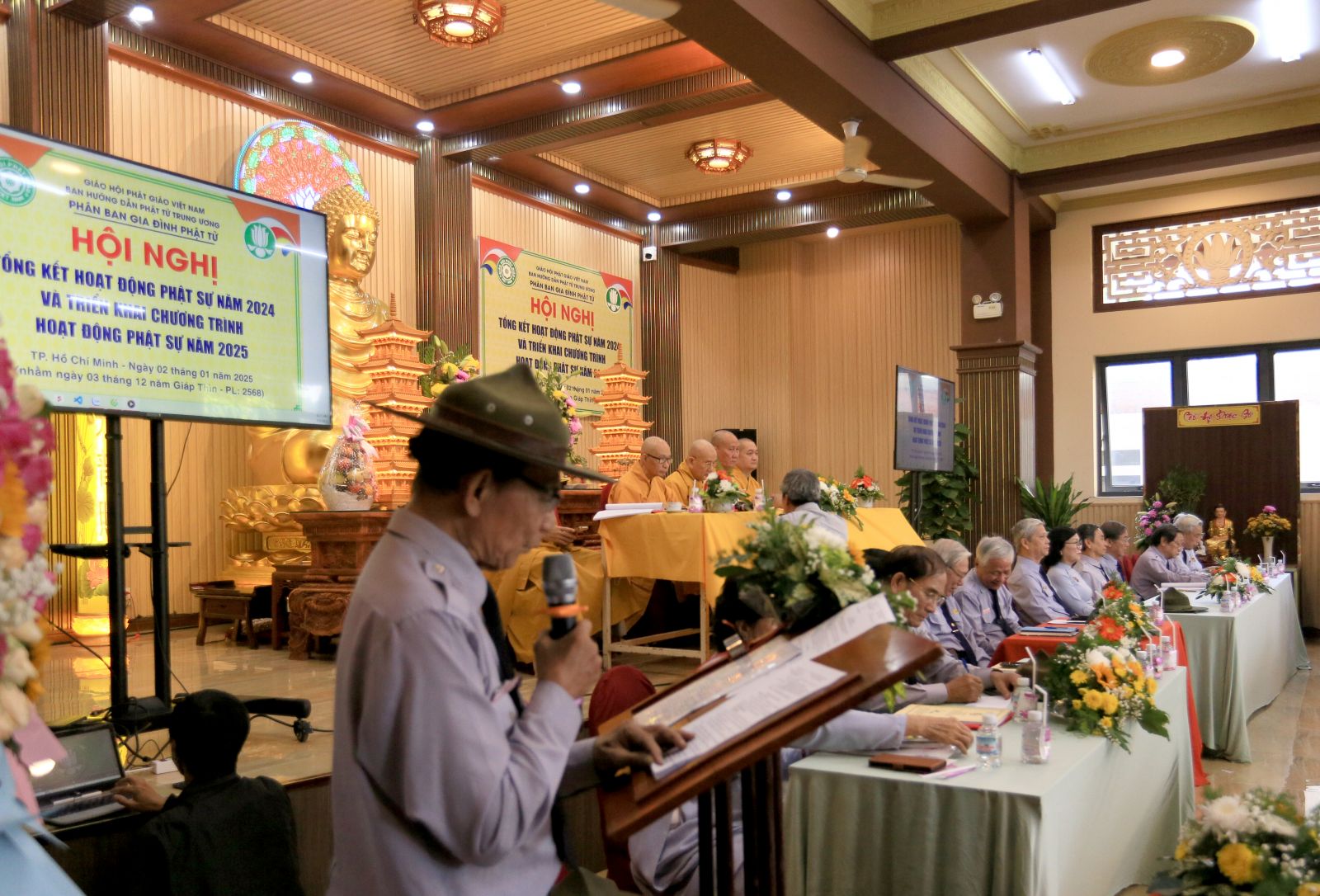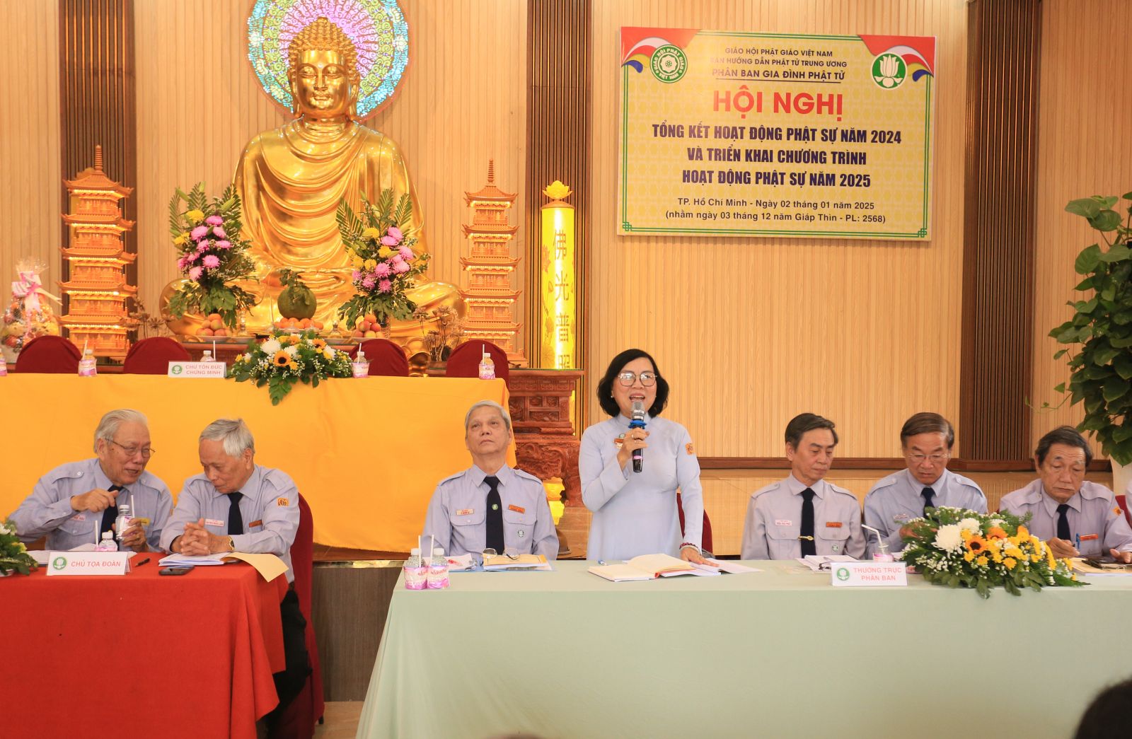 Phát biểu khai mạc Hội nghị, Huynh trưởng cấp Dũng Tâm Giới Phan Ngọc Thảo – Trưởng Phân ban Ban Hướng dẫn Phân ban GĐPT TW điểm lại những thành tựu đạt được trong năm 2024, theo đó các Phân ban Gia đình Phật tử trong cả nước đã long trọng tổ chức lễ Tưởng niệm 55 năm ngày mất của Cư sĩ bác sĩ Tâm Minh- Lê Đình Thám người sáng lập Gia đình Phật tử Việt Nam, các hoạt động xã hội, từ thiện, các hội trại và việc thăm và làm việc tại một số tỉnh thành trong cả nước. Việc tu học là vấn đề quan trọng trong tổ chức Gia đình Phật tử, Gia đình Phật tử đào luyện người Phật tử đi theo con đường trung đạo mà Đức Phật đã thuyết giảng và được quý Chư Tôn đức giảng dạy.