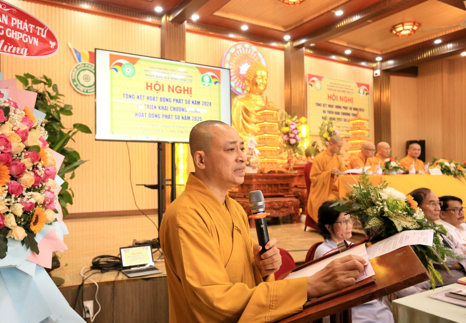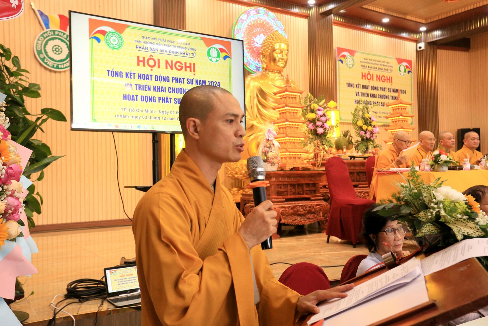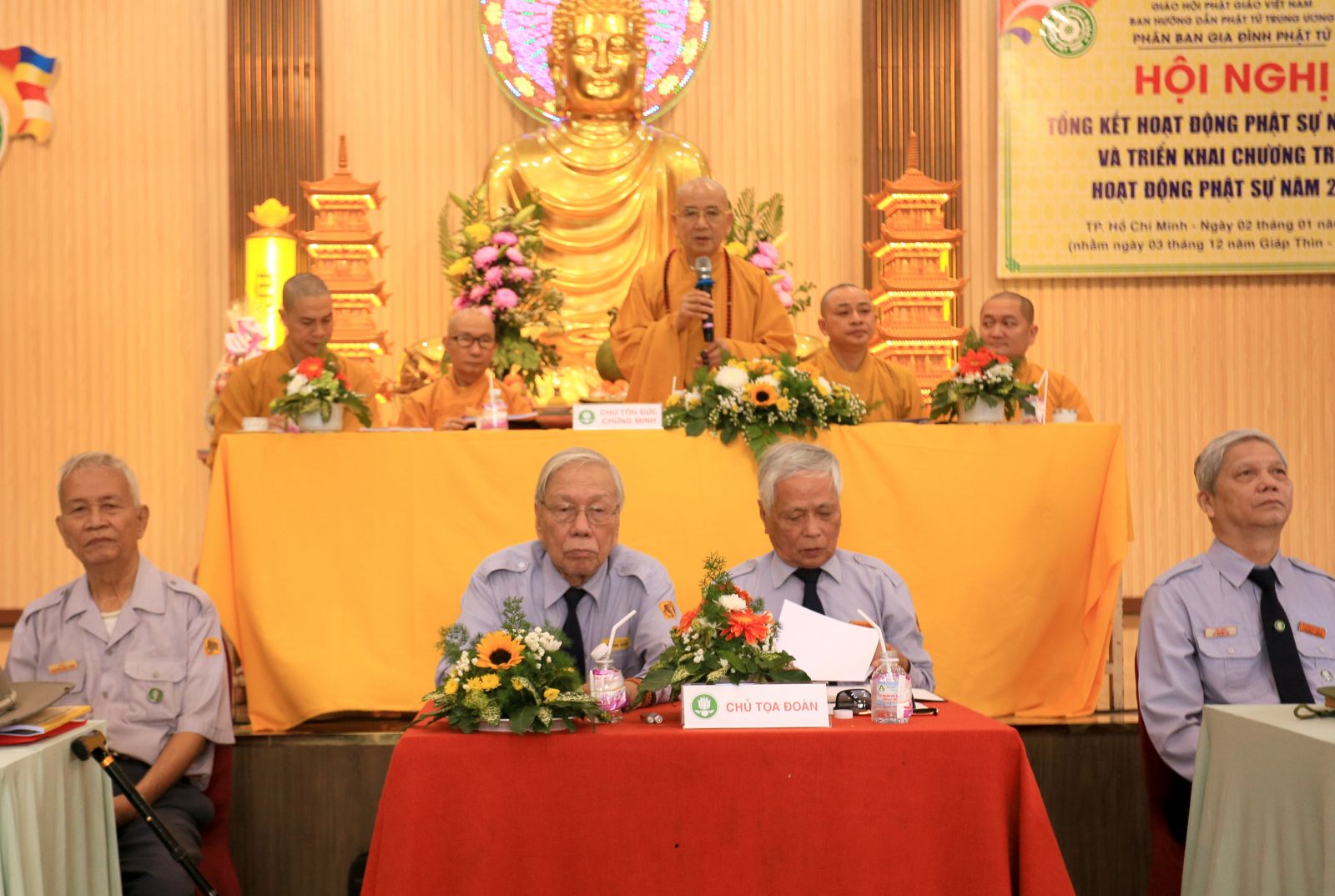 Phát biểu khai mạc Hội nghị, Huynh trưởng cấp Dũng Tâm Giới Phan Ngọc Thảo – Trưởng Phân ban Ban Hướng dẫn Phân ban GĐPT TW điểm lại những thành tựu đạt được trong năm 2024, theo đó các Phân ban Gia đình Phật tử trong cả nước đã long trọng tổ chức lễ Tưởng niệm 55 năm ngày mất của Cư sĩ bác sĩ Tâm Minh- Lê Đình Thám người sáng lập Gia đình Phật tử Việt Nam, các hoạt động xã hội, từ thiện, các hội trại và việc thăm và làm việc tại một số tỉnh thành trong cả nước. Việc tu học là vấn đề quan trọng trong tổ chức Gia đình Phật tử, Gia đình Phật tử đào luyện người Phật tử đi theo con đường trung đạo mà Đức Phật đã thuyết giảng và được quý Chư Tôn đức giảng dạy.