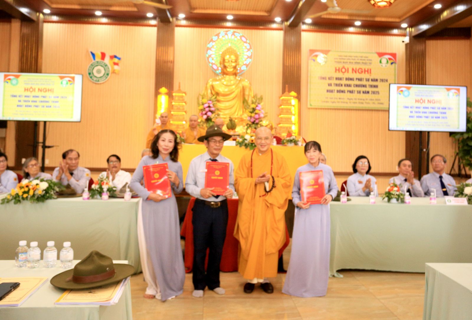Quang lâm chứng minh và phát biểu sách tấn có chư vị giáo phẩm: Trưởng lão Hòa thượng Thích Nguyên Quang – Thành viên Hội đồng Chứng minh, Chứng minh Ban Hướng dẫn Phật tử Trung ương; Hòa thượng Thích Khế Chơn – Phó Chủ tịch Hội đồng Trị sự, Trưởng Ban Hướng dẫn Phật tử Trung ương; Thượng tọa Thích Phước Nghiêm - Ủy viên Thường trực, Phó trưởng Ban thường trực Ban Hướng dẫn Phật tử Trung ương; Thượng tọa Thích Quảng Tiến – Phó Chủ tịch kiêm Chánh Thư ký Ban Hướng dẫn Phật tử Trung ương.