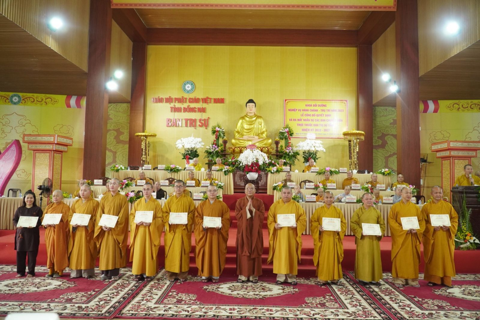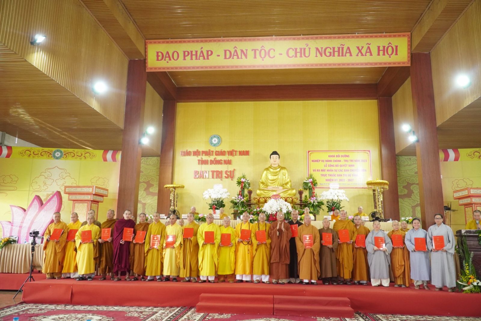 Kết thúc 3 ngày, khóa Bồi dưỡng nghiệp vụ hành chính – trụ trì năm 2023, với 8 huynh trưởng tham gia đã được cấp giấy chứng nhận hoàn thành Chương trình Bồi dưỡng hành chính – trụ trì năm 2023 do Ban Trị sự GHPGVN tỉnh Đồng Nai tổ chức từ ngày 05/10/2023 đến ngày 07/10/2023.