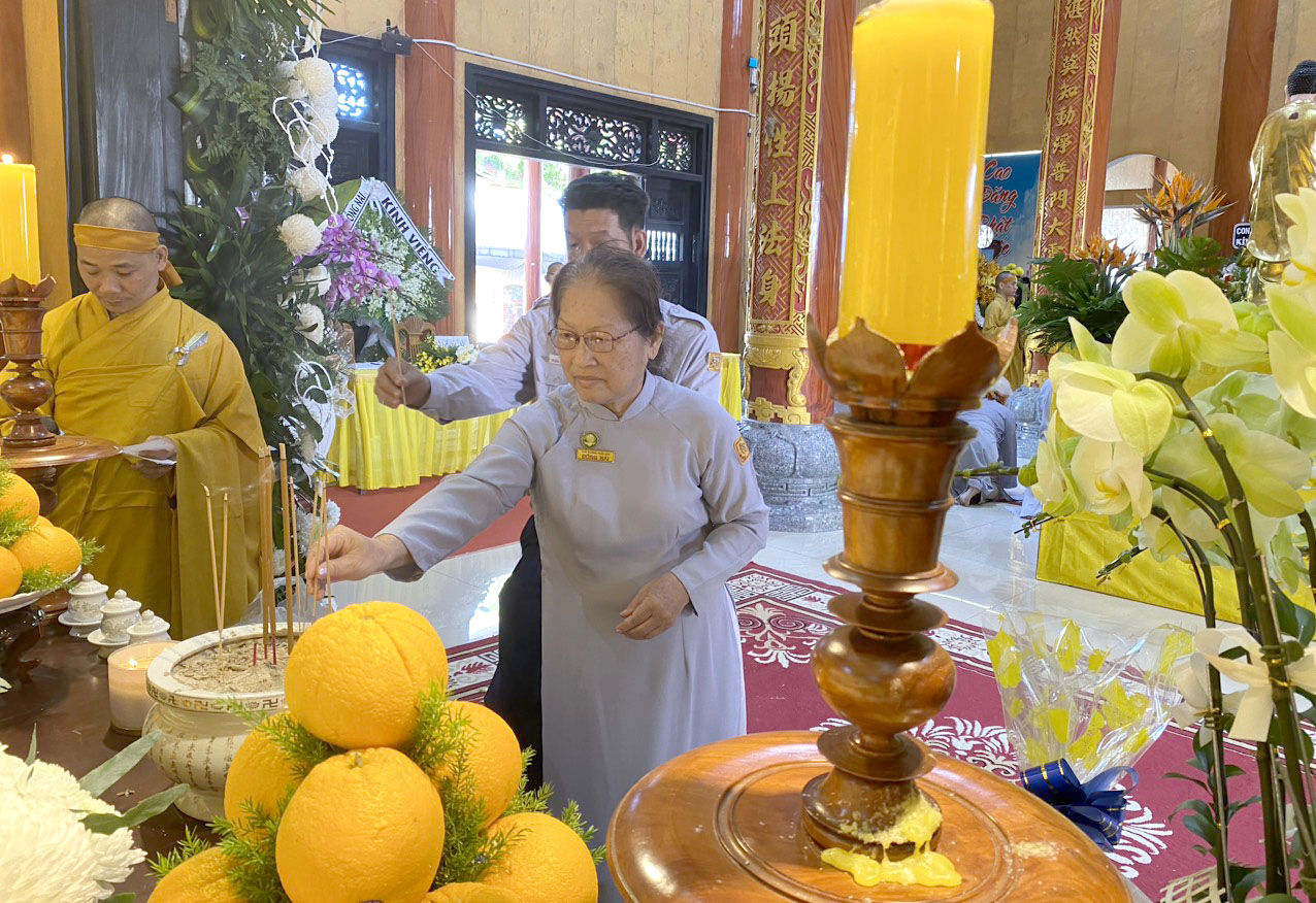 Về đảnh lễ Giác linh Cố Trưởng lão Hòa thượng thượng Minh hạ Chánh có Huynh trưởng cấp Tấn Diệu Huệ Đoàn Thị Cúc làm trưởng đoàn; Huynh trưởng cấp Tín Như Điền Huỳnh Tấn Sơn; Huynh trưởng cấp Tín Thiện Tâm Trần Văn Thành; Huynh trưởng cấp Tín Nguyên Nghĩa Hoàng Kim Hòa.