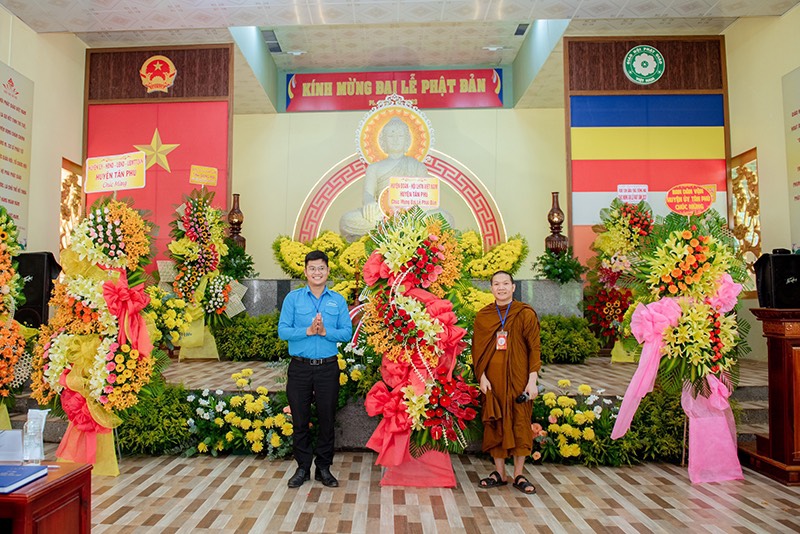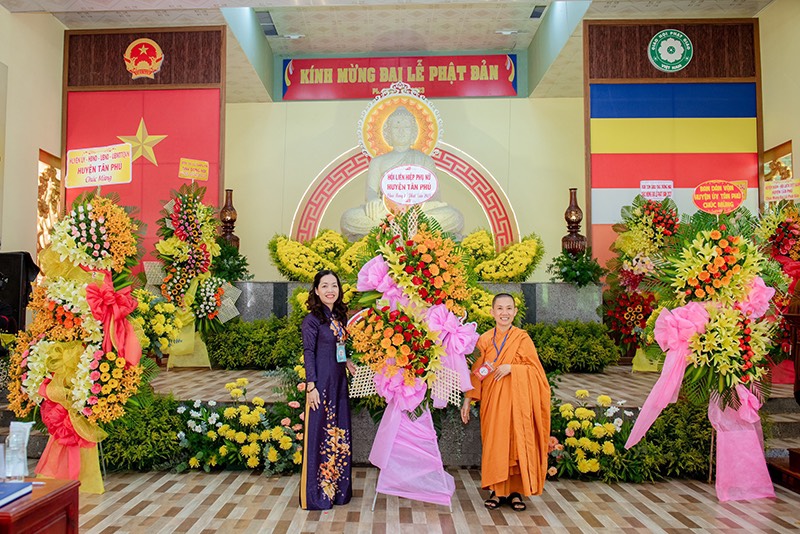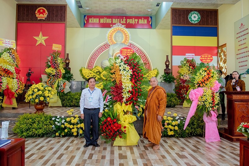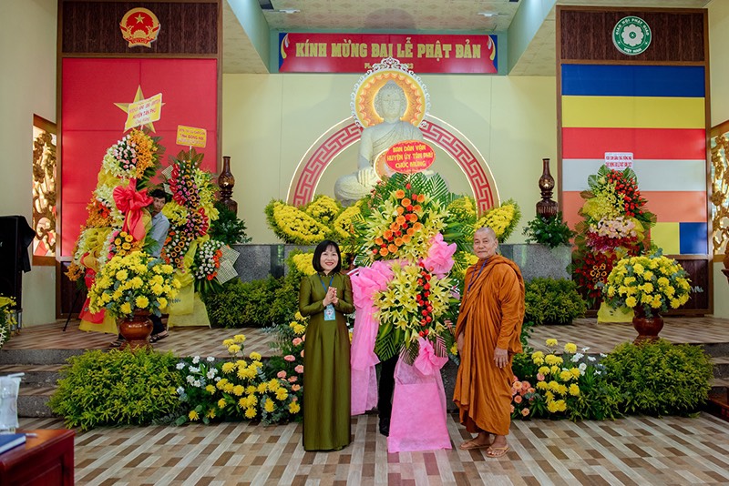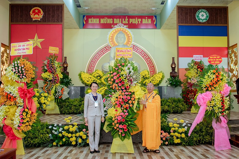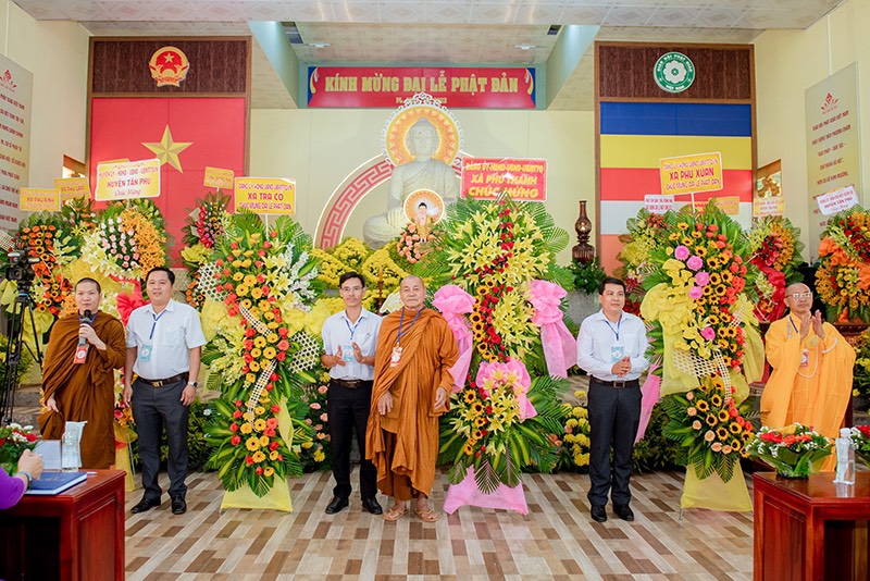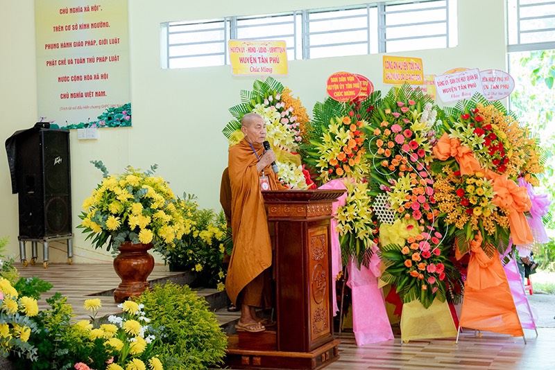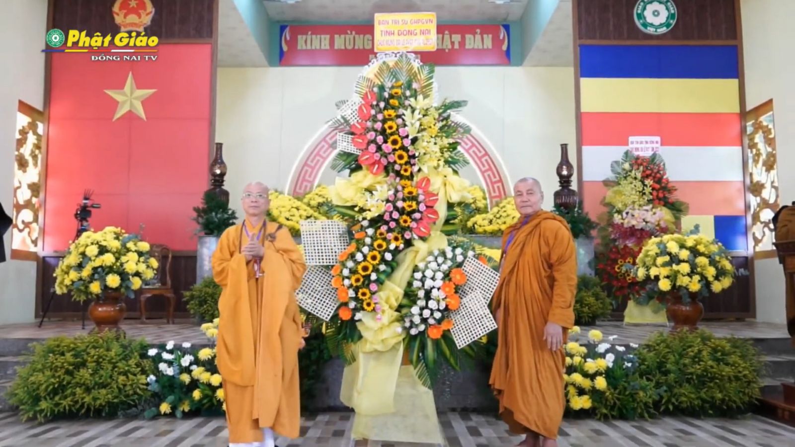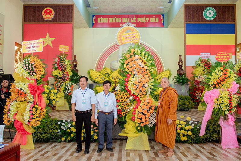 Buổi lễ đã đón nhận những lẵng hoa chúc mừng của Ban Trị sự GHPGVN tỉnh Đồng Nai, Ban Tôn giáo, các cấp chính quyền, các sở, ban ngành trên địa bàn huyện, xã cùng quý Thiện nam, tín nữ trong và ngoài huyện đã trao tặng đến đại diện BTC đại lễ.