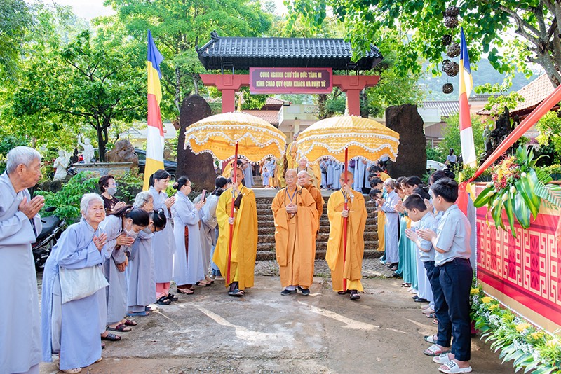 Chứng minh và tham dự đại lễ, vinh dự đón tiếp TT. Thích Huệ Khai – Ủy viên thường trực Hội đồng trị sự GHPGVN, Trưởng ban Trị sự GHPGVN tỉnh Đồng Nai; HT. Thích Pháp Cần – Trưởng Ban Trị sự kiêm Trưởng ban Tăng sự GHPGVN huyện Tân Phú, trưởng Ban tổ chức đại lễ; ĐĐ. Thích Thiện Trí – Phó Thư ký kiêm Chánh Văn phòng BTS tỉnh; ĐĐ. Thích Huệ Thới – Ủy viên kiêm phó Văn phòng BTS tỉnh; TT. Thích Quảng Trường – Phó ban thường trực BTS huyện; ĐĐ. Thích Pháp Lợi – Ủy viên BTS tỉnh, Phó ban kiêm Chánh Thư ký BTS huyện; ĐĐ. Thích Nguyên Trung – Phó ban kiêm Trưởng Ban Nghi lễ huyện; NS. Thích Nữ Hằng Liên – Ủy viên BTS tỉnh, trưởng Ban văn hóa huyện; NS. Thích Nữ Như Phương – Trưởng Phân ban Ni giới huyện cùng chư Tôn thiền đức Tăng Ni thành viên Ban trị sự tỉnh, huyện, trụ trì các chùa, cơ sở tự viện, điểm sinh hoạt tôn giáo cùng Phật tử các đạo tràng trên địa bàn huyện, đã trở về tham dự đông đủ.