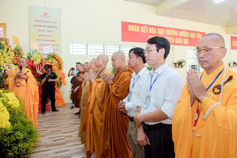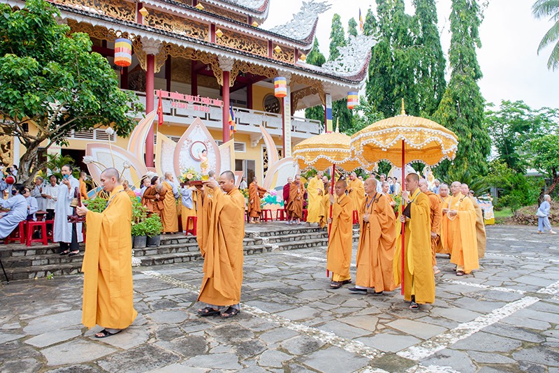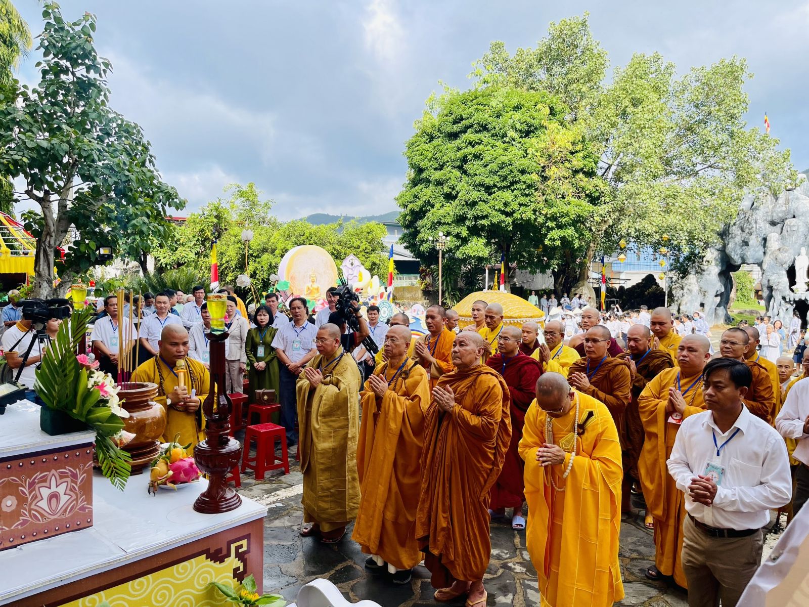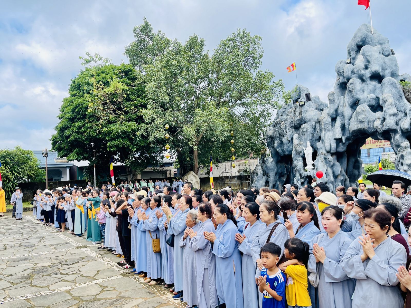 Bắt đầu buổi lễ là nghi thức niệm Phật cầu gia bị, chào Quốc kỳ, Đạo kỳ và lắng lòng với phút mặc niệm để tưởng nhớ lịch đại Tổ sư, chư tôn đức Tăng Ni, các anh hùng chiến sĩ, đồng bào đã hi sinh cống hiến cho sự sinh tồn và phát triển của Đạo Pháp – Dân Tộc.