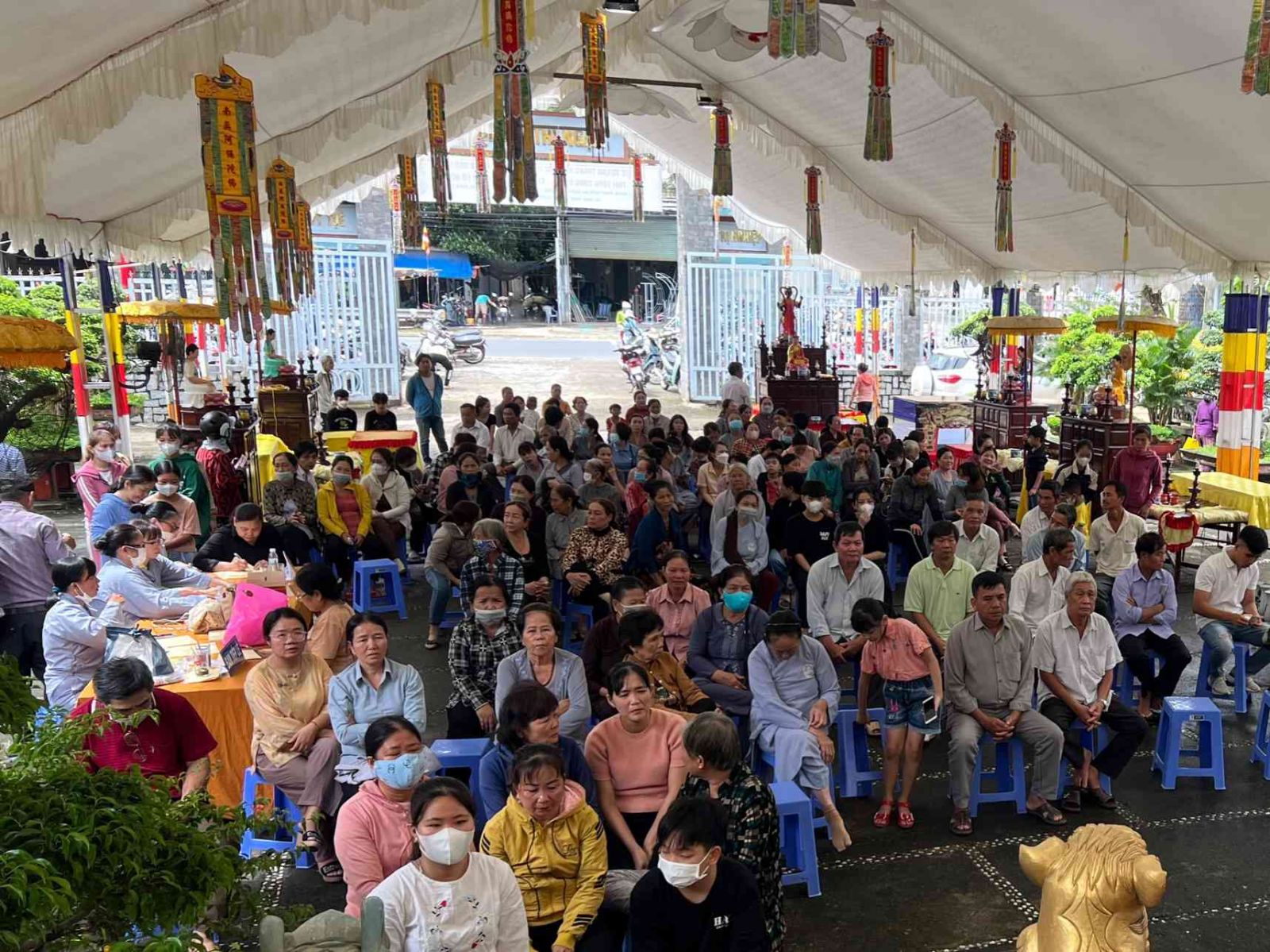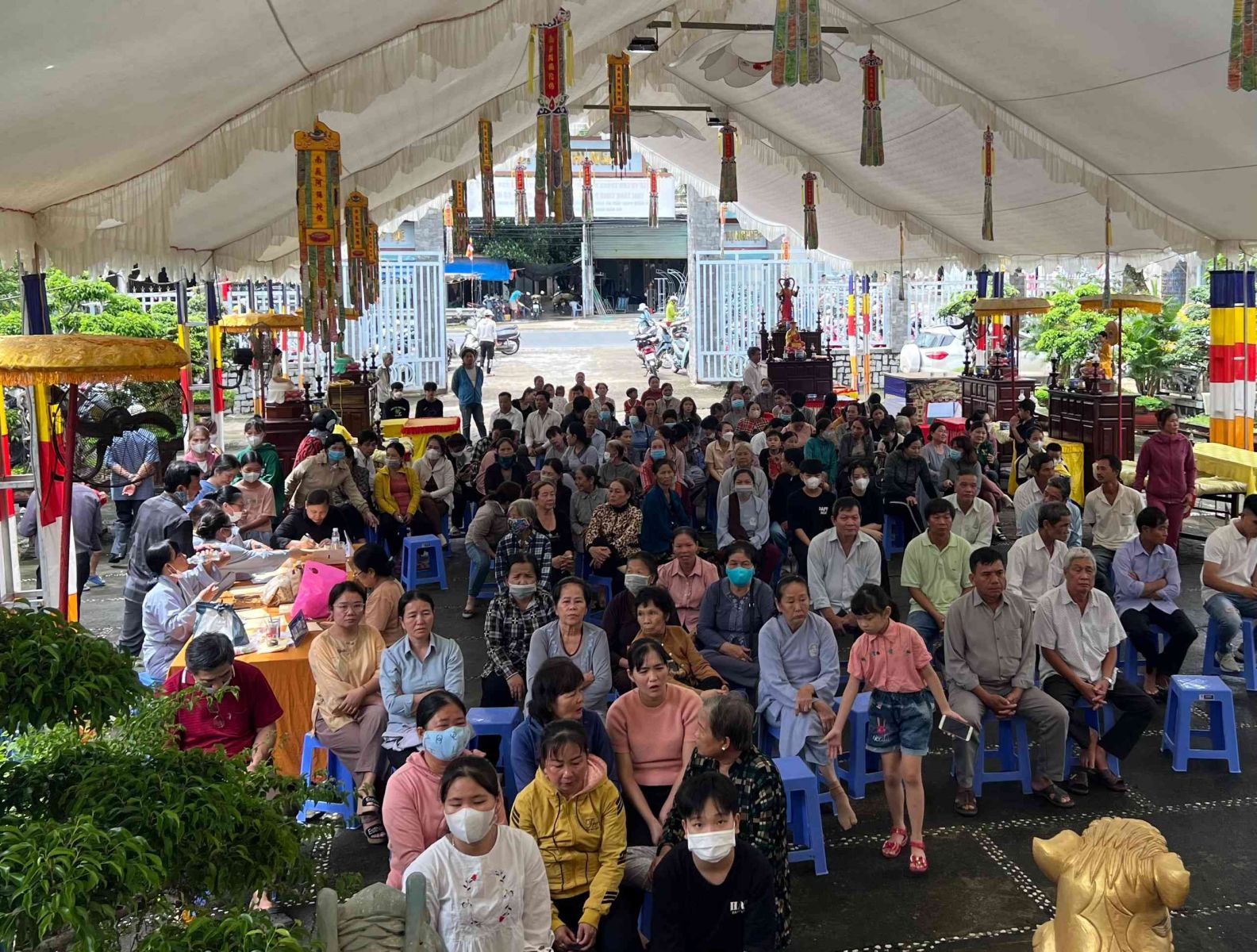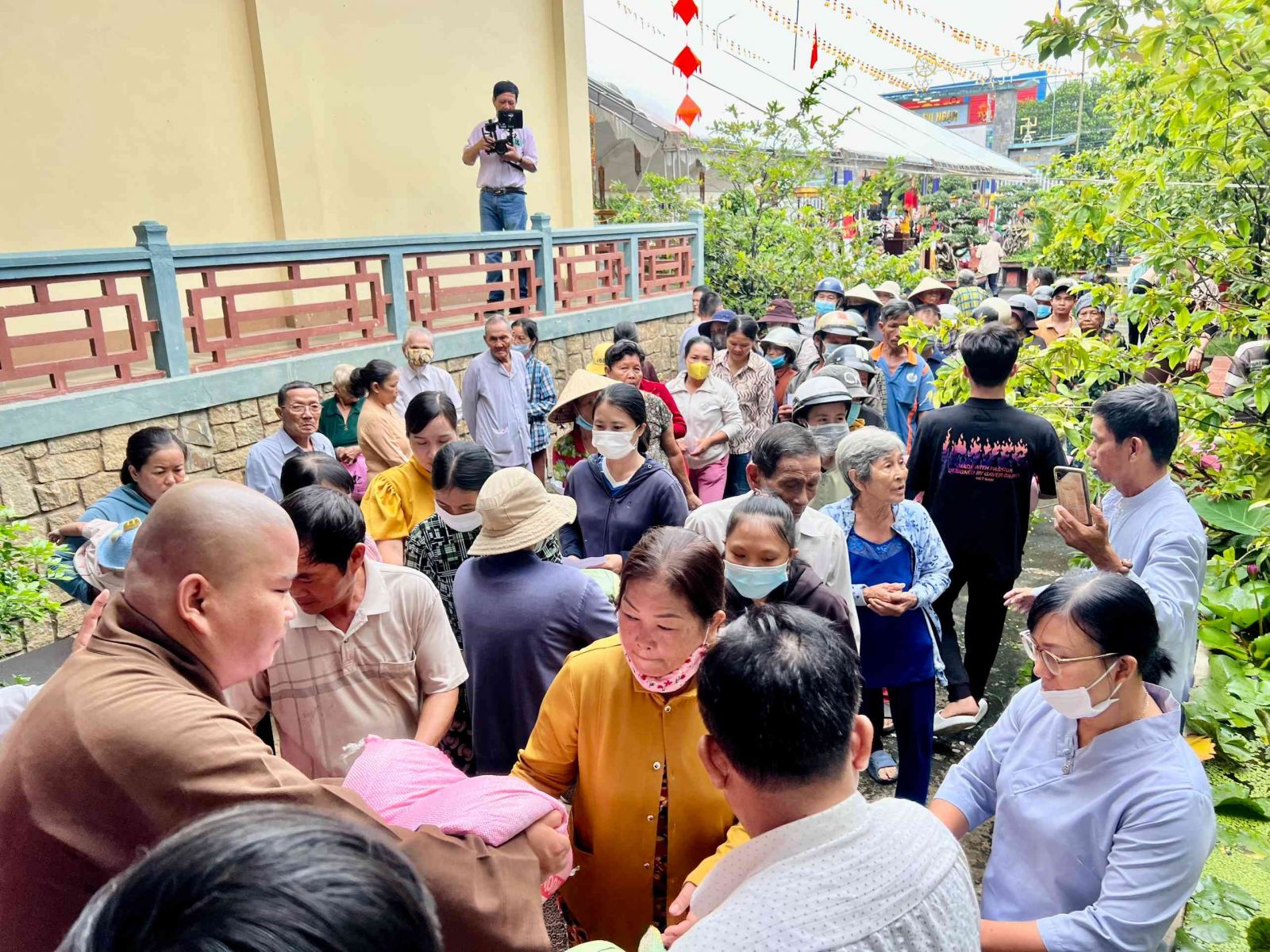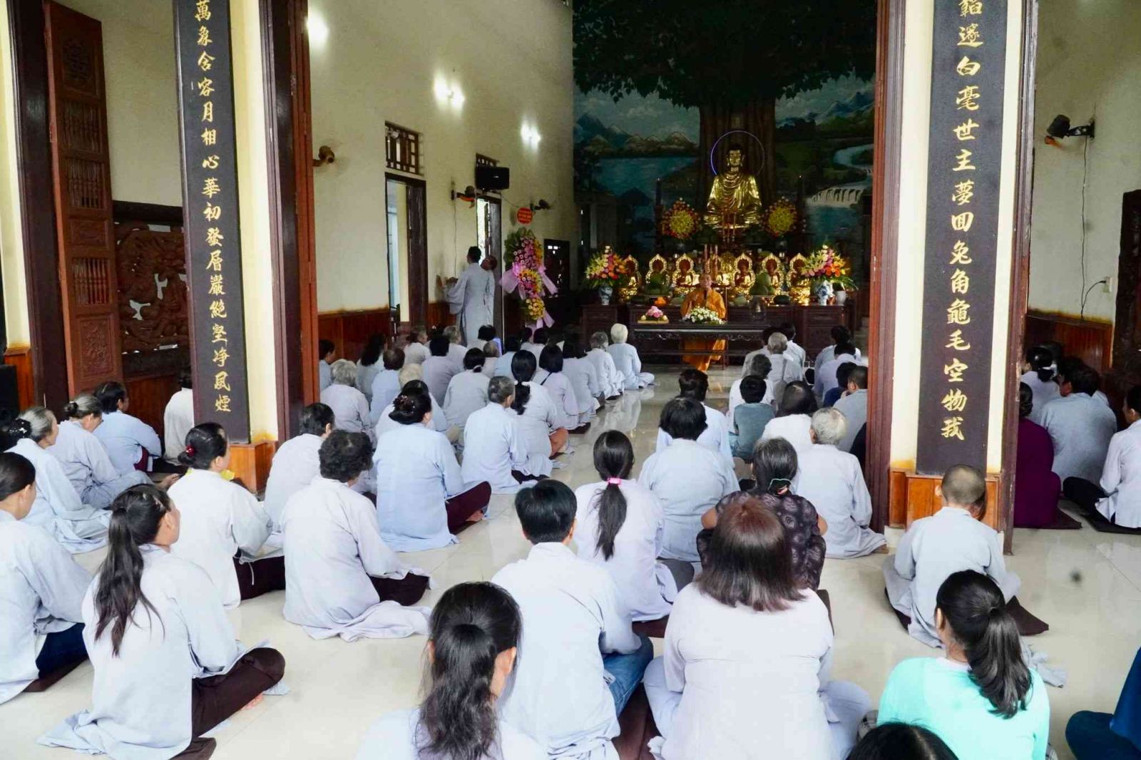Sau buổi thuyết giảng ĐĐ Thích Pháp Vinh - Trưởng Ban TTTT GHPGVN huyện Tân Phú - Trưởng ban tổ chức cùng chư tôn đức Tăng và Phật tử trang nghiêm cử hành nghi lễ Ngọ cúng, tụng sám Vu Lan đồng cầu nguyện cho ông bà cha mẹ hiện tiền được phúc thọ tăng long, ông bà cha mẹ quá vãng được siêu sanh miền Cực Lạc.