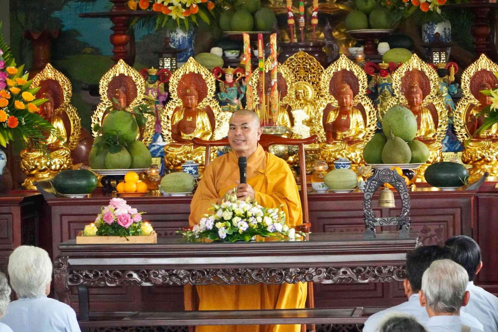 Tiếp tục chương trình đại lễ Thượng tọa Thích Trí Minh - Trưởng ban Hoằng Pháp kiêm trưởng ban Giáo dục GHPGVN huyện Tân Phú - Giảng viên học viện GHPGVN tại TPHCM đã dành thời gian quý báu quang lâm chia sẻ về nguồn gốc của lễ Vu lan - Báo hiếu. Qua đó, Thượng tọa mong muốn những người con, hãy yêu thương chăm sóc cha mẹ; hãy tích cực tu tập, làm những việc lành, đem công đức hồi hướng đến ông bà, cha mẹ đã qua đời được siêu sinh cõi tịnh, cha mẹ hiện tiền tăng phúc tăng thọ. "Đó chính là cách báo hiếu thiết thực và ý nghĩa nhất của những người con Phật",