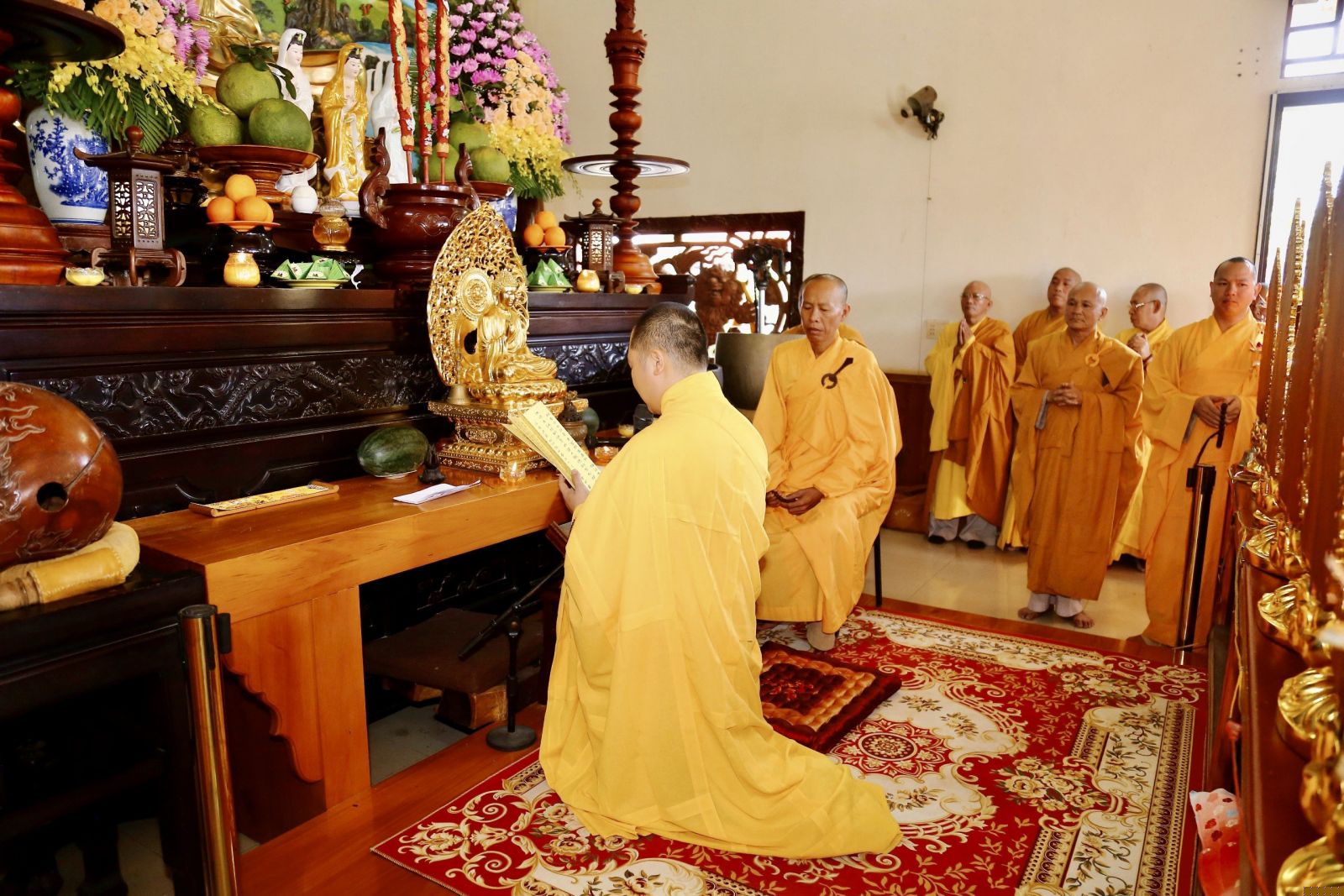 Tại buổi lễ ĐĐ. Thích Pháp Vinh - Trưởng ban tổ chức đã tác bạch cung thỉnh ĐĐ. Thích Nguyên Trung - Phó BTS kiêm Trưởng ban Nghi lễ - Vi tác sám chủ cùng chư tôn đức ban Kinh sư quang lâm đạo tràng cử hành lễ Ngọ cúng và lễ Cung tiến Giác linh cố Thượng toạ, nhất tâm cầu nguyện trong niềm kính ngưỡng của môn nhơn pháp quyến.