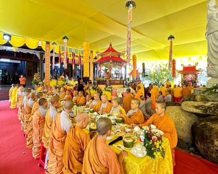 Buổi sáng ngày thứ hai của đại lễ, Ban Tổ chức đã trang nghiêm Ngọ cúng kỳ nguyện an lành cho hiện tiền phụ mẫu và thành kính dâng lễ trai tăng, cung kính niệm ân Tam bảo, chư Tôn thiền đức hiện tiền.