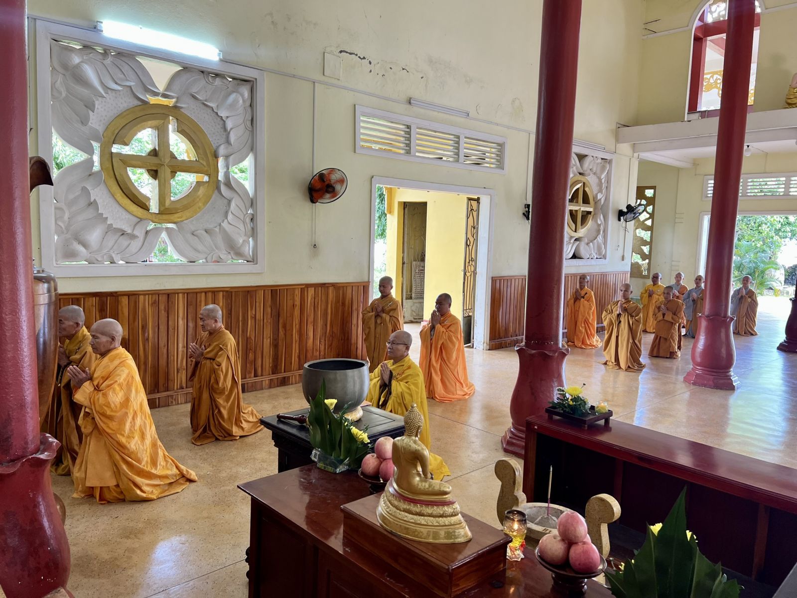 Chư Tăng theo thứ đệ hạ lạp trang nghiêm phân lập, ĐĐ Thích Nguyên Trung - Chánh Na hạ trường trình bạch duyên sự, kiểm chúng, kiết giới. Sau đó tại buổi lễ, TT Thích Trí Minh - Giáo thọ sư hạ trường đã trùng tuyên giới luật Phật chế, để ôn lại những lời Phật dạy nhằm trưởng dưỡng đạo tâm, thanh tịnh Tăng đoàn, trang nghiêm Giáo hội.