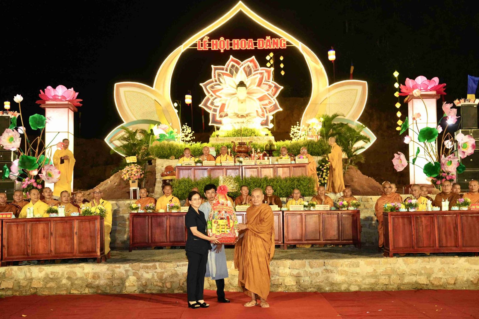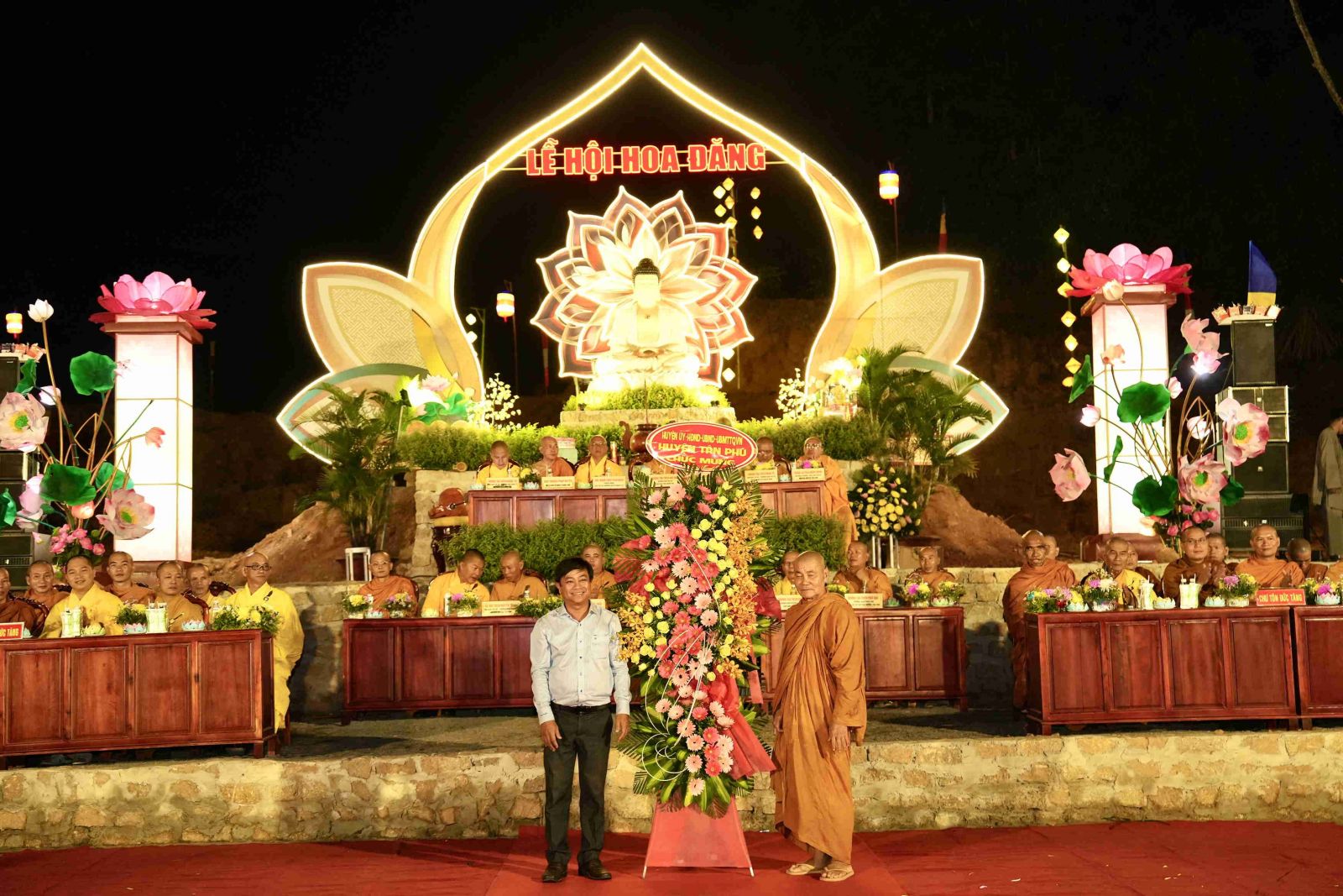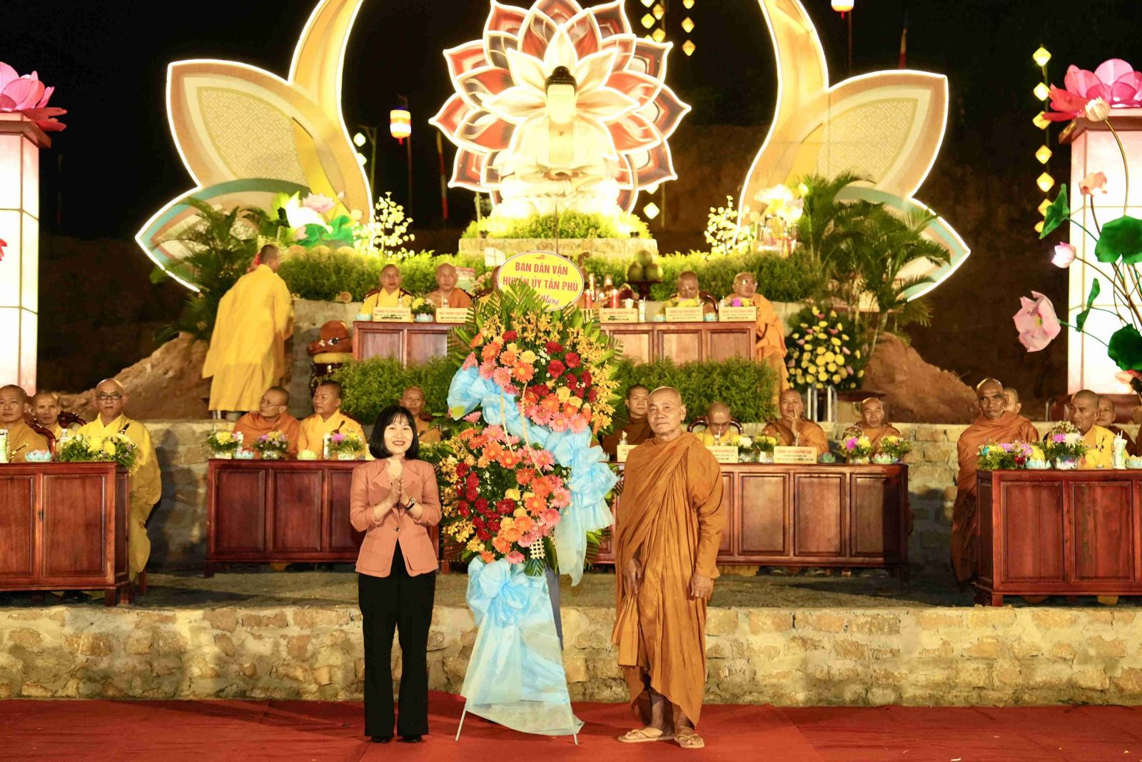 Cứ như vậy đêm lễ hội hoa đăng cúng dường ngày khánh đản của đấng từ phụ A Di Đà tiếp nối với những đóa hoa tươi thắm của người con Phật dâng lên cúng dường. Và tại buổi lễ cũng hân hoan đón nhận những lẵng hoa tươi thắm của Ban Trị sự GHPGVN tỉnh Đồng Nai trao tặng, những lẵng hoa của các ban trực thuộc Ban Trị sự GHPGVN huyện Tân Phú và của các cấp lãnh đạo chính quyền trao tặng và dâng lên cúng dường ngày Đại lễ.