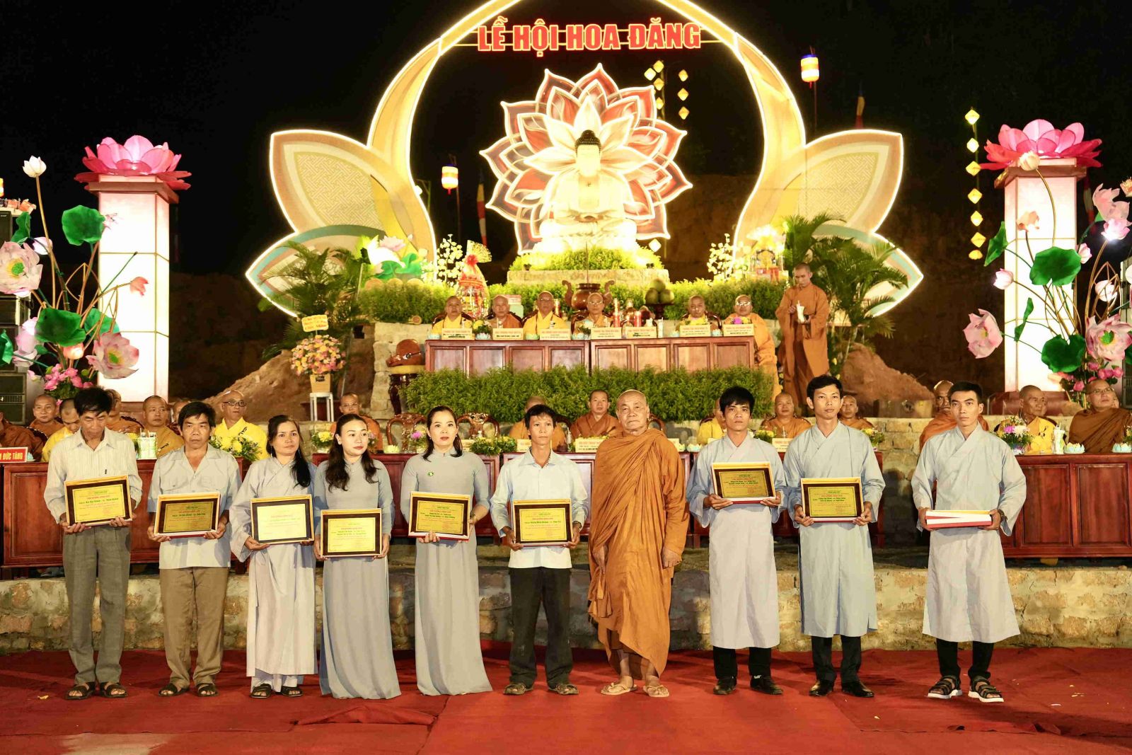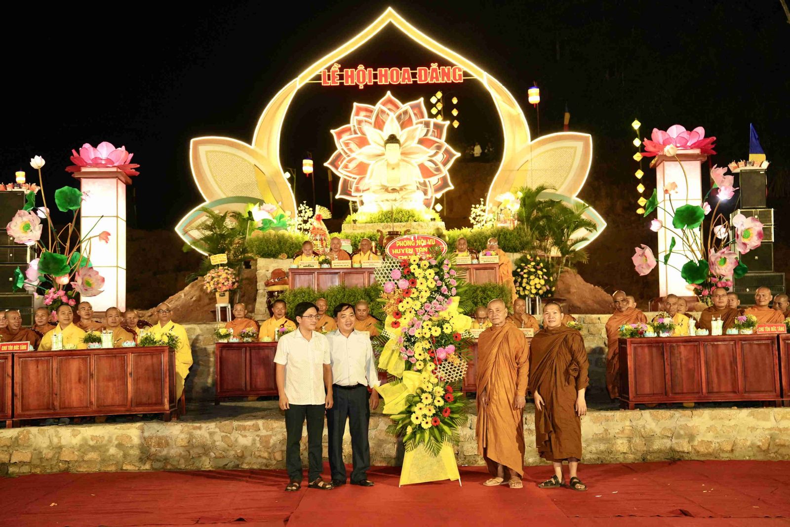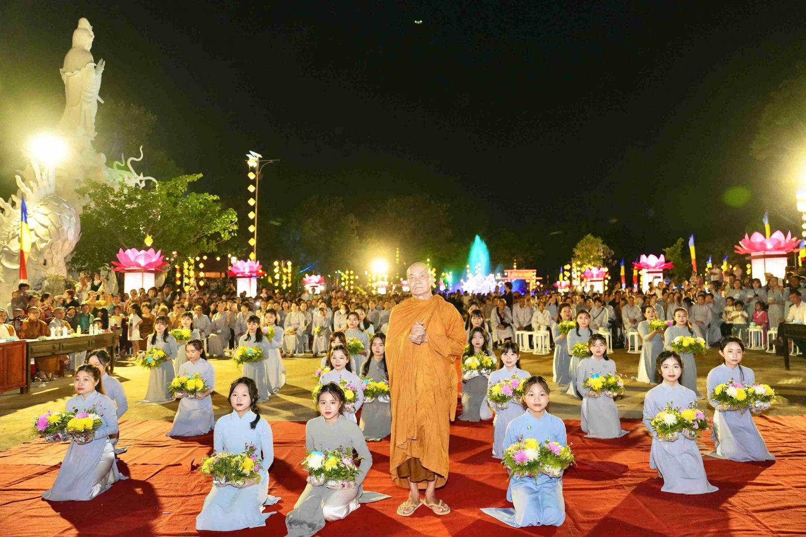 Cứ như vậy đêm lễ hội hoa đăng cúng dường ngày khánh đản của đấng từ phụ A Di Đà tiếp nối với những đóa hoa tươi thắm của người con Phật dâng lên cúng dường. Và tại buổi lễ cũng hân hoan đón nhận những lẵng hoa tươi thắm của Ban Trị sự GHPGVN tỉnh Đồng Nai trao tặng, những lẵng hoa của các ban trực thuộc Ban Trị sự GHPGVN huyện Tân Phú và của các cấp lãnh đạo chính quyền trao tặng và dâng lên cúng dường ngày Đại lễ.