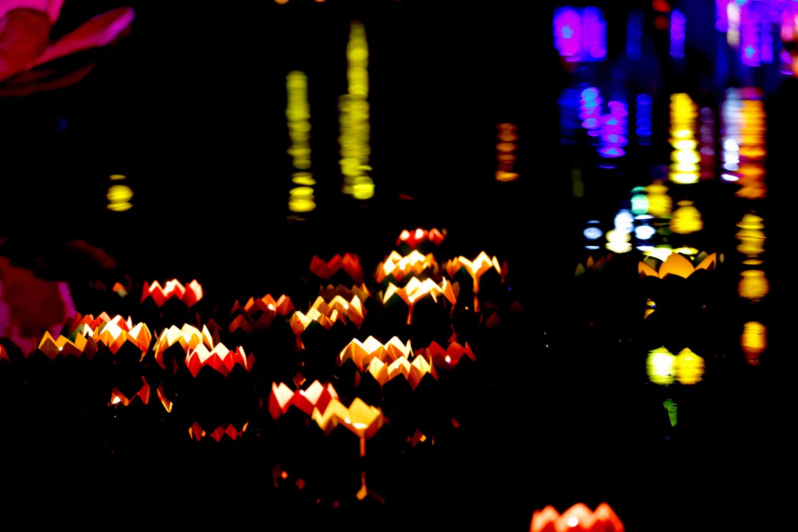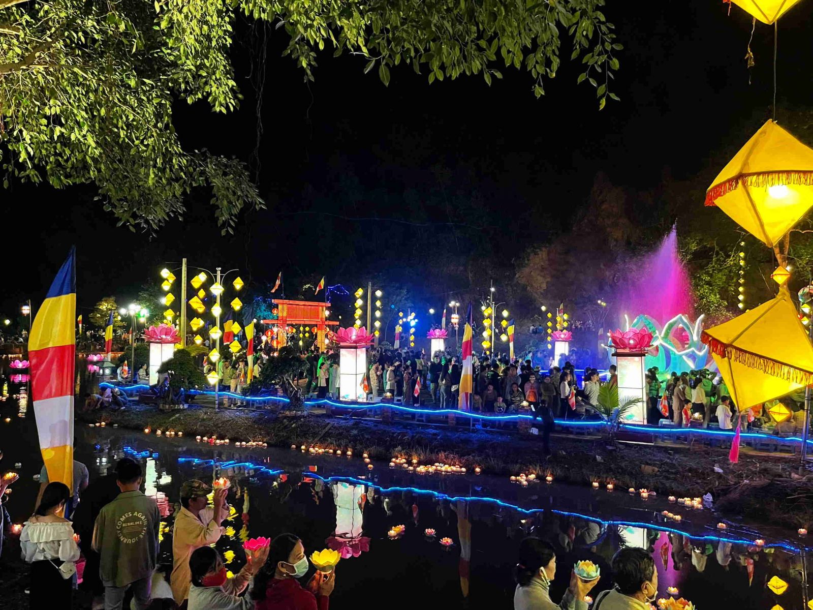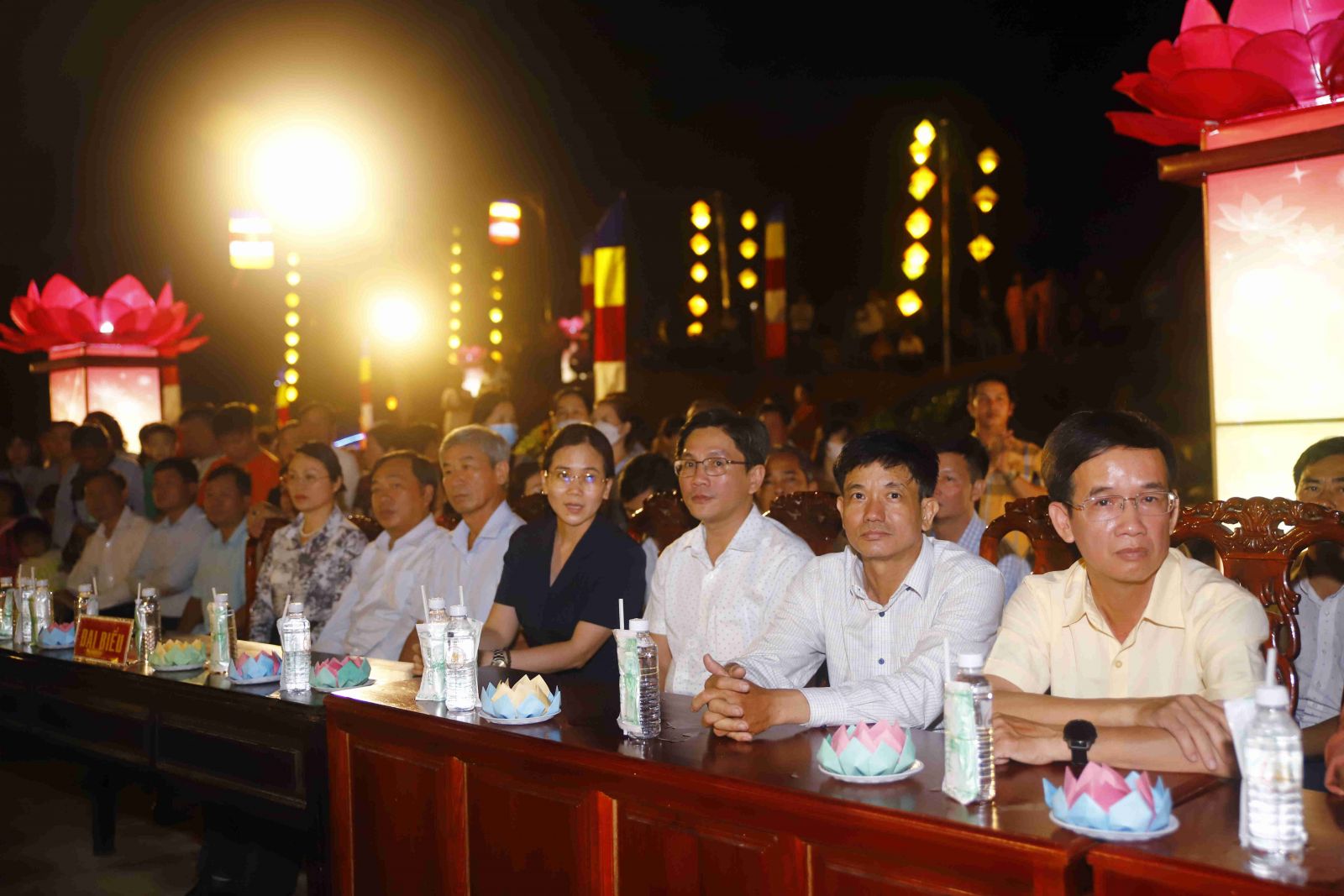 Tại buổi lễ, HT. Thích Pháp Cần đã phát biểu khai mạc chương trình đêm lễ hội hoa đăng, Thành kính niệm ơn chư Tôn túc Hòa thượng, Thượng tọa, Ni trưởng, Ni sư, Đại đức Tăng Ni và toàn thể Phật tử đã đáp lại lời mời về tham dự chương trình đêm lễ hội hoa đăng ý nghĩa này, đêm nay tại bầu trời Tân Phú trên đỉnh đồi thấp thoáng hay dưới triền xanh khoan nhặt, câu Phật hiệu linh thiêng thấm vào từng hàng cây kẻ lá, từng lối sỏi thân quen, tạo nên nếp duyên đầy Đạo vị. Nến đã thắp, hương đã giăng, tín nguyện chuyên cần, tâm thành đã sẵn, xin thay mặt Ban tổ chức, tôi xin trân trọng tuyên bố khai mạc lễ hội hoa đăng “Thắp sáng đêm A-di-đà”