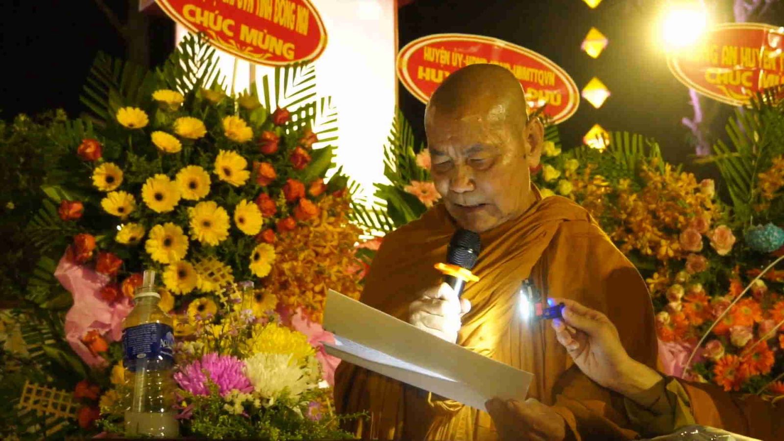 Trong buổi lễ, Tăng Ni và Phật tử cũng nghiêm trang đón nhận lời đạo từ của TT. Thích Huệ Khai – Trưởng ban Ban Trị sự GHPGVN tỉnh Đồng Nai đã tán thán chương trình buổi lễ thật trang nghiêm và nhiệm mầu, Ngài cũng bày tỏ niềm hoan hỷ đối với Hòa thượng viện chủ Chùa Linh Phú, tuy Ngài tuổi đã cao nhưng với hạnh nguyện lợi tha, Ngài đã tổ chức đêm lễ hội ý nghĩa với sự tham dự của đông đảo Tăng Ni và Phật tử, đó không chỉ thể hiện sự trọng đại của buổi lễ, mà còn mang lại niềm hạnh phúc lớn lao cho biết bao người con Phật trên mảnh đất Tân Phú này. Cuối lời, Thượng tọa gửi lời cầu nguyện cho buổi lễ được thành tựu trọn vẹn, cầu chúc Tăng Ni và Phật tử Chùa Linh Phú nói riêng và huyện Tân Phú nói chung được trượng thừa Phật lực, Phật pháp được xương minh.
