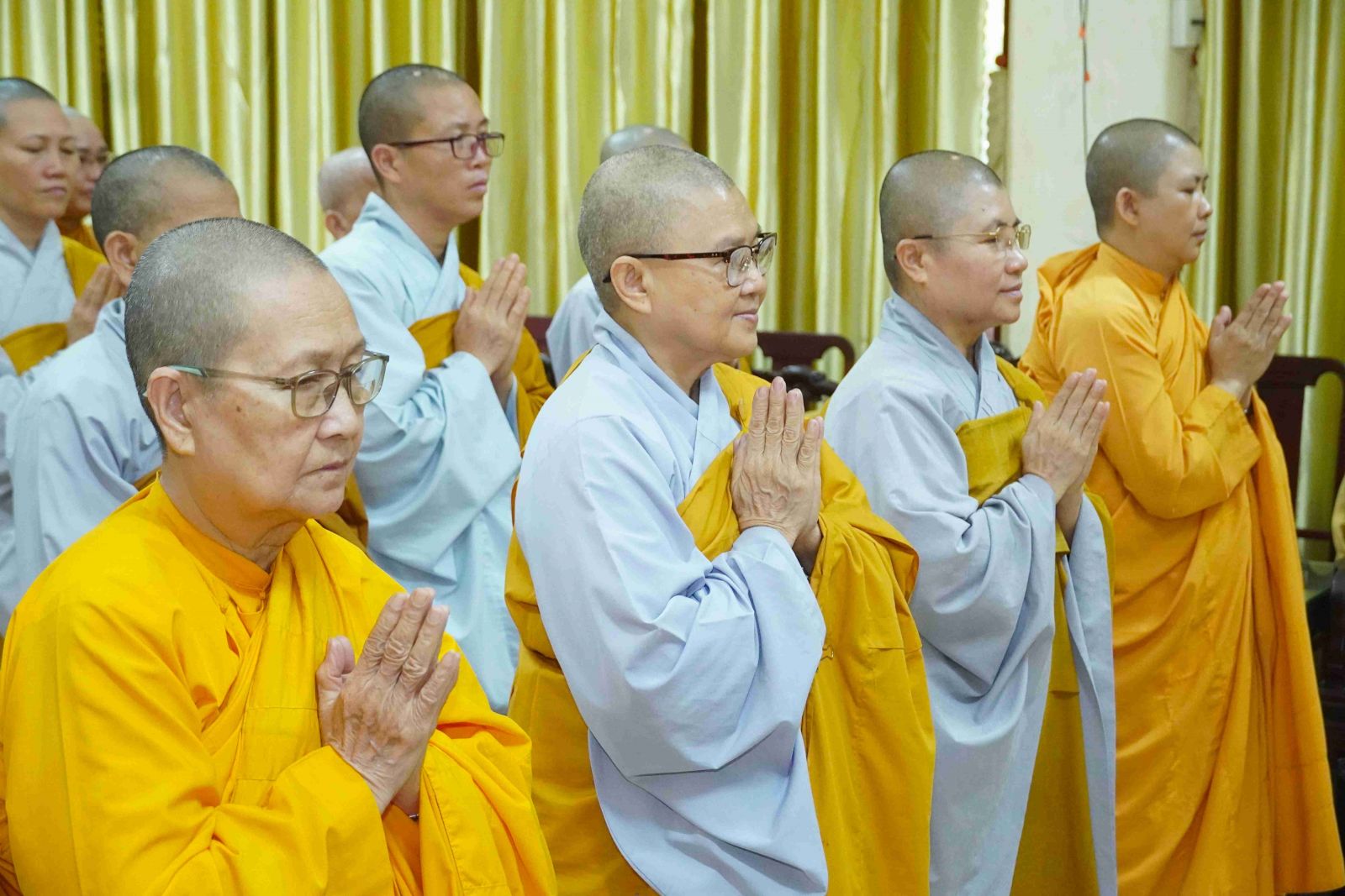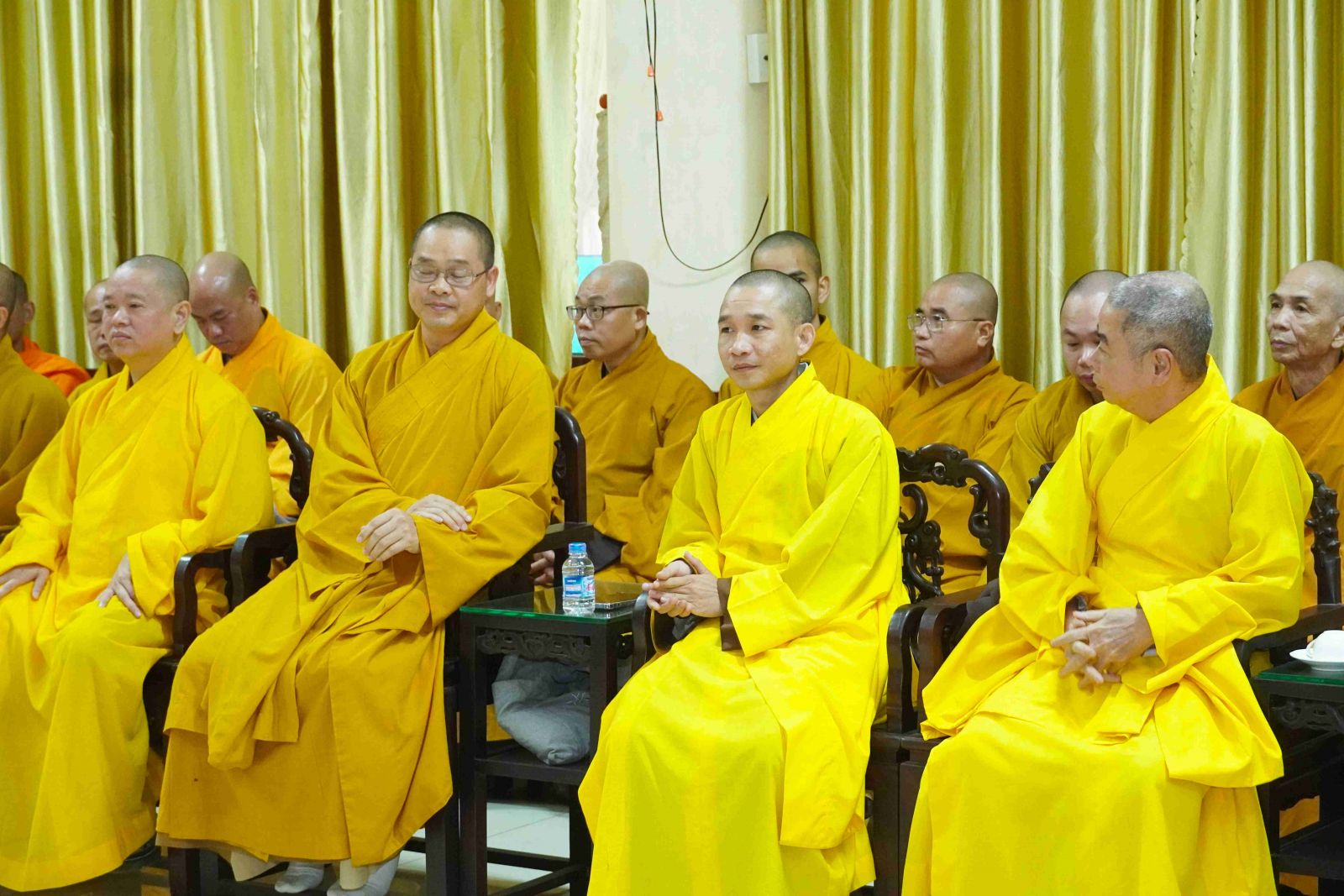 Đón tiếp Tăng Ni Ban Trị sự Phật giáo các huyện, thành phố có TT. Thích Huệ Khai - Ủy viên Thường trực HĐTS, Trưởng Ban Trị sự, Trưởng ban Tăng sự GHPGVN tỉnh Đồng Nai; HT. Thích Bửu Chánh - Ủy viên Thư ký HĐTS, Phó Trưởng ban Thường trực Ban Trị sự GHPGVN tỉnh; TT. Thích Huệ Sanh - Ủy viên HĐTS, Phó Ban Trị sự, Trưởng ban Hoằng pháp GHPGVN tỉnh; TT. Thích Thiện Pháp – Phó Ban Trị sự tỉnh, Trưởng Ban Trị sự GHPGVN huyện Nhơn Trạch; TT. Thích Minh Trì – Phó Ban Trị sự tỉnh, Trưởng Ban Trị sự GHPGVN huyện Trảng Bom; TT. Thích Minh Trí - Ủy viên Dự khuyết HĐTS, Phó Ban Trị sự tỉnh, Trưởng Ban Trị sự GHPGVN Tp. Biên Hòa; ĐĐ. Thích Đạt ma Toàn Hạnh – Phó Ban Trị sự GHPGVN tỉnh; NT. Thích nữ Như Dung – Phó Ban Trị sự, Trưởng Phân ban Ni giới GHPGVN tỉnh; cùng chư Tôn đức các ban ngành trực thuộc tỉnh.