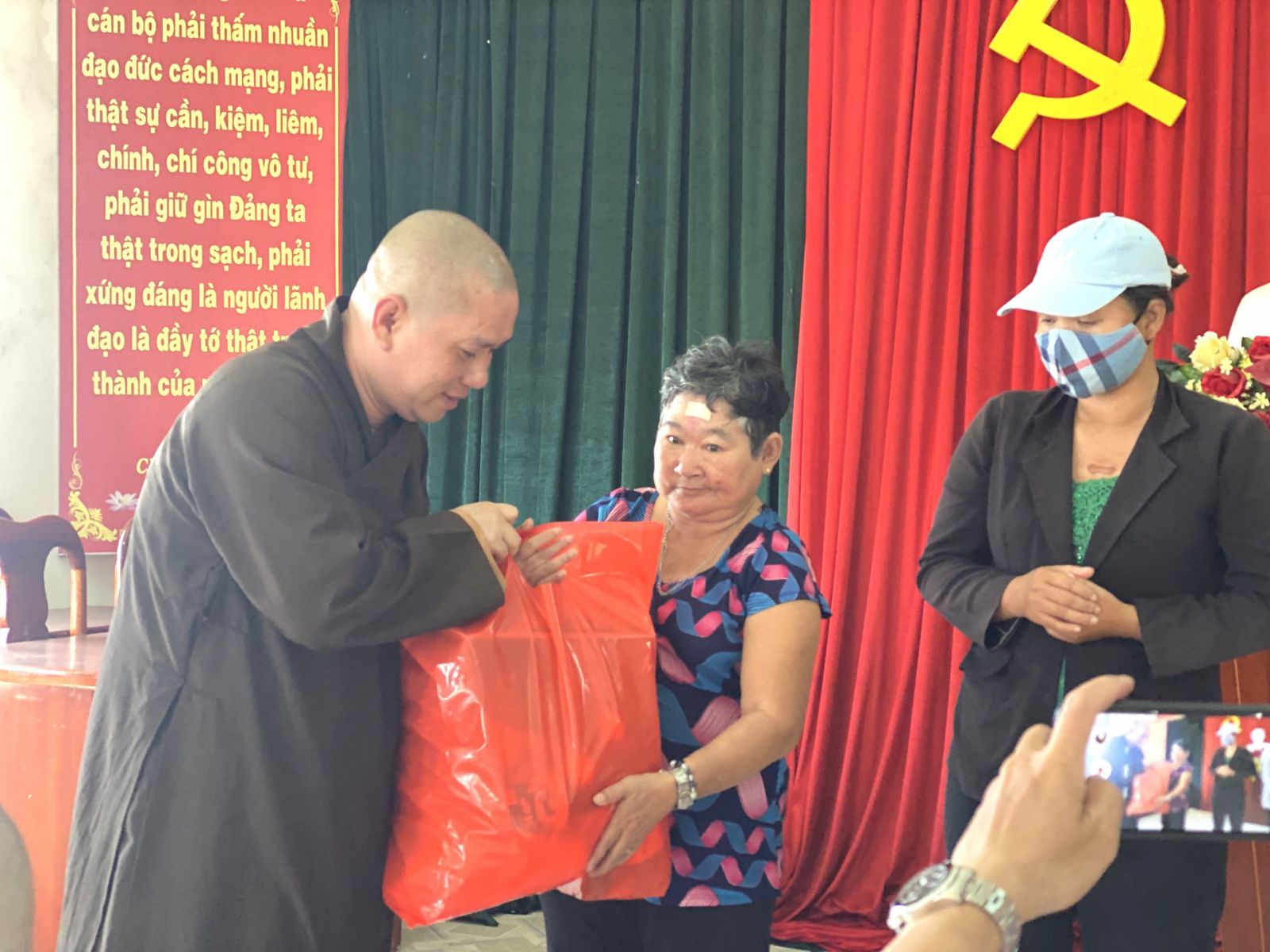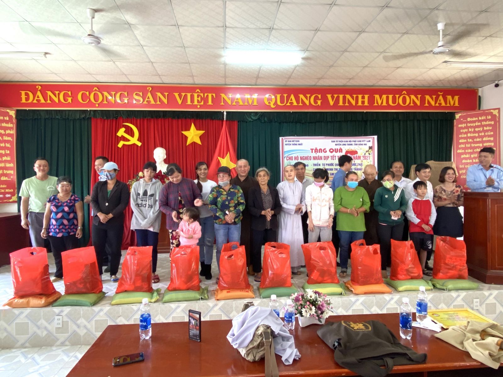 Đại Đức Thích Nguyên Thông - Phó trưởng ban Từ thiện xã hội GHPGVN tỉnh Đồng Nai, Trưởng ban Từ thiện xã hội GHPGVN huyện Long Thành, Trụ trì Thiền tự Phước Quang (xã Phước Thái, huyện Long Thành, Đồng Nai) làm trưởng đoàn. Chứng minh buổi tặng quà có: Đại Đức Thích Trung Thông - Phó trường ban Từ thiện xã hội GHPGVN huyện Long Thành, Trụ trì chùa Bửu Minh (thị trấn Long Thành); Đại Đức Thích Trúc Thông Nhuận - Thiền viện Đạo Huệ (xã Phước Thái, huyện Long Thành); Sư cô Thích nữ Diệu Thông - Ủy viên thủ quỹ ban Từ thiện xã hội GHPGVN huyện Long Thành, Trụ trì chùa Quan Âm; cùng quý mạnh thường quân là Công ty Hiệp Tuấn Phát (xã Long Phước, huyện Long Thành), Cửa hàng sữa Phước Thái (xã Phước Thái).