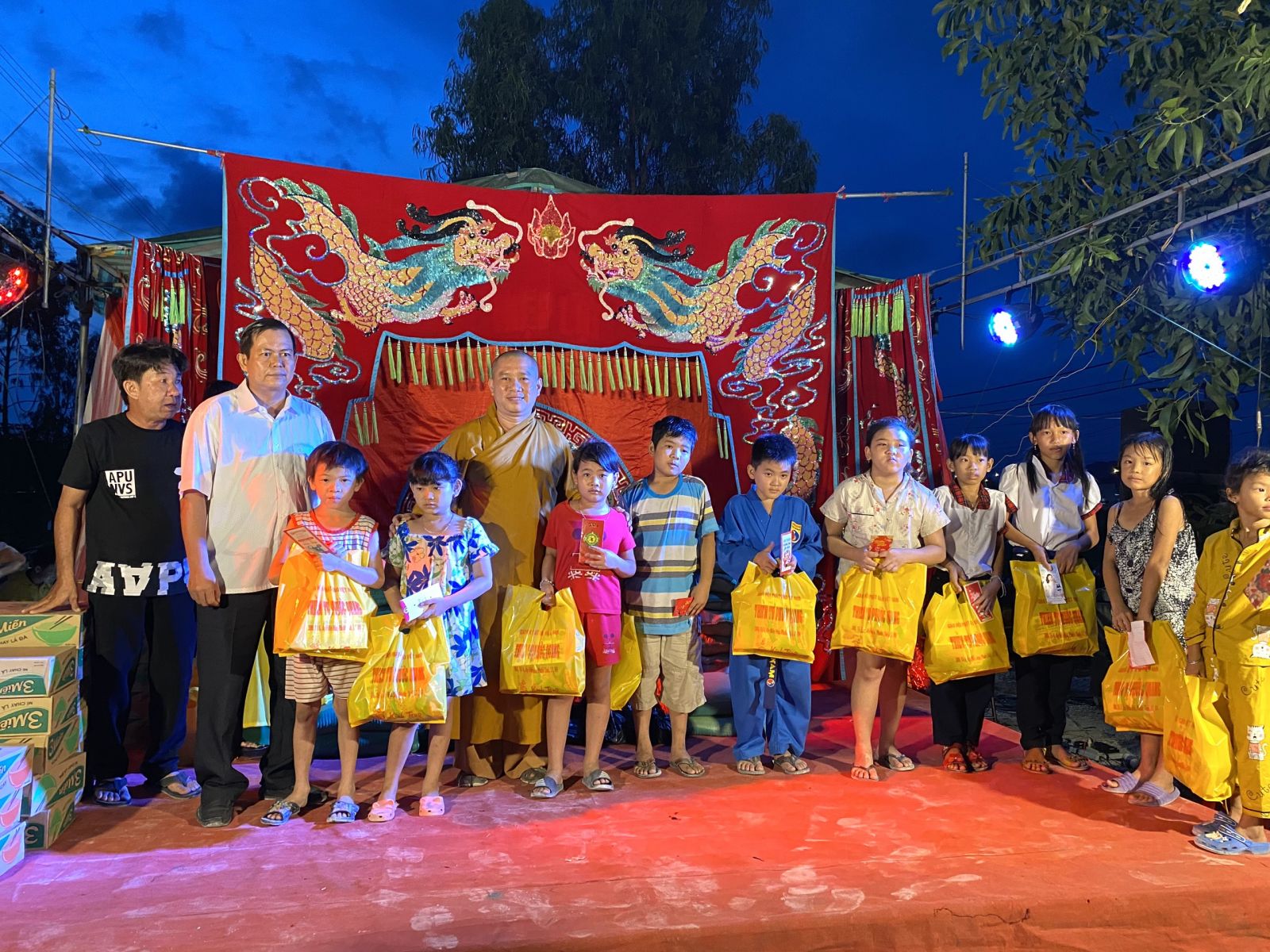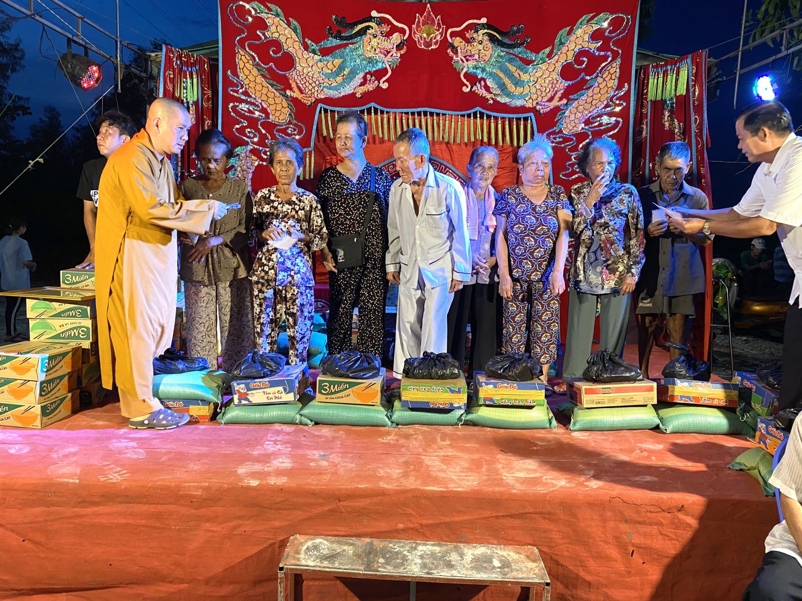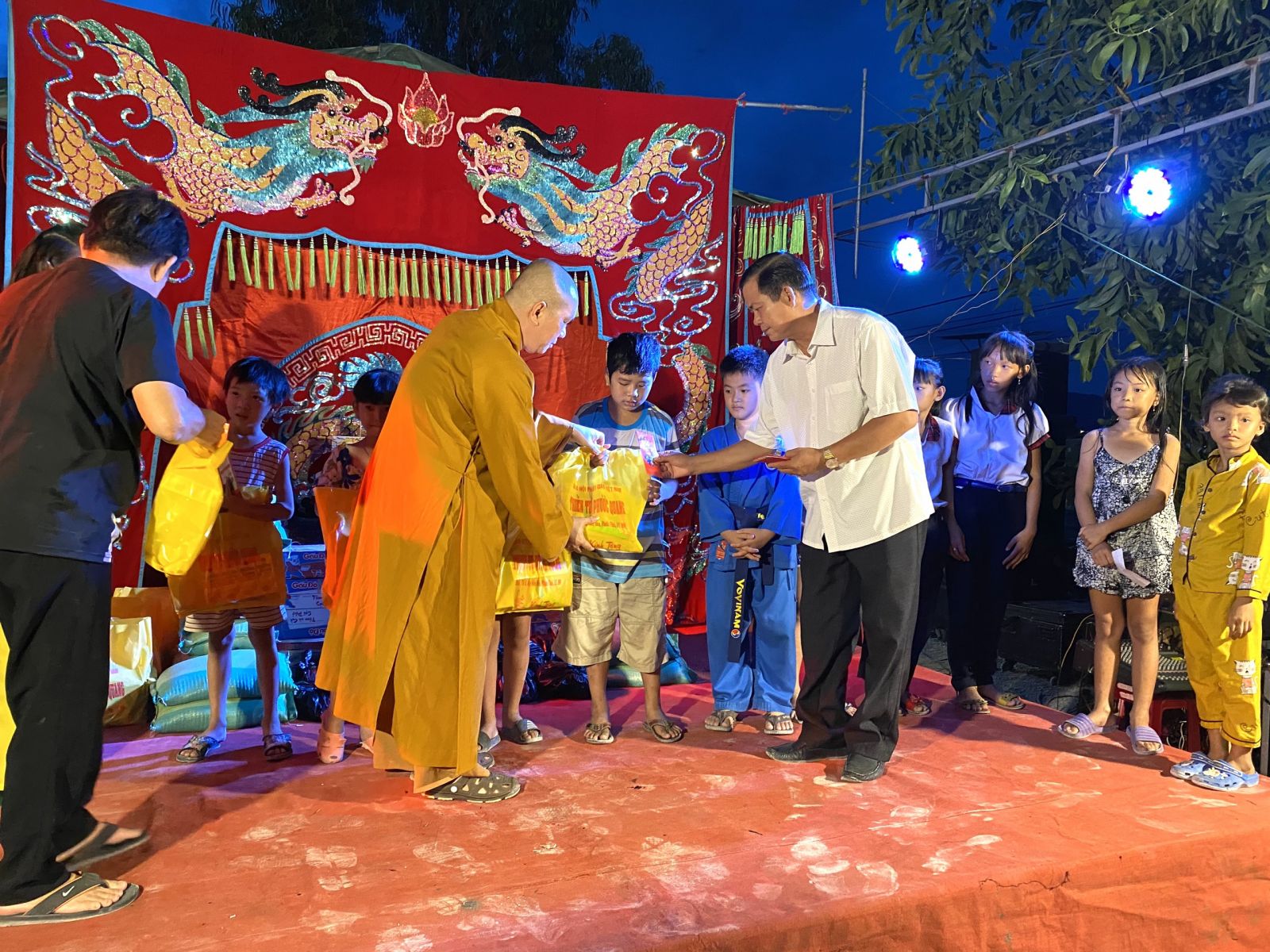 Xã Tân Hoà hiện còn khá nhiều hộ gia đình khó khăn, nay lại bị ảnh hưởng bởi dịch bệnh Covid-19 nên hoàn cảnh càng khó khăn hơn. Do đó, xuất phát từ tấm lòng người con Phật, Đại Đức Thích Nguyên Thông đã đại diện cho Phật tử và các Mạnh thường quân, trao tặng 100 phần quà gồm các nhu yếu phầm cần thiết cho bà con nghèo trị giá 50 triệu đồng. Ngoài ra, 30 phần quà cũng được trao tận tay các em học sinh có hoàn cảnh khó khăn, mỗi phần quà trị giá 300.000 đồng. Tổng giá trị các phần quà từ thiện là 59 triệu đồng.