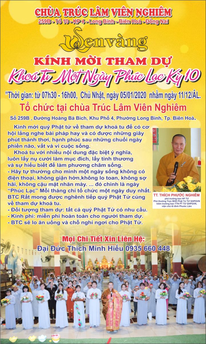 Mọi chi tiết xin liên hệ: Đại Đức Thích Minh Hiếu (0935 660 448).