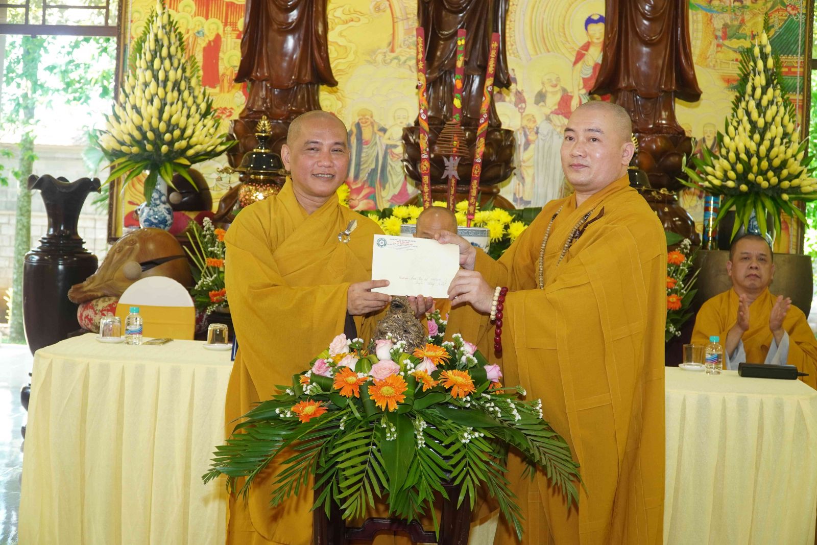 Dịp này, Hòa thường Thích Nhât Quang - Ủy viên Thường trực HĐCM GHPGVN, Chứng minh Ban Trị sự GHPGVN tỉnh, Cùng chư Tăng Ni Thiền viện Thường Chiếu đã gửi Tịnh tài và tịnh vật cúng dường hạ trường.