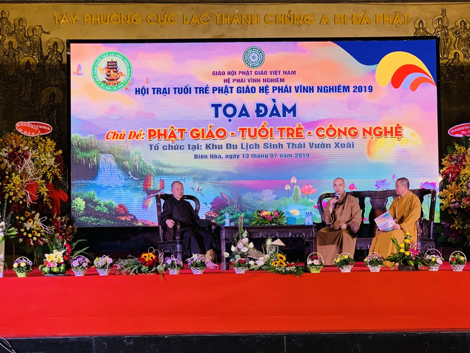 Cuối buổi là cuộc gặp gỡ Tọa Đàm với chủ đề Tuổi trẻ - Đạo Pháp - Công nghệ với sự chứng minh và chia sẻ kinh nghiệm của Thượng Tọa Thích Minh Nhẫn, Thượng Tọa Thích Hạnh An, Đại Đức Thích Thiện Mỹ và trả lời các câu hỏi thắc mắc của Trại sinh quanh chủ đề trên.
