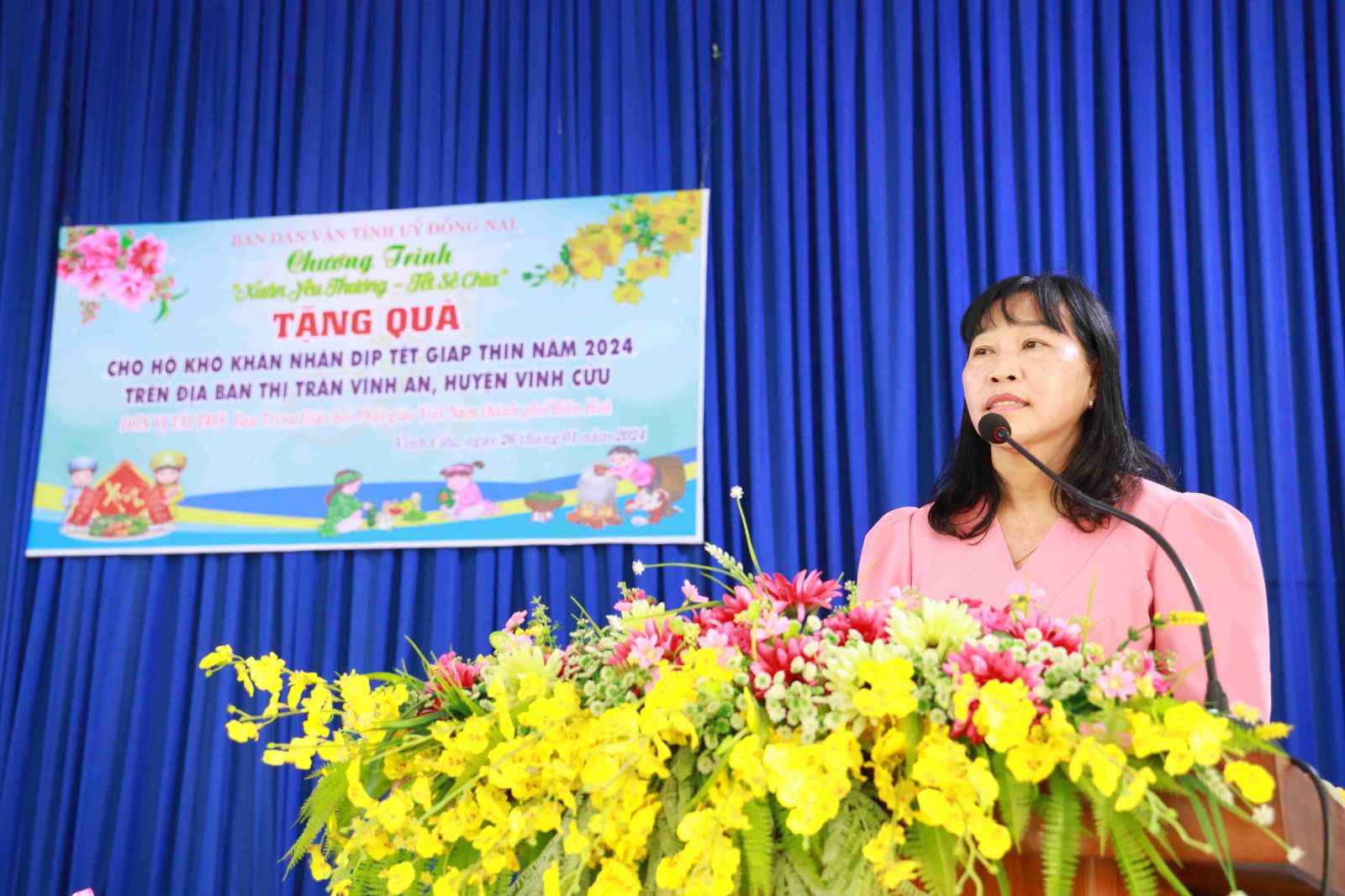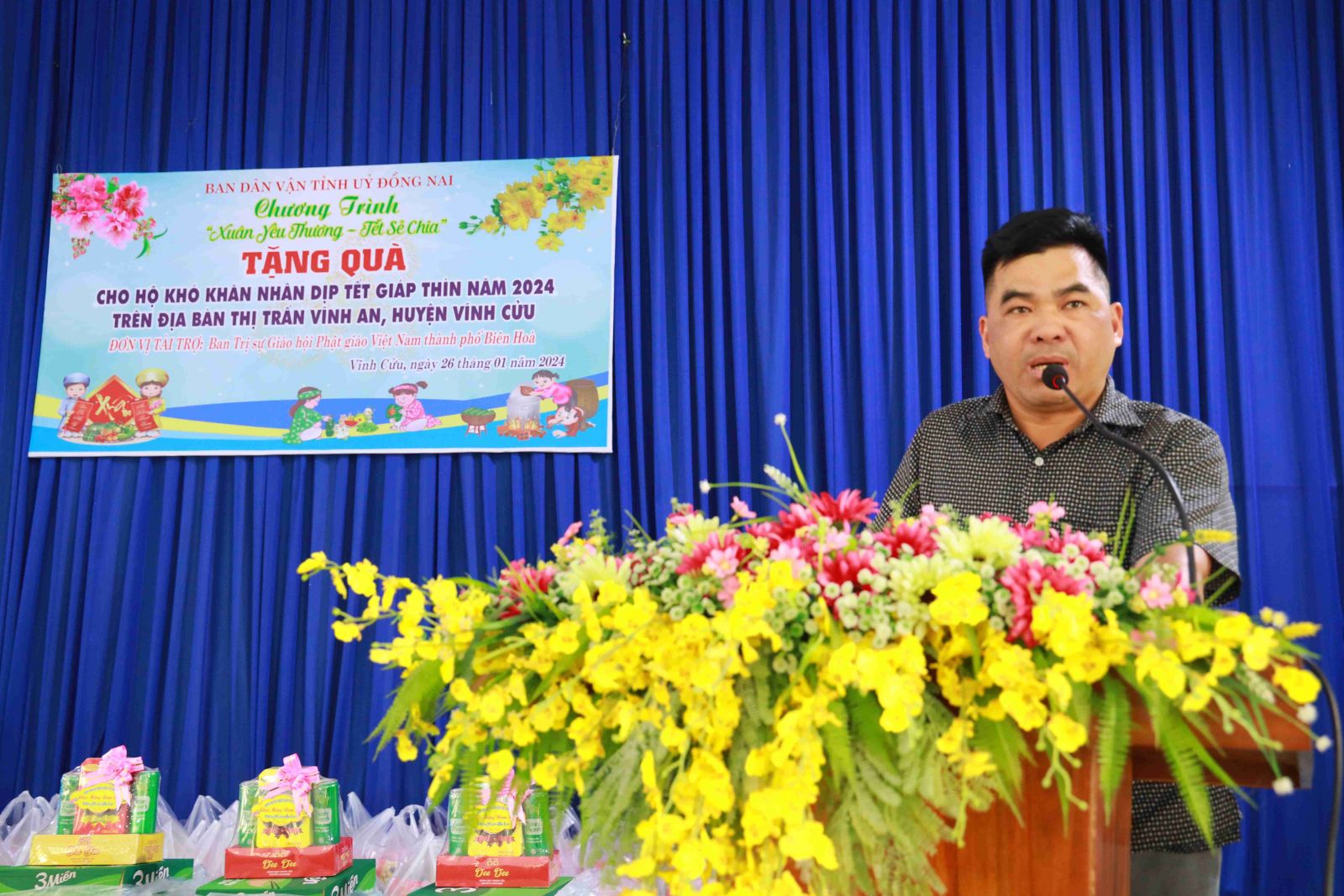 “Chương trình “Xuân gắn kết, Tết yêu thương” do Thường trực ban Trị sự GHPGVN Thành phố Biên Hòa, Ban Từ thiện Phật giáo Thành phố Biên Hòa, thực hiện với mong muốn gắn kết được nhiều nhà hảo tâm, mạnh thường quân chia sẻ khó khăn với cộng đồng hơn, nhiều hộ gia đình khó khăn, các trẻ em nghèo được đón tết ấm áp yêu thương. Với tinh thần đó, tất cả các hoạt động diễn ra trong chuỗi chương trình thiết thực có ý nghĩa nhân văn thể hiện tinh thần tương thân tương ái, lá lành đùm lá rách, một trong những truyền thống quý báu tốt đẹp của dân tộc, biết sẻ chia yêu thương tới các hộ gia đình nghèo, trẻ em có hoàn cảnh khó khăn” bà Nguyễn Thị Vẹn – Phó Trưởng ban Dân vận Tỉnh ủy tỉnh Đồng Nai chia sẻ.