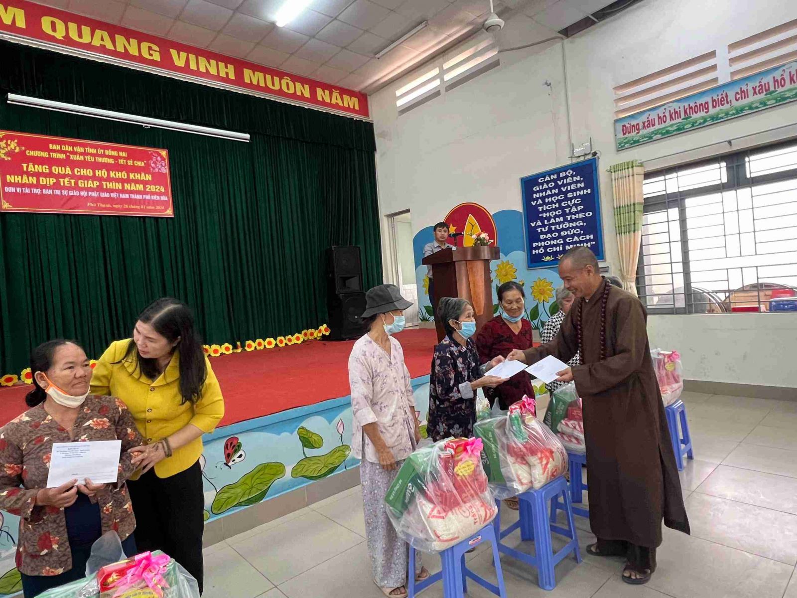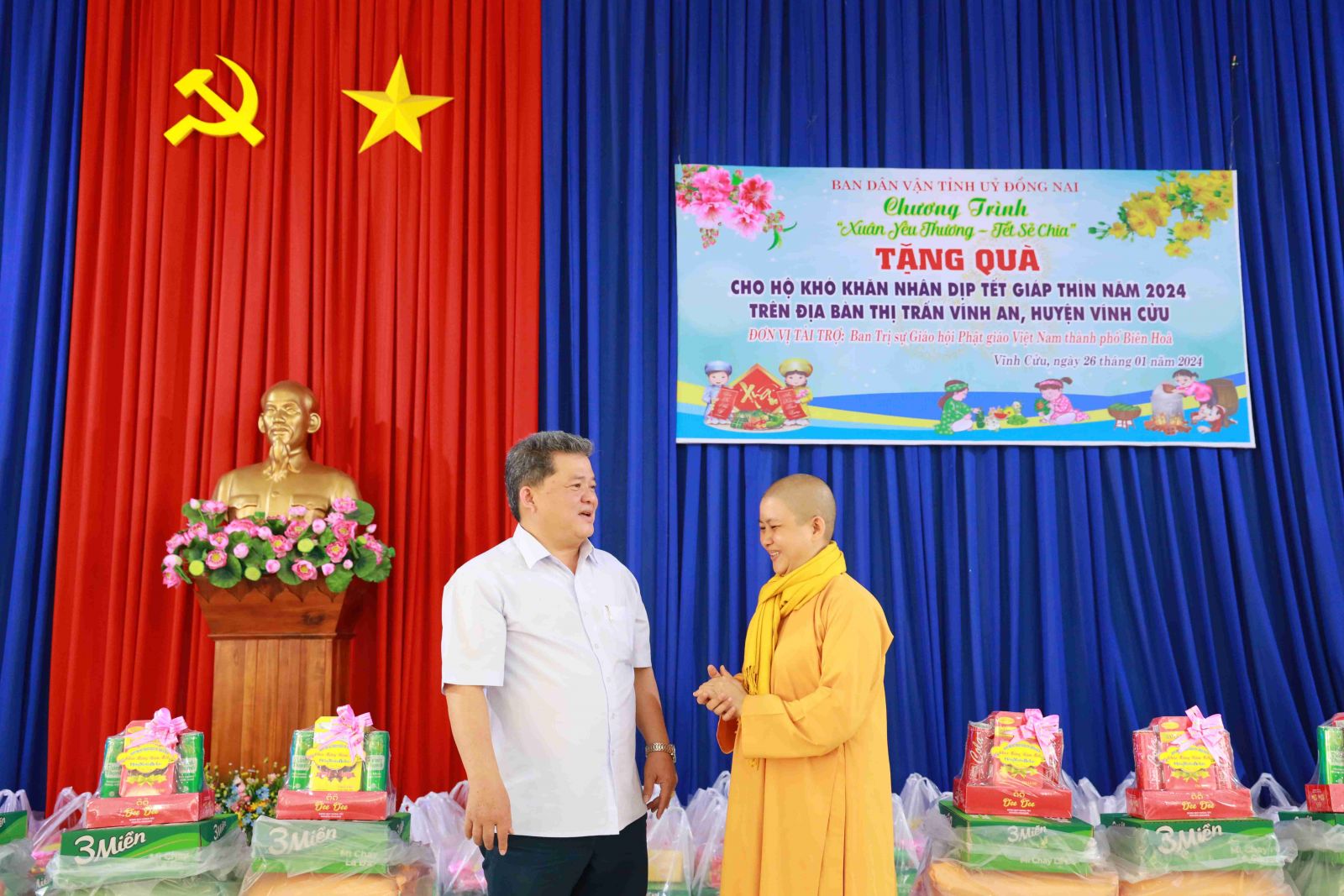 Chuỗi hoạt động “Xuân gắn kết, Tết yêu thương” do Thường trực ban Trị sự GHPGVN Thành phố Biên Hòa, Ban Từ thiện Phật giáo thành phố Biên Hòa, đã trao điểm 1: trường tiểu học xã Phú Thạnh - 100 suất quà, điểm 2: trung tâm văn hóa xã Vĩnh Thanh trao 100 xuất quà thuộc huyện Nhơn Trạch; tại UBND thị trấn Vĩnh An, huyện Vĩnh Cửu 100 xuất quà; tại UBND phường Tân Phong, thành phố Biên Hòa đoàn trao 100 xuất quà; mỗi phần quà bao gồm: 10 kg gạo, 01 thùng mì, bao thư 100 ngàn và nhiều phần quà ý nghĩa cả vật chất và tinh thần khác đã được trao trọn vẹn yêu thương trong buổi lễ. Vì yêu thương cho đi là yêu thương sẽ còn mãi mãi.