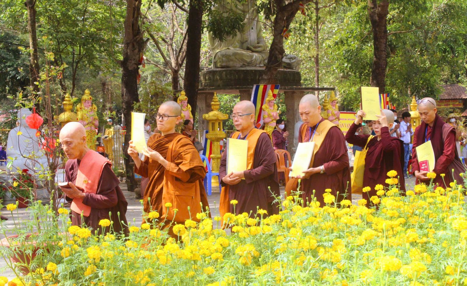 09h30: Lễ rước Pháp tại quảng trường Bồ Đề. Tại chánh điện, sau thời khóa lễ bái tam bảo, HT viện chủ thuyết giảng vắn tắt về Phước Đức tu hành.
