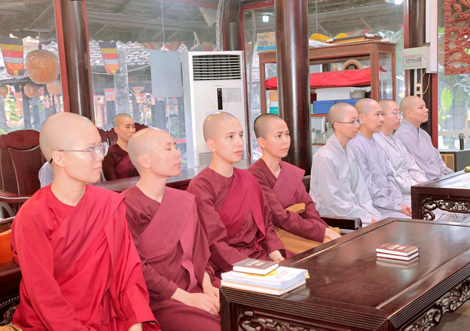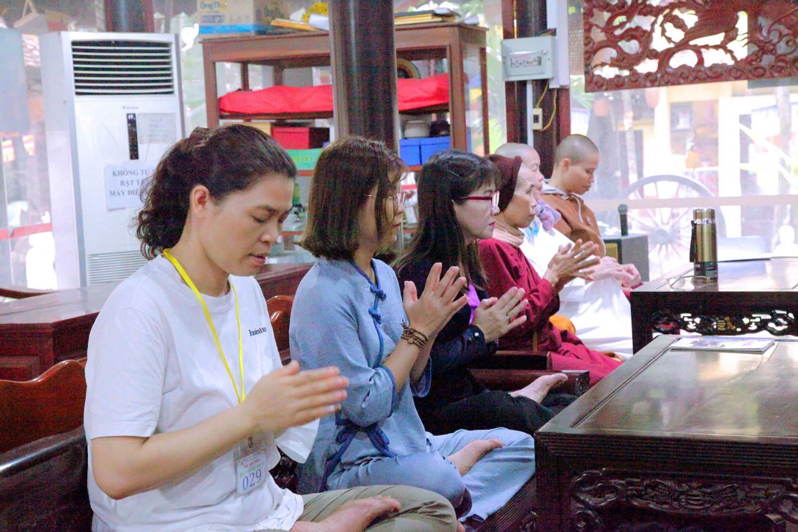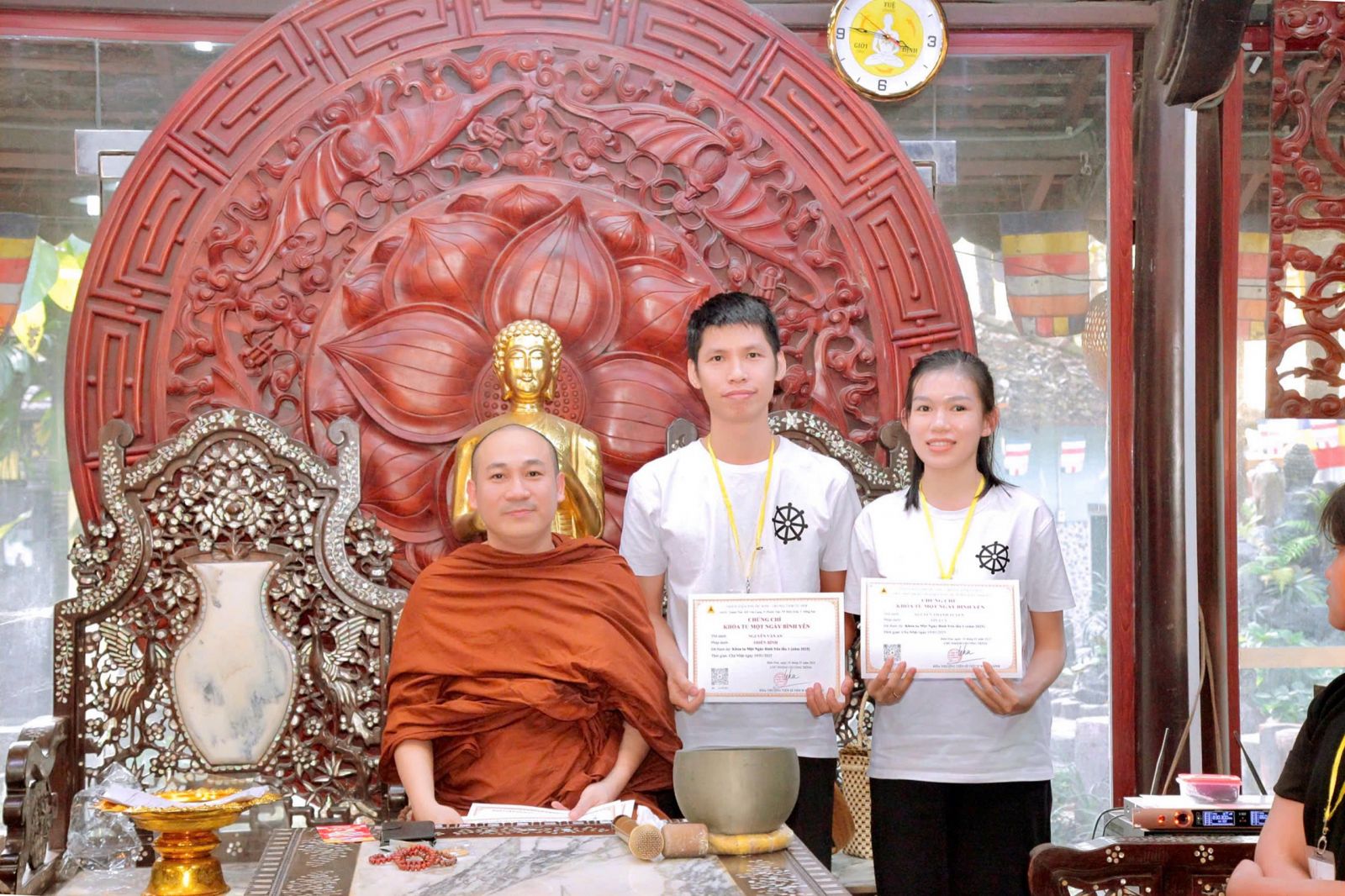 Tại khóa tu Một Ngày Bình Yên, theo sự điều phối của Hòa thượng trụ trì, đại đức Thích Phước Trí hướng dẫn khóa sinh tụng kinh Pháp cú phẩm: Già, Thế gian và Phật Đà, và chia sẻ đề tài: Tri Ân và Báo Ân Cha Mẹ.