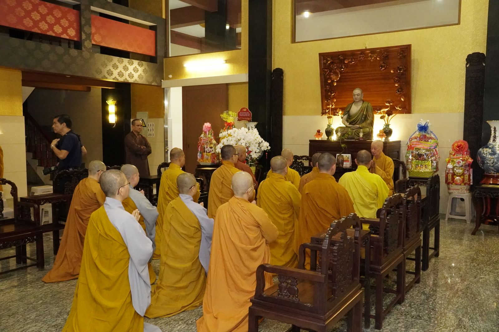 Trang nghiêm tại Chùa Huê Nghiêm – Tp. Thủ Đức, Ban Trị sự GHPGVN tỉnh Đồng Nai đã thành tâm đảnh lễ tôn dung Đức trưởng lão Hòa thượng thượng Trí hạ Quảng – Pháp chủ GHPGVN.