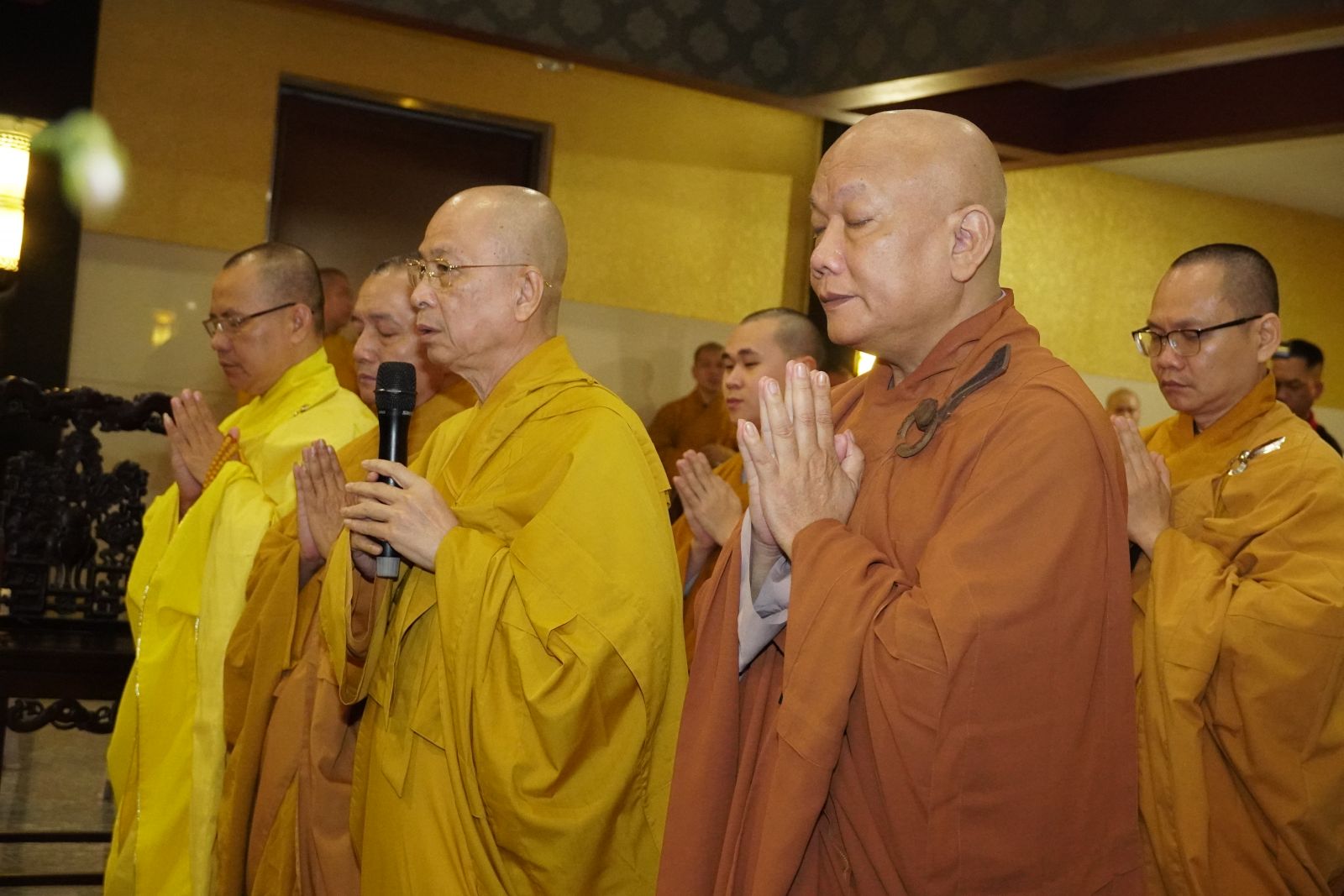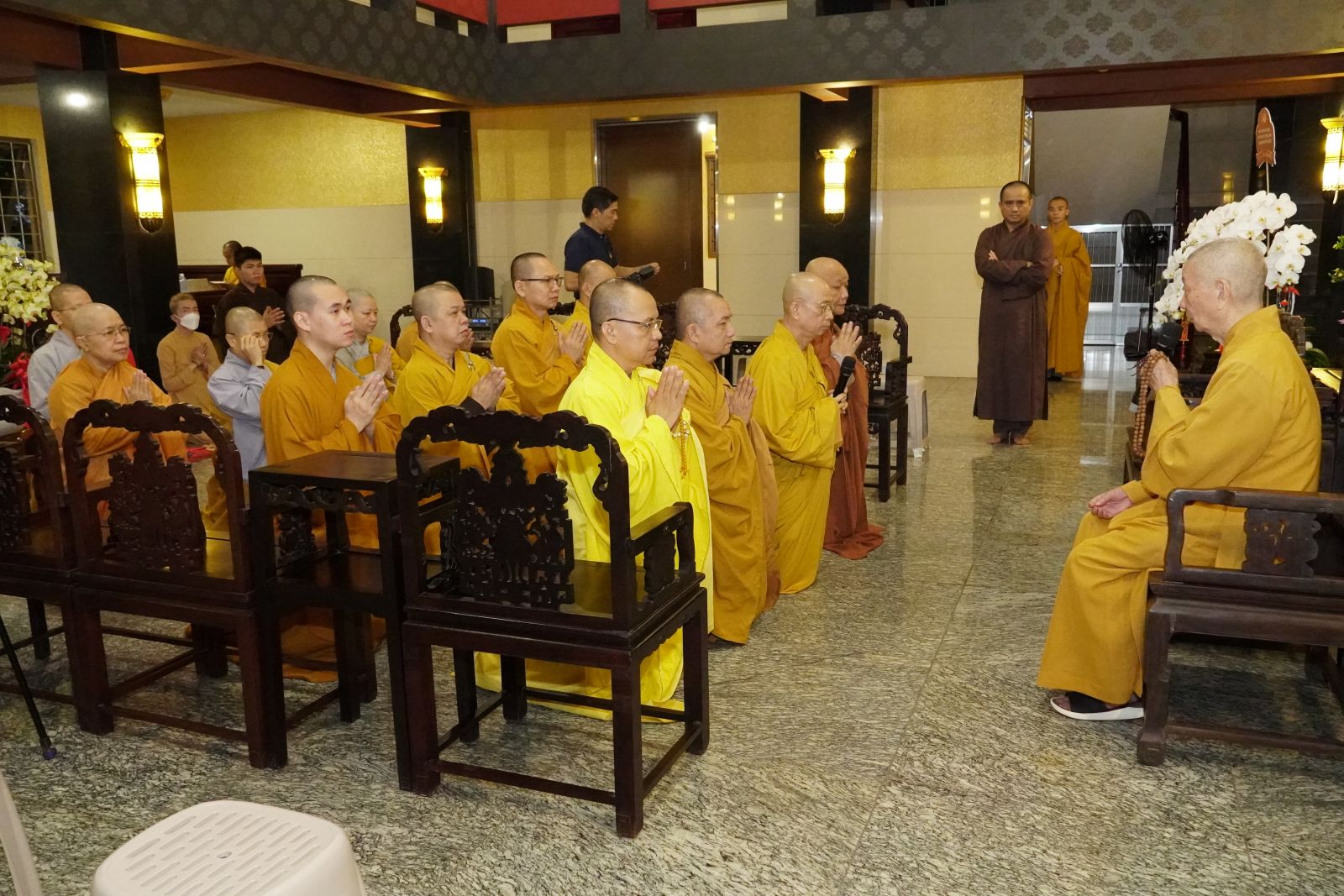 Tiếp phái đoàn BTS tỉnh Đồng Nai, về phía Trung ương GHPGVN có HT. Thích Thiện Pháp – Phó Chủ tịch TT HĐTS, Trưởng ban Kiểm soát TƯ; TT. Thích Phước Nguyên – Phó Tổng Thư ký kiêm Chánh Văn phòng 2 TƯGH; TT. Thích Phước Nghiêm – UVTT HĐTS – Phó Chánh Văn phòng 2; TT. Thích Quảng Tiến – UV HĐTS, Phó Chánh Văn phòng 2; TT. Thích Phước Triều – UV HĐTS; cùng chư Tôn đức giáo phẩm Văn phòng 2.