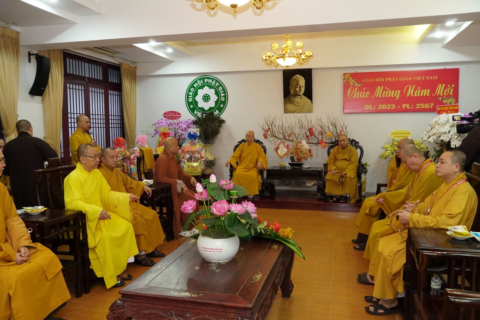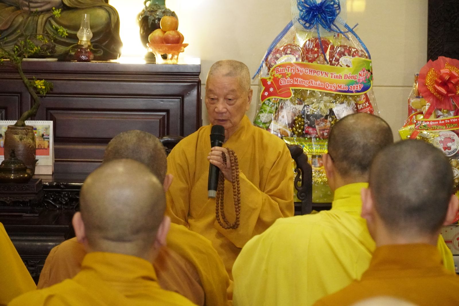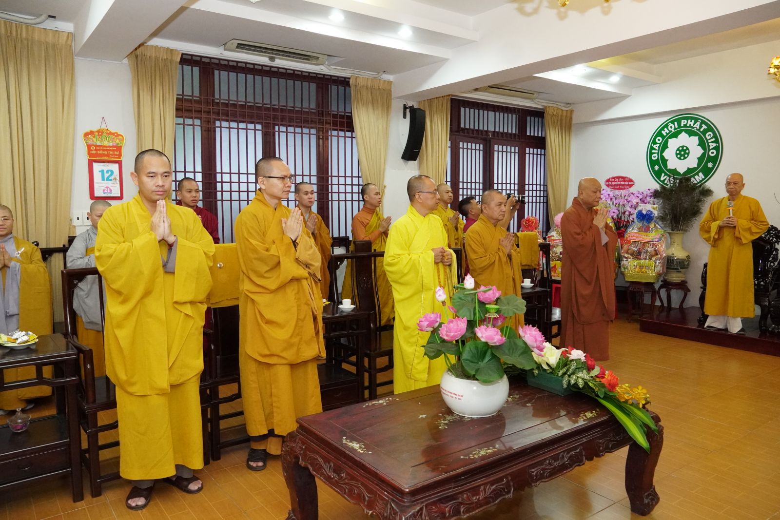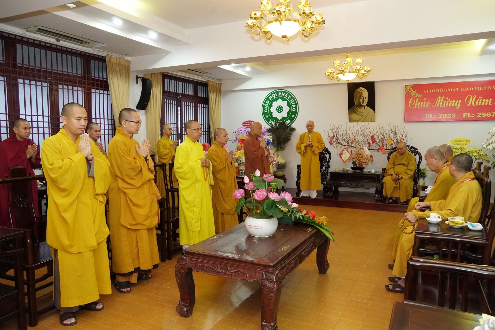 Thay mặt Hội đồng Trị sự, TT. Thích Phước Nguyên được sự uỷ nhiệm của Hoà thượng Phó Chủ tịch Thường trực HĐTS chúc Tết đến phái đoàn Ban Trị sự PS tỉnh Đồng Nai.