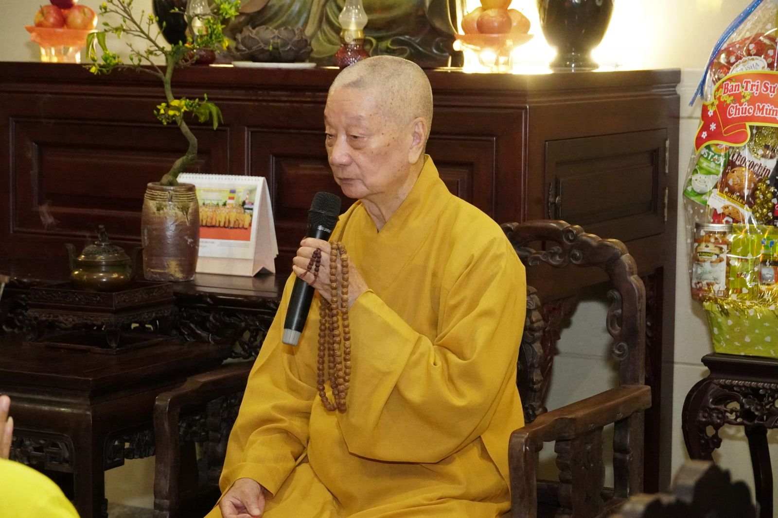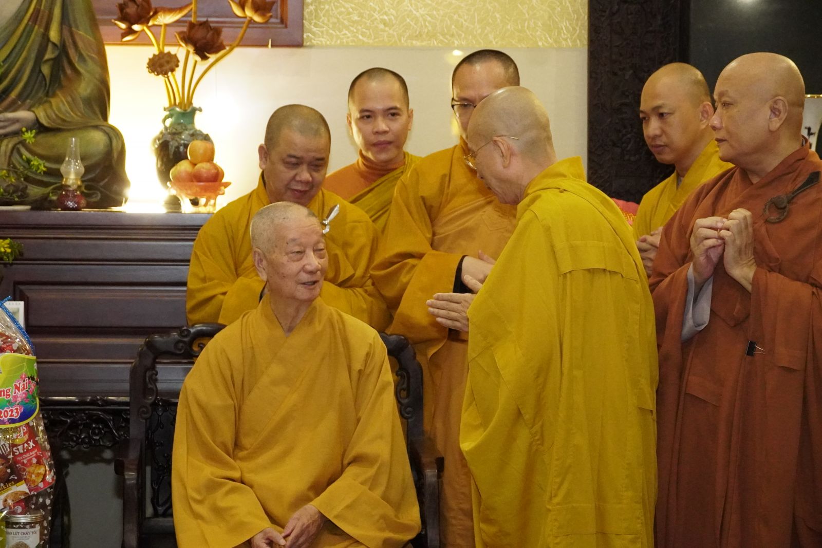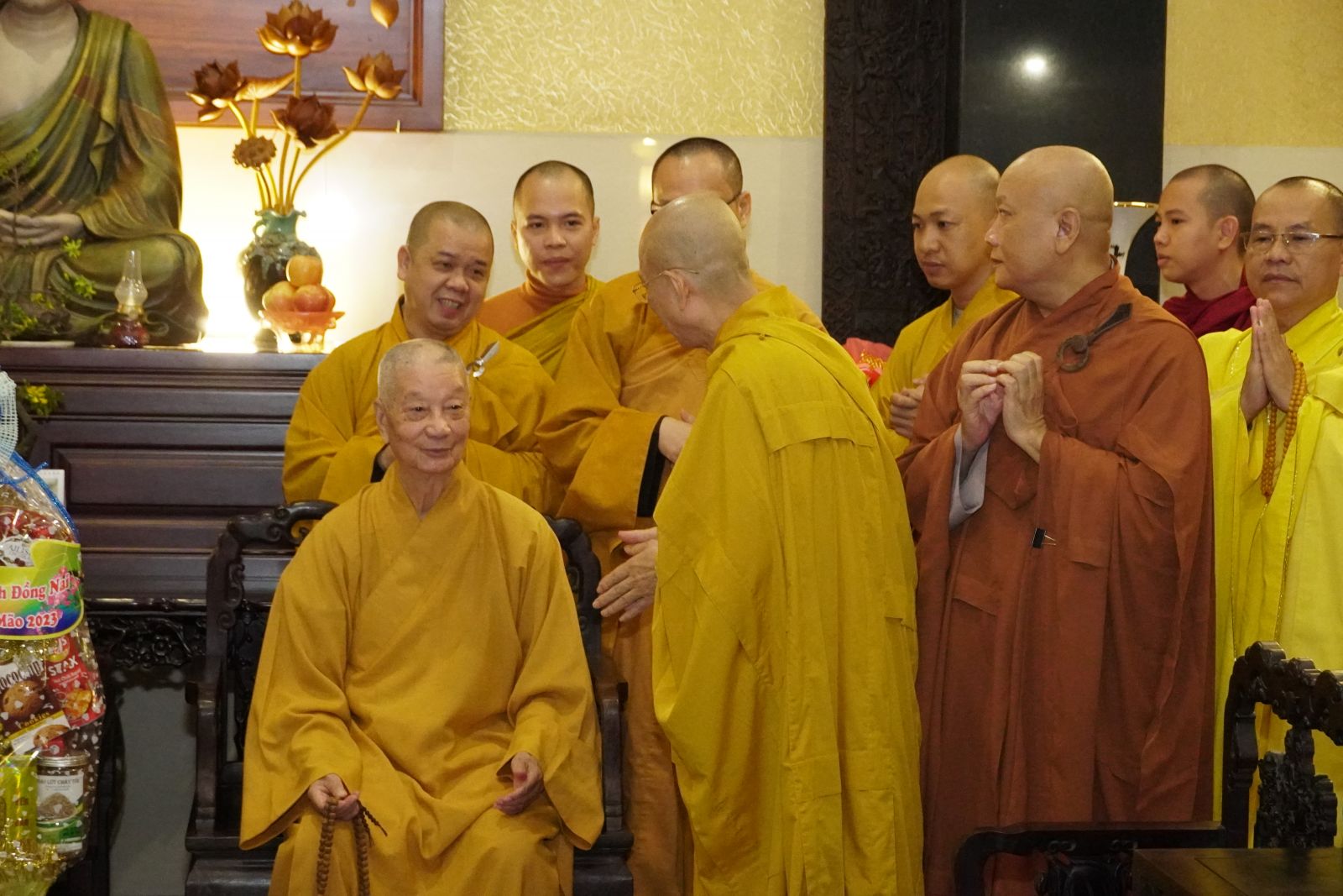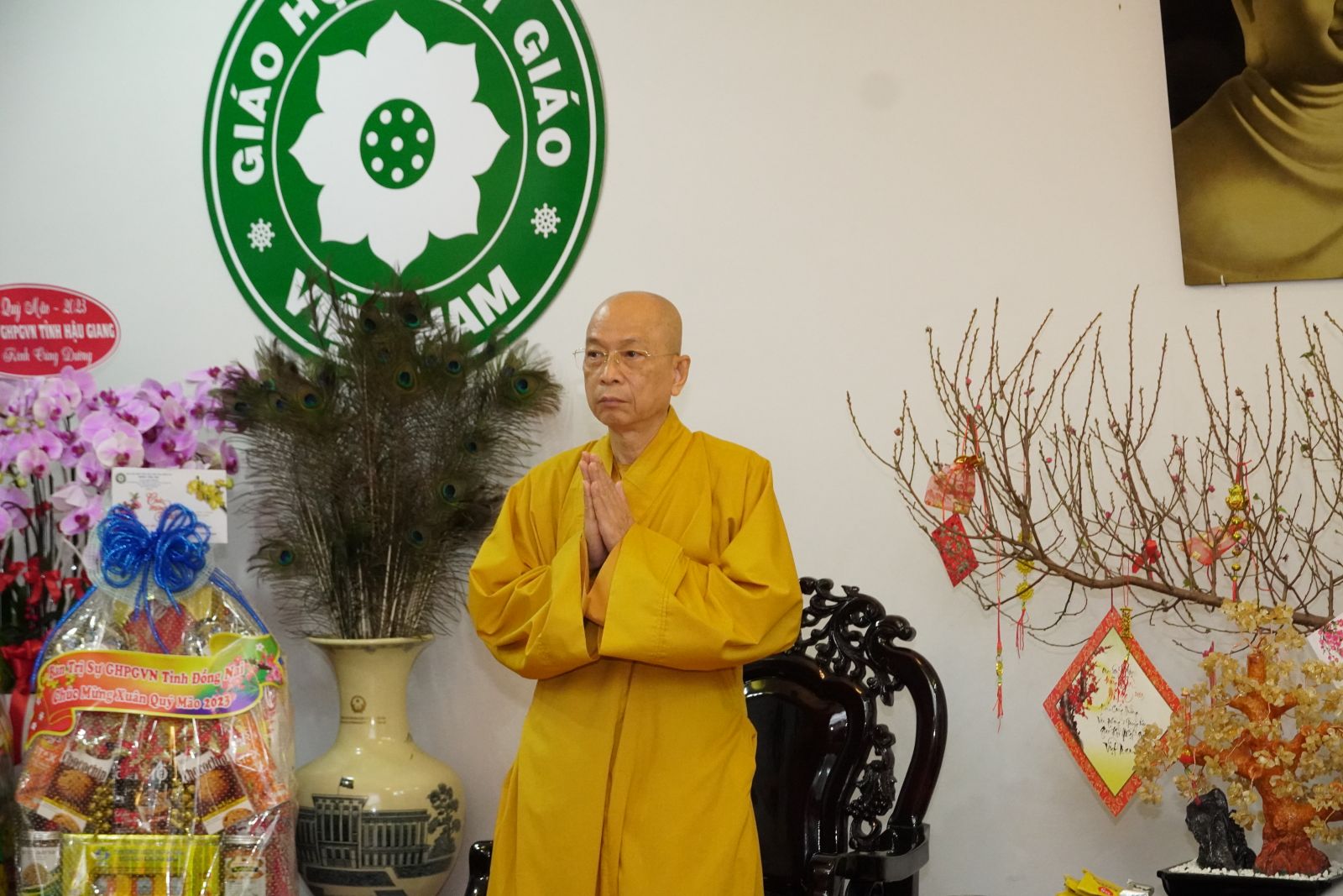 Thay mặt Hội đồng Trị sự, TT. Thích Phước Nguyên được sự uỷ nhiệm của Hoà thượng Phó Chủ tịch Thường trực HĐTS chúc Tết đến phái đoàn Ban Trị sự PS tỉnh Đồng Nai.
