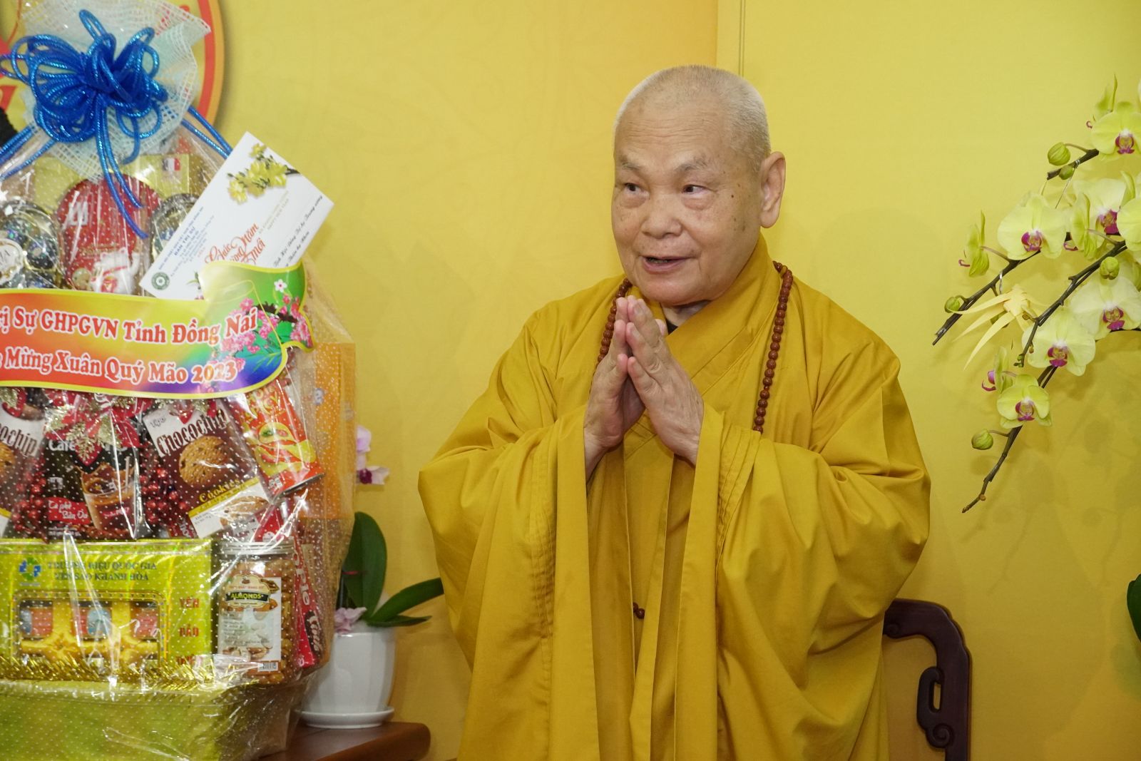 Đáp lời, HT. Thích Thiện Nhơn – Chủ tịch HĐTS đã tán dương sự thành công của Ban Ban Trị sự tỉnh qua một số Phật sự trong năm qua, đặc biệt là tổ chức thành công Đại giới đàn Thiện Hoa, Đại hội Đại biểu Phật giáo tỉnh Khóa IX nhiệm kỳ 2022 – 2027, và tổ chức đoàn tham dự Đại hội Phật giáo toàn quốc tại Hà Nội. với những Phật sự thành công của tỉnh Đồng Nai nói riêng và của các tỉnh thành nói chung, định hướng cho Phật sự sắp tới Hòa thượng đã cho biết: sau chương trình tết nguyên đán, HĐTS sẽ triển khai một số Nghị quyết, Nghị định của HĐTS về các Phật sự trong năm tới đến các tỉnh, thành trong khắp cả nước. Cuối lời, Hòa thượng đã cầu chúc Ban Trị sự tỉnh Đồng Nai đón một mùa xuân Quý Mão luôn luôn an lạc và cát tường.