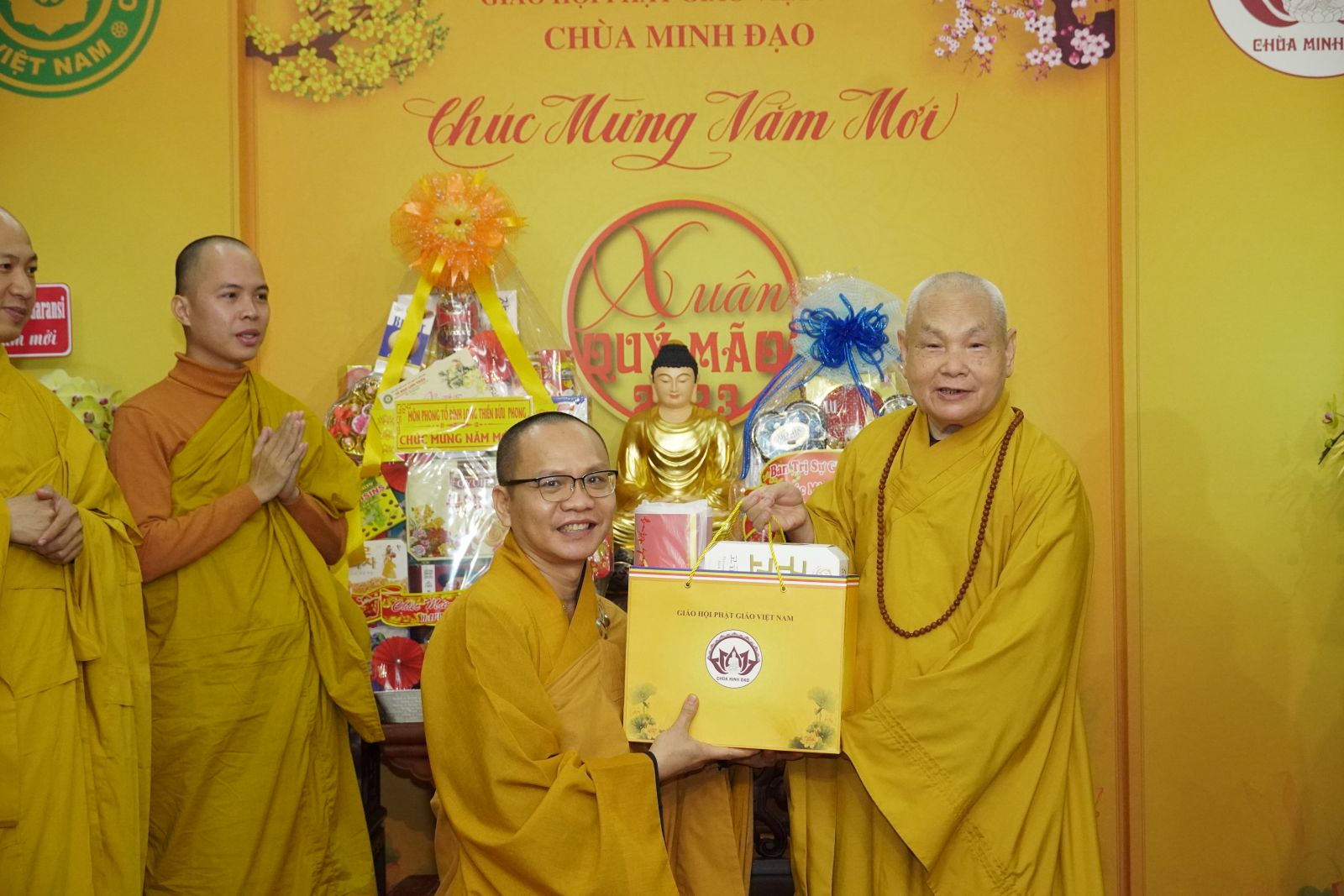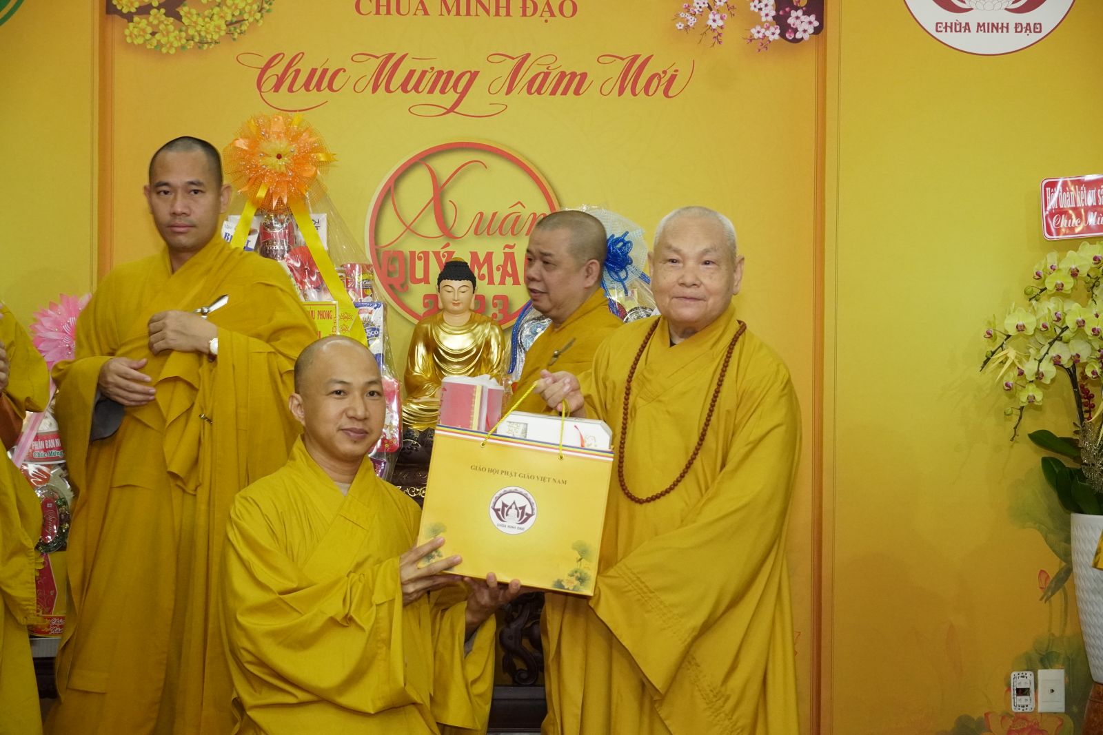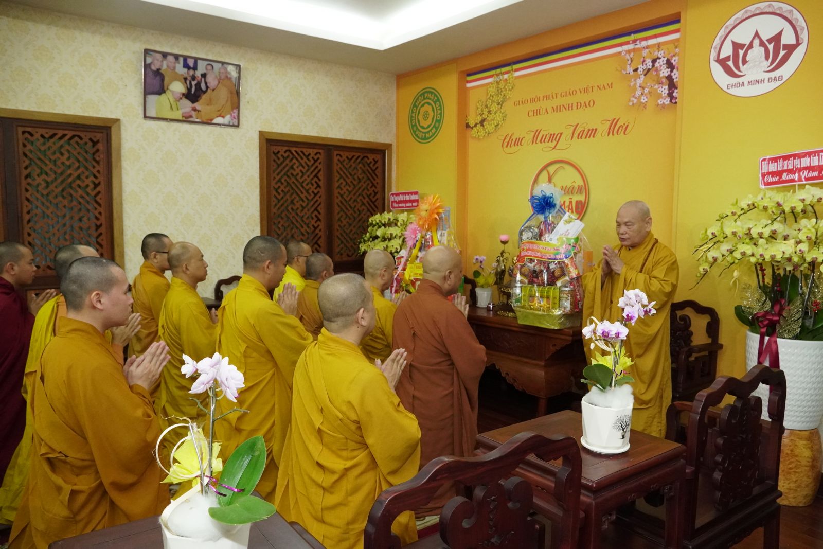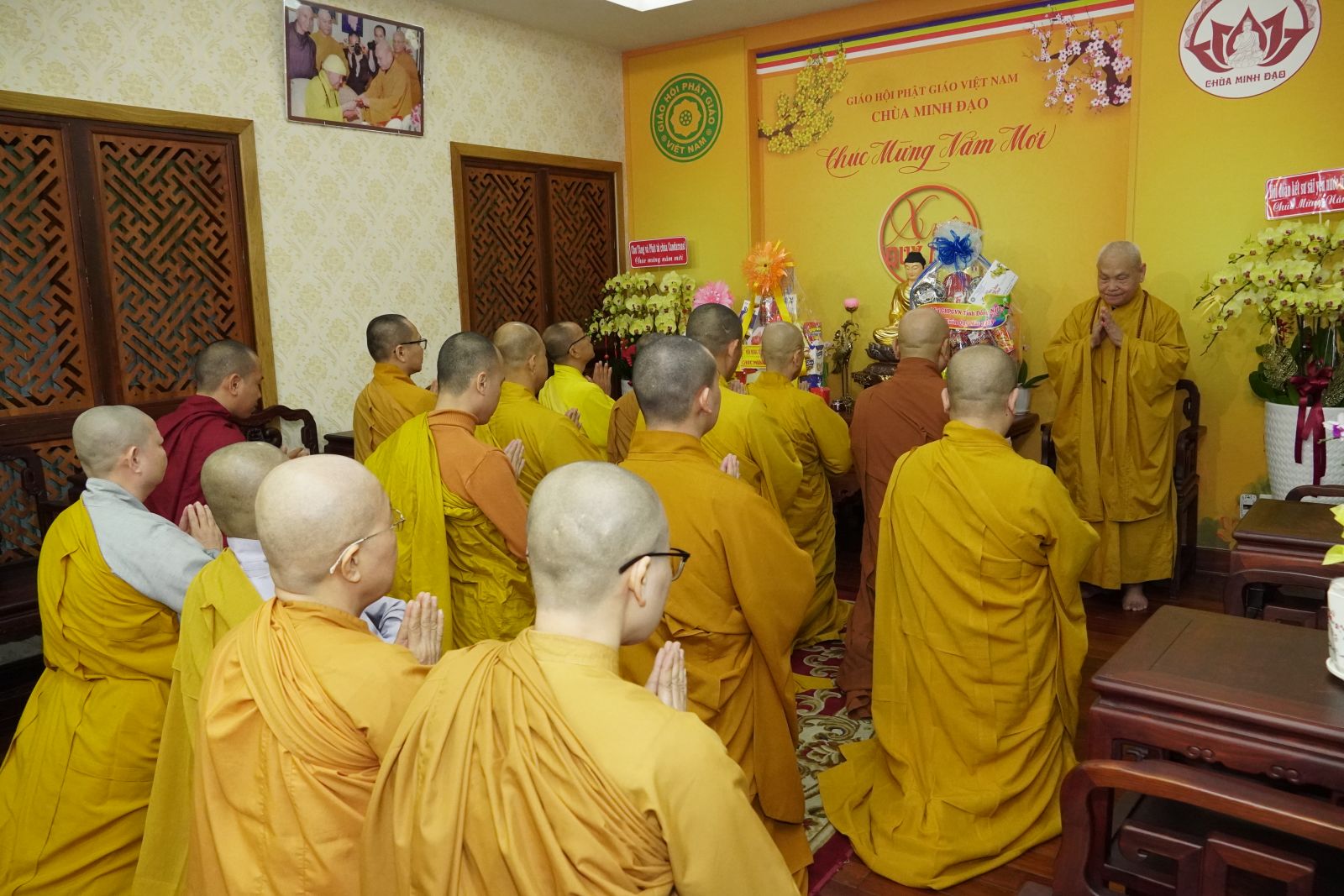 Sau khi đảnh lễ và khánh tuế đức Hòa thượng Pháp chủ GHPGVN, đoàn đã đến Chùa Minh Đạo – Q.3, Tp. Hồ Chí Minh để Khánh tuế Hòa thượng Thích Thiện Nhơn - Chủ tịch Hội Đồng Trịsự, Trưởng ban Tăng sự Trung Ương GHPGVN.