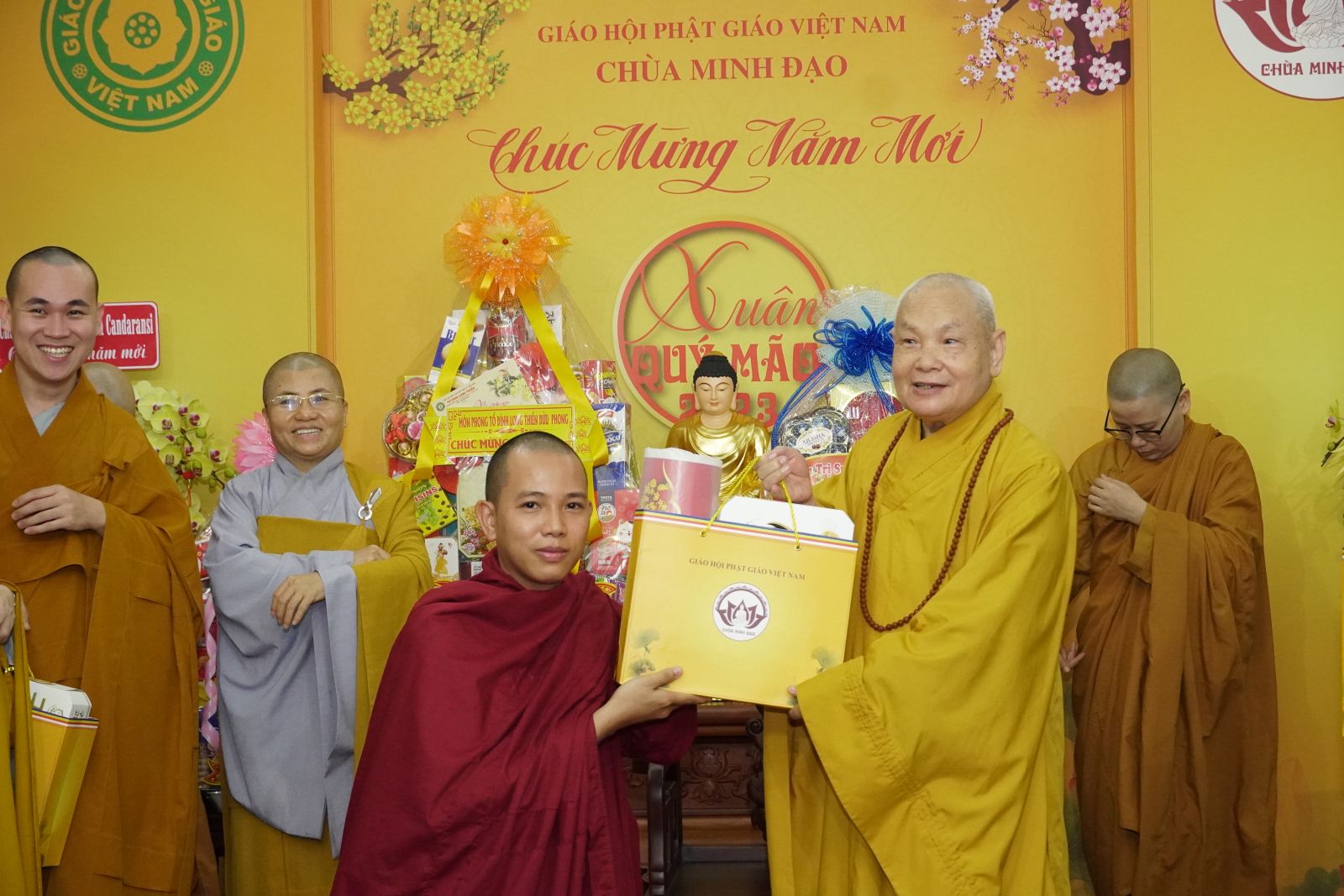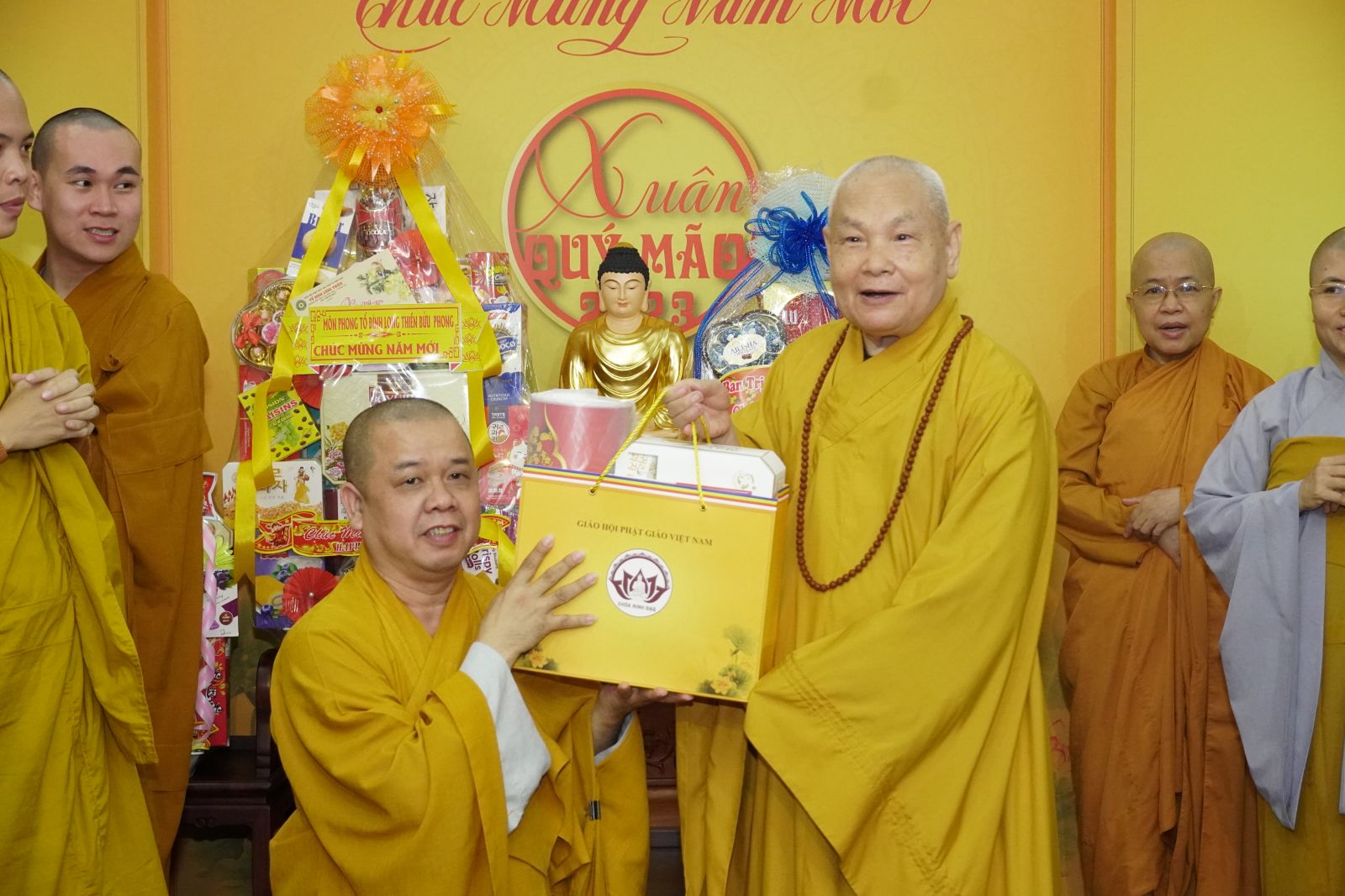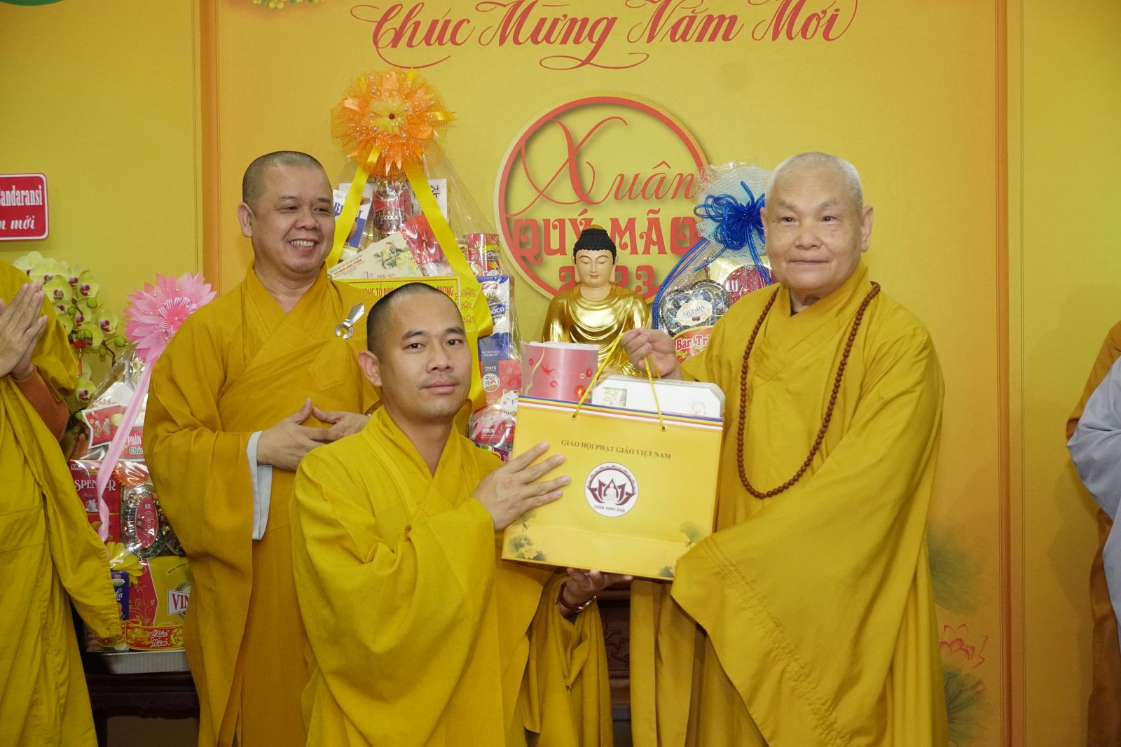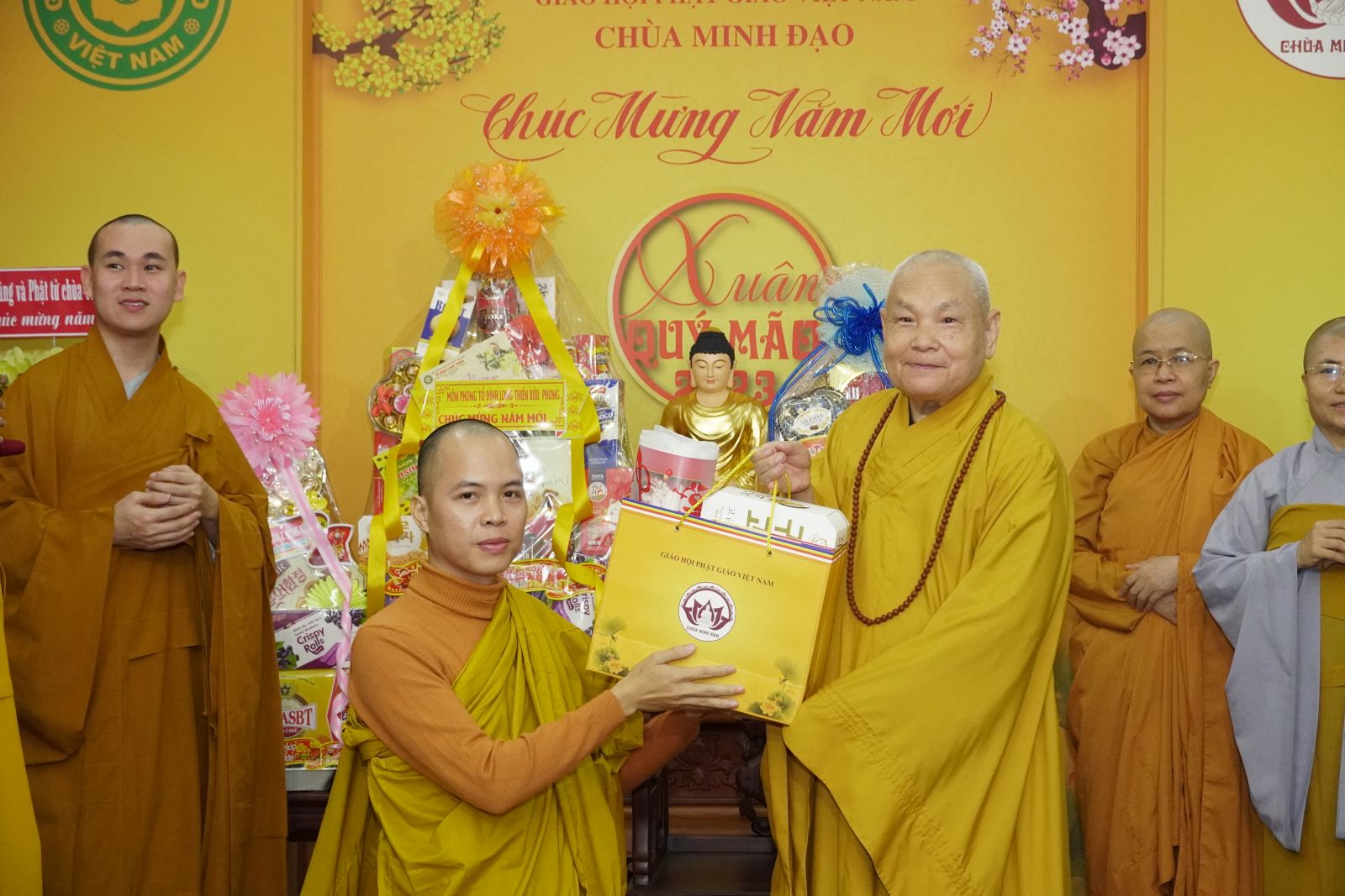 Trong dịp này, HT. Thích Thiện Pháp và TT. Thích Phước Nguyên tặng quà Xuân tới tất cả các thành viên trong đoàn.