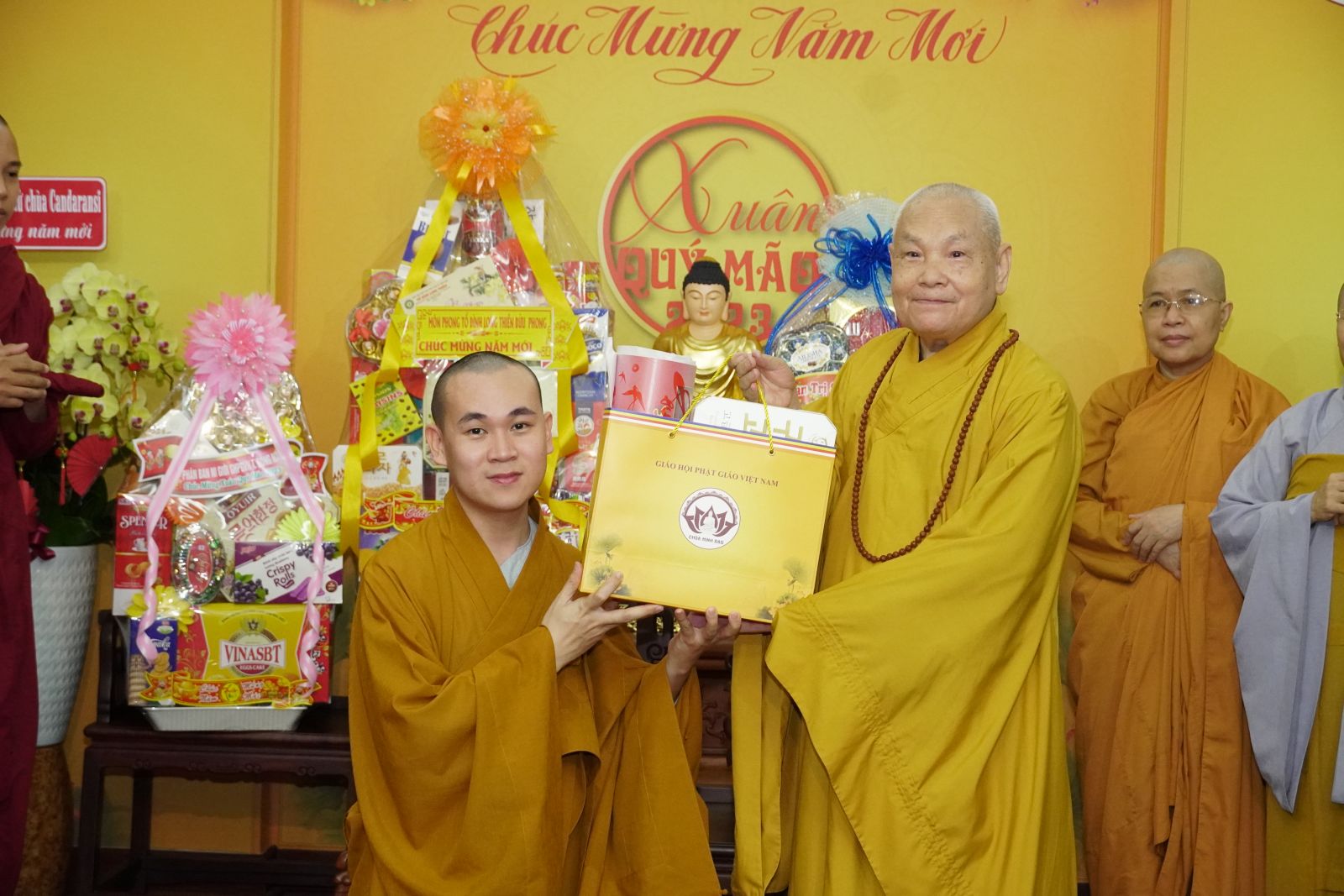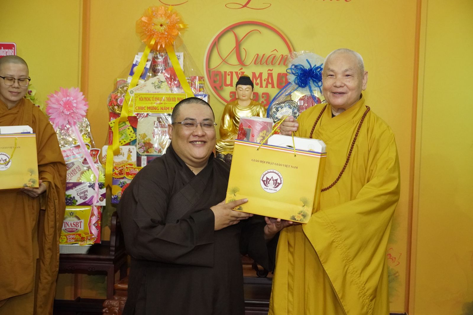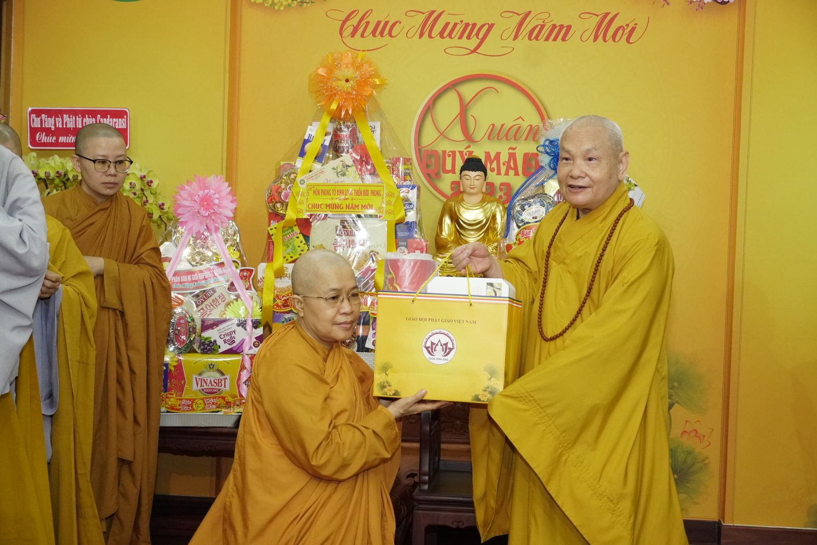 Trong dịp này, HT. Thích Thiện Pháp và TT. Thích Phước Nguyên tặng quà Xuân tới tất cả các thành viên trong đoàn.