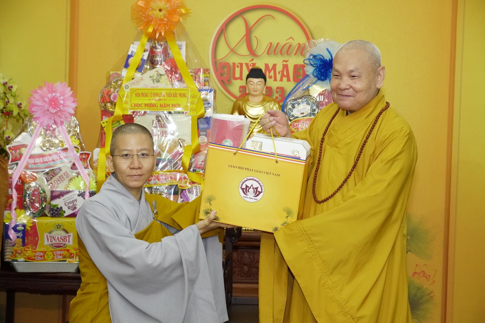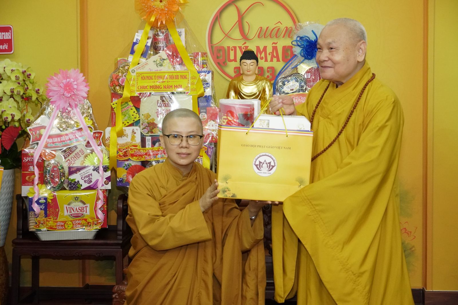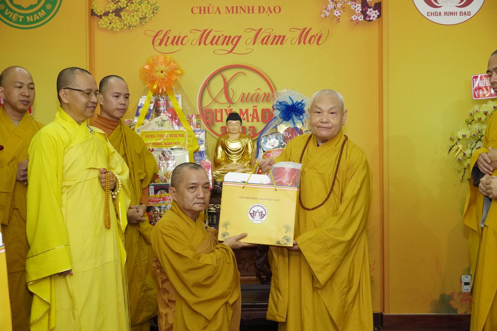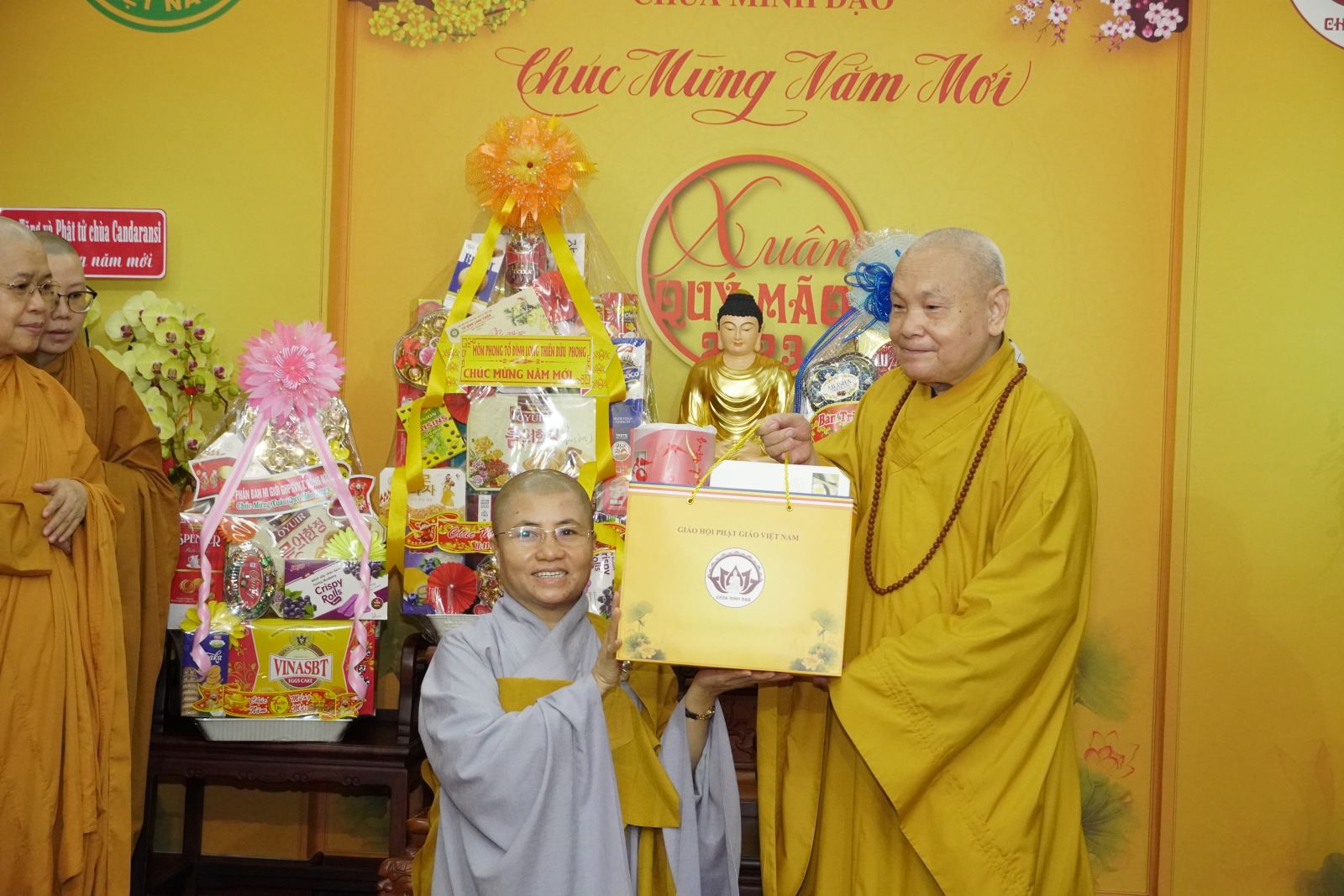 Trong dịp này, HT. Thích Thiện Pháp và TT. Thích Phước Nguyên tặng quà Xuân tới tất cả các thành viên trong đoàn.