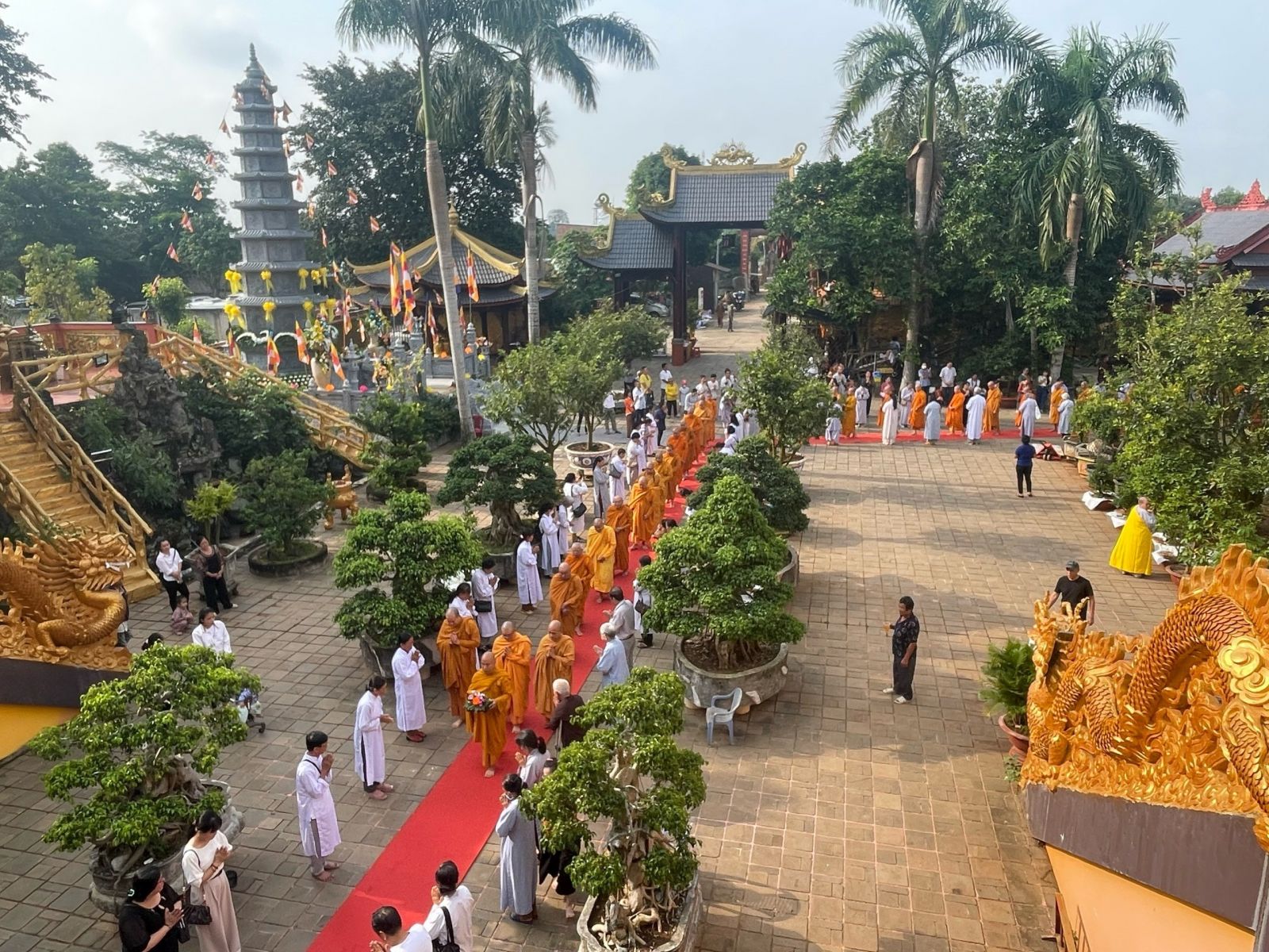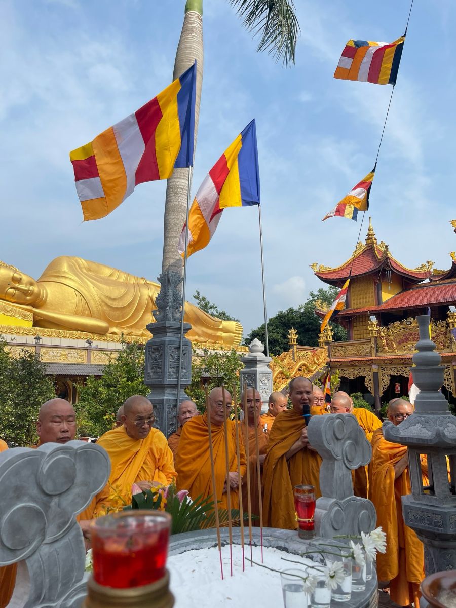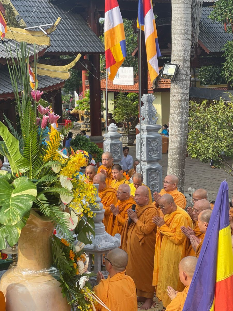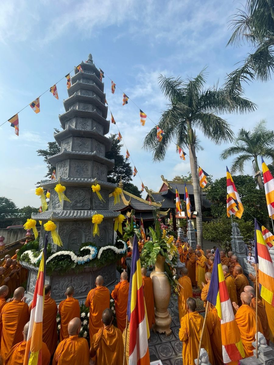 Buổi lễ trang nghiêm cung thỉnh chư Tôn giáo phẩm quang lâm sái tịnh Bảo tháp, đồng cầu nguyện và cung thỉnh tro cốt xá lợi của Trưởng lão HT. Thích Giác Hà nhập bảo tháp.