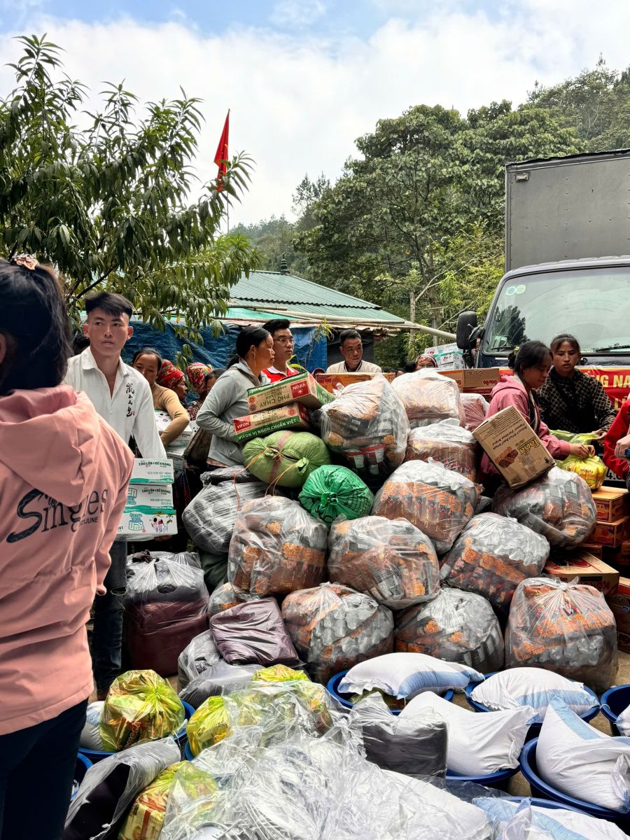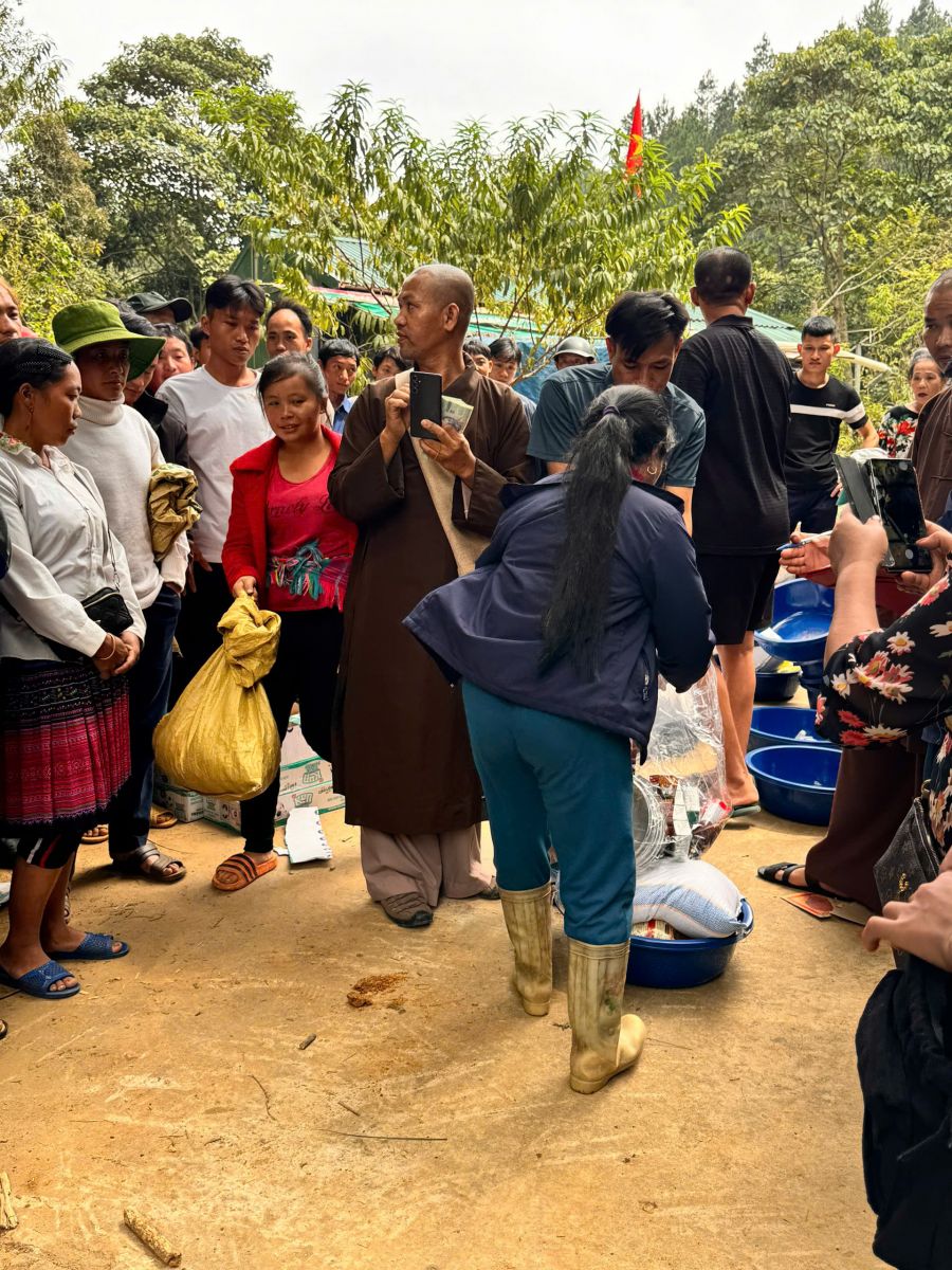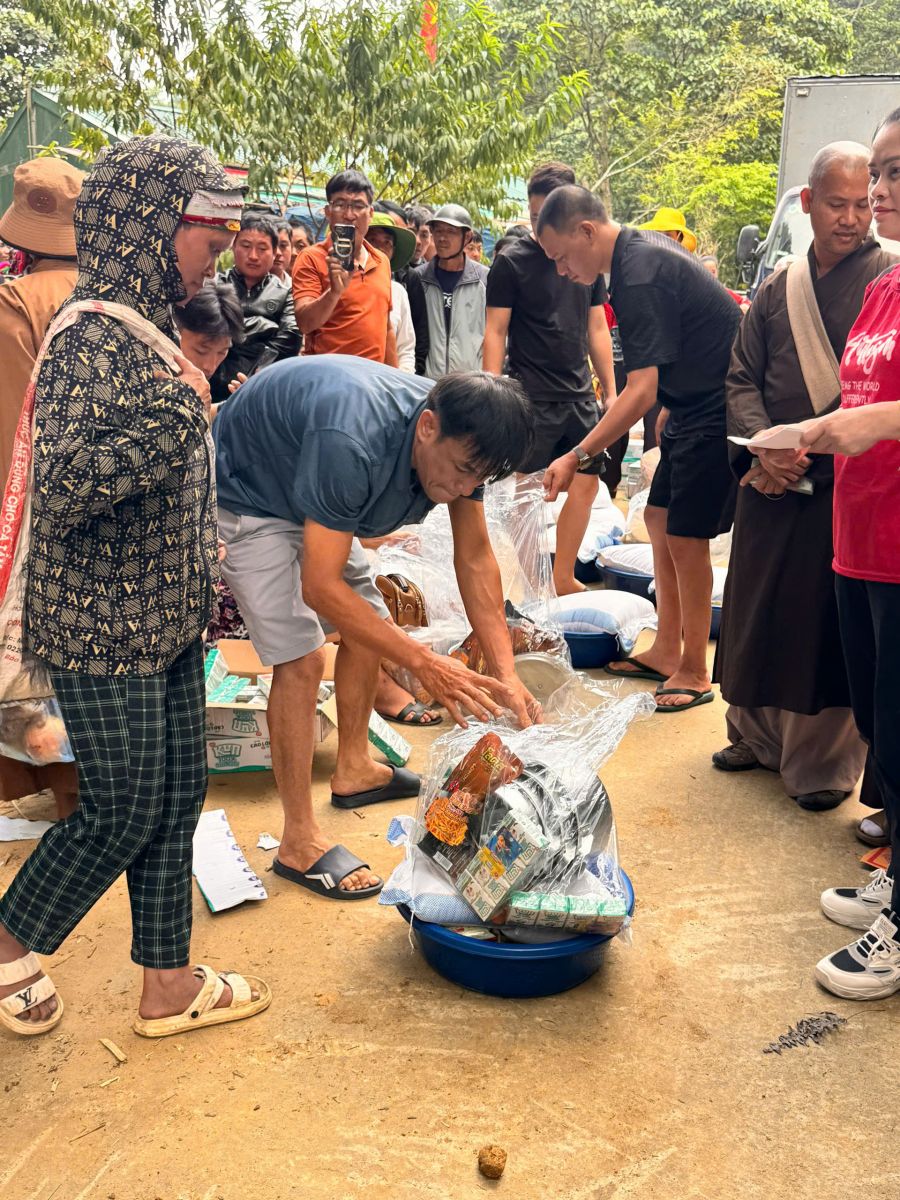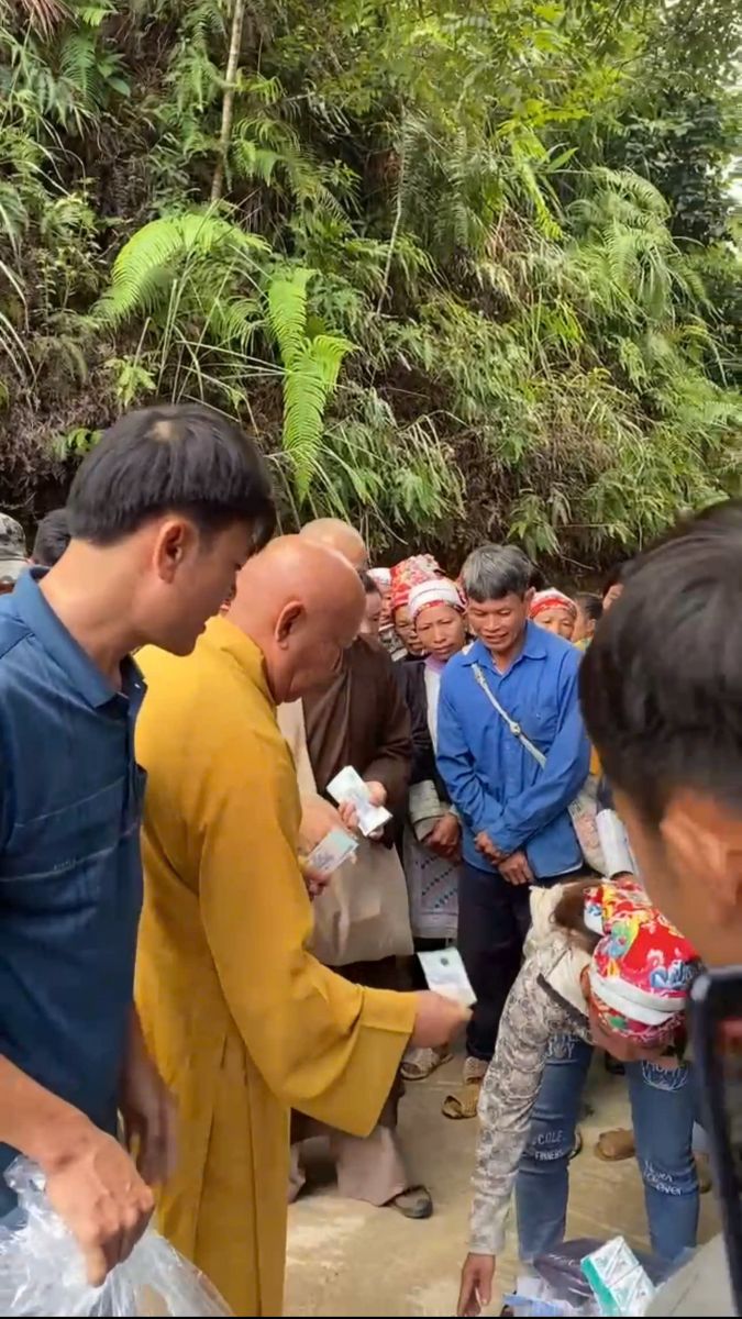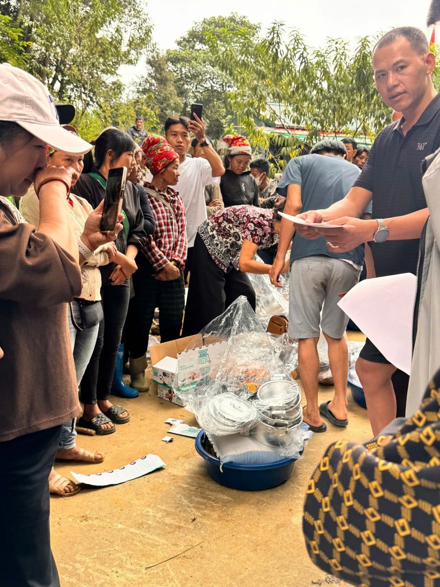 Điểm 1: Xã Y Tý, huyện Bát Xát, Lào Cai, phát 300 phần quà , trong đó mỗi phần gồm 5 cái nồi, thau giặt, 10kg gạo, mền, áo quần, gia vị …500 ngàn đồng tiền mặt,