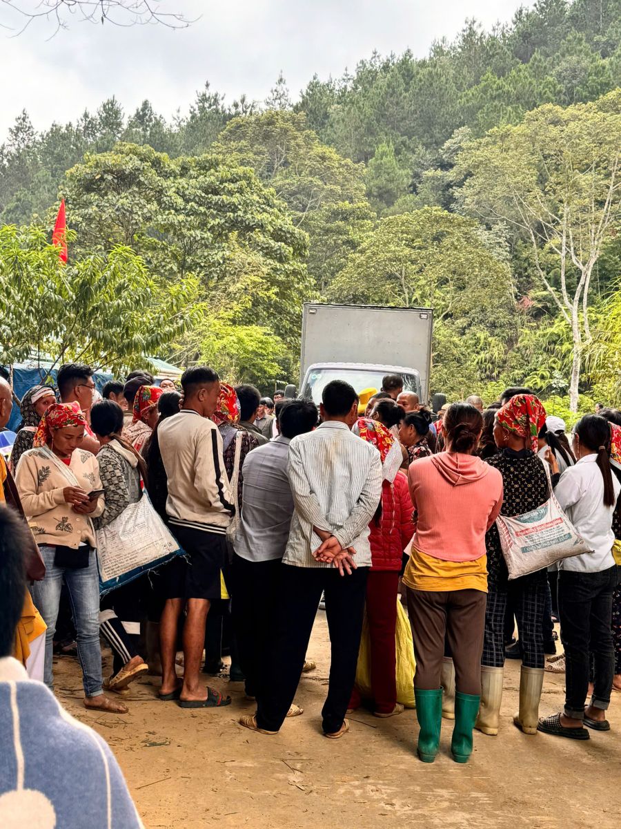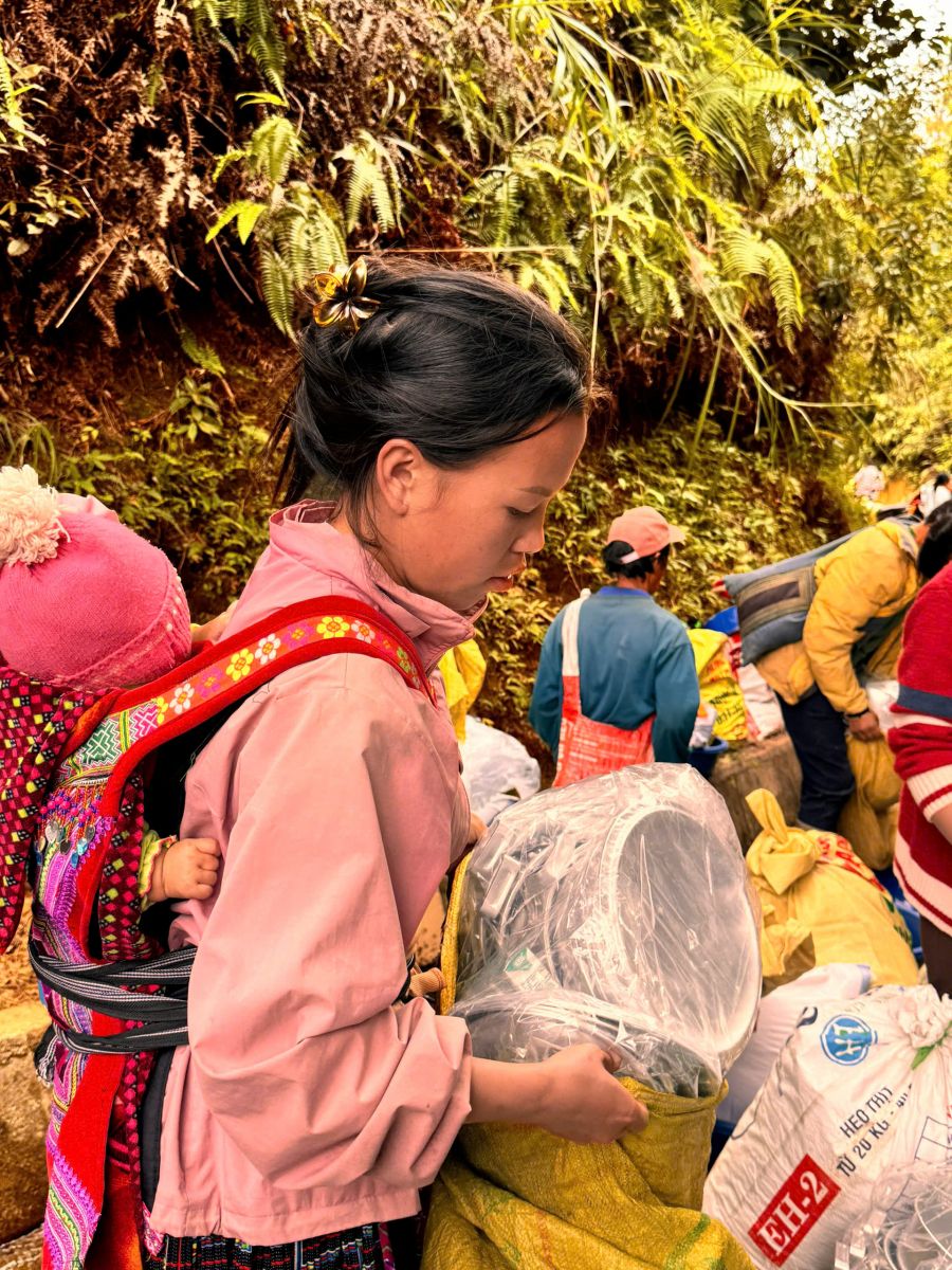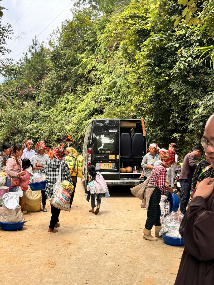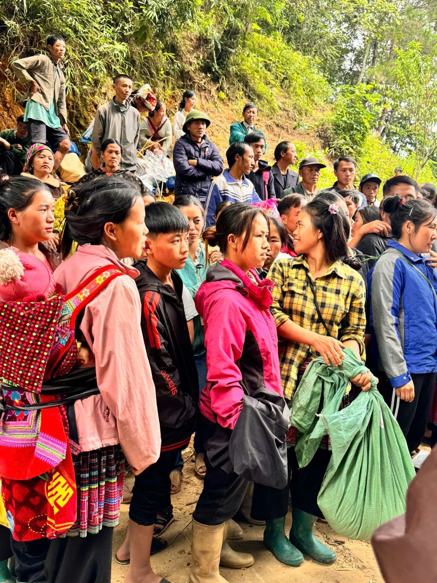 Điểm 1: Xã Y Tý, huyện Bát Xát, Lào Cai, phát 300 phần quà , trong đó mỗi phần gồm 5 cái nồi, thau giặt, 10kg gạo, mền, áo quần, gia vị …500 ngàn đồng tiền mặt,