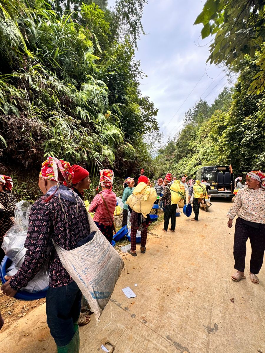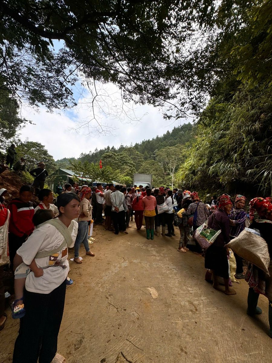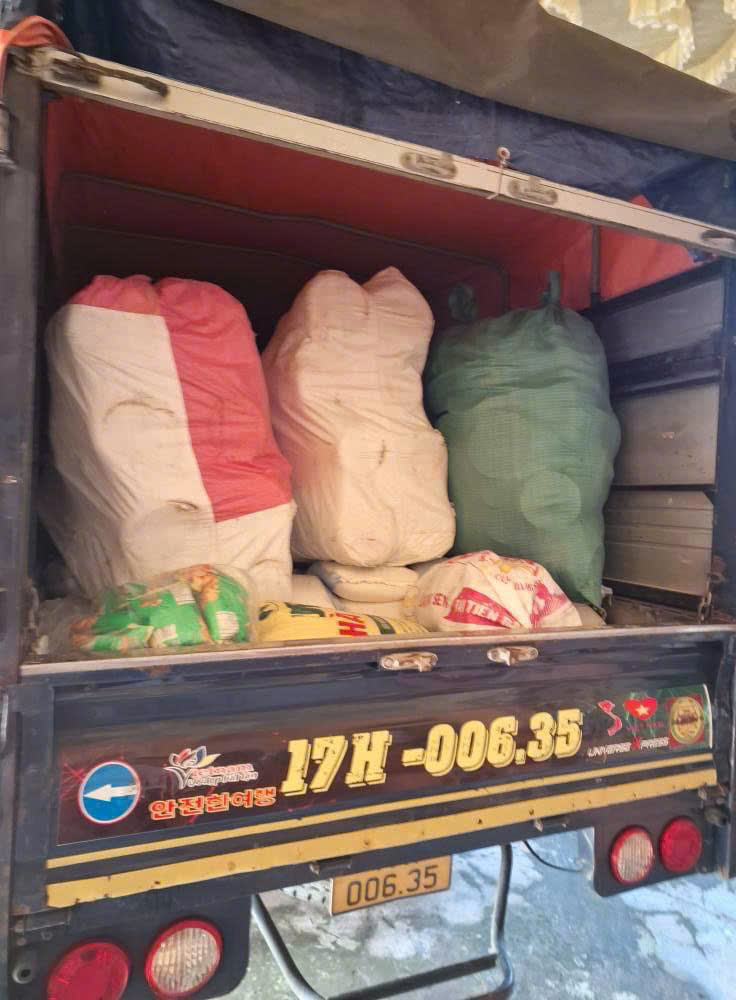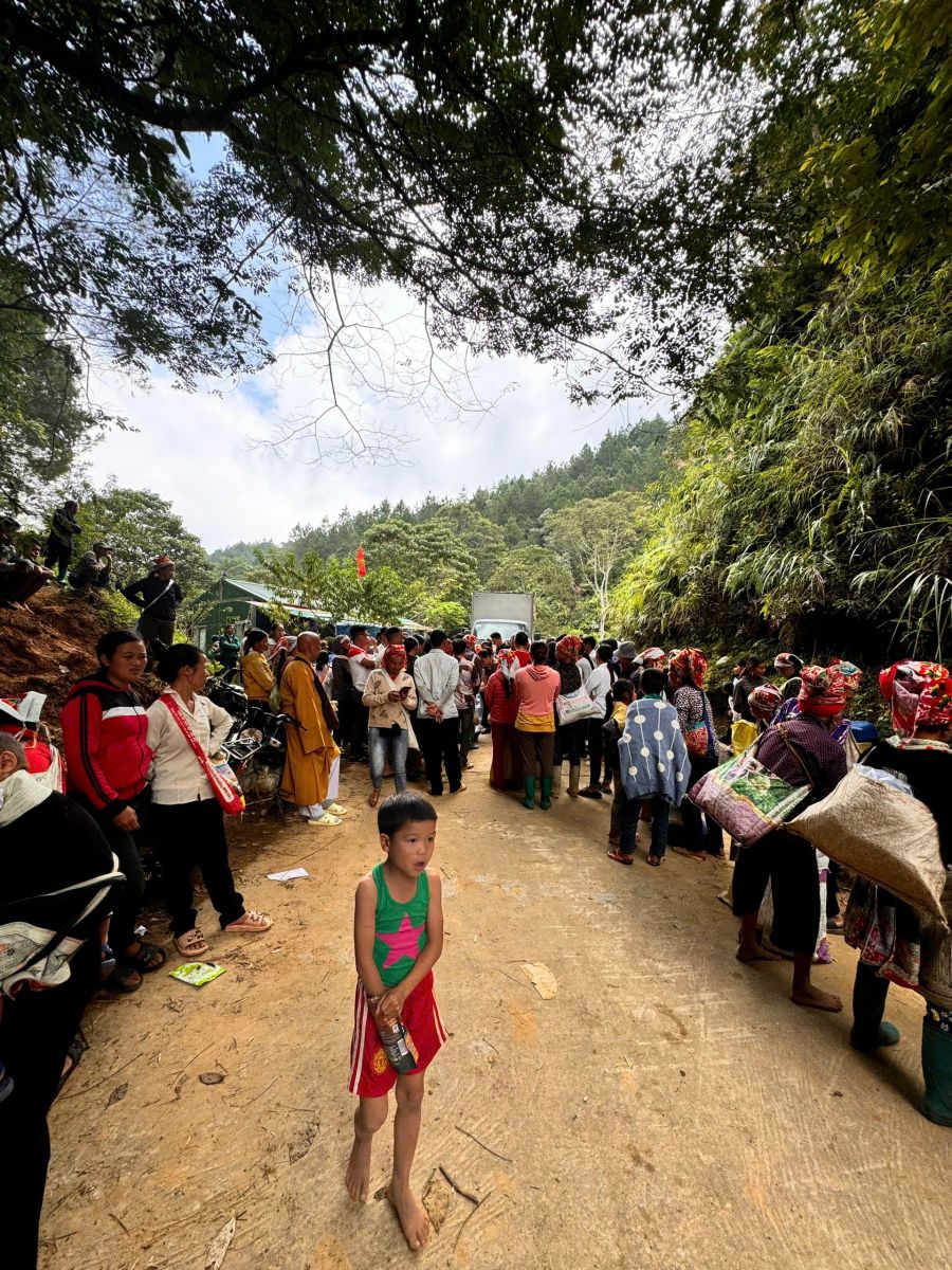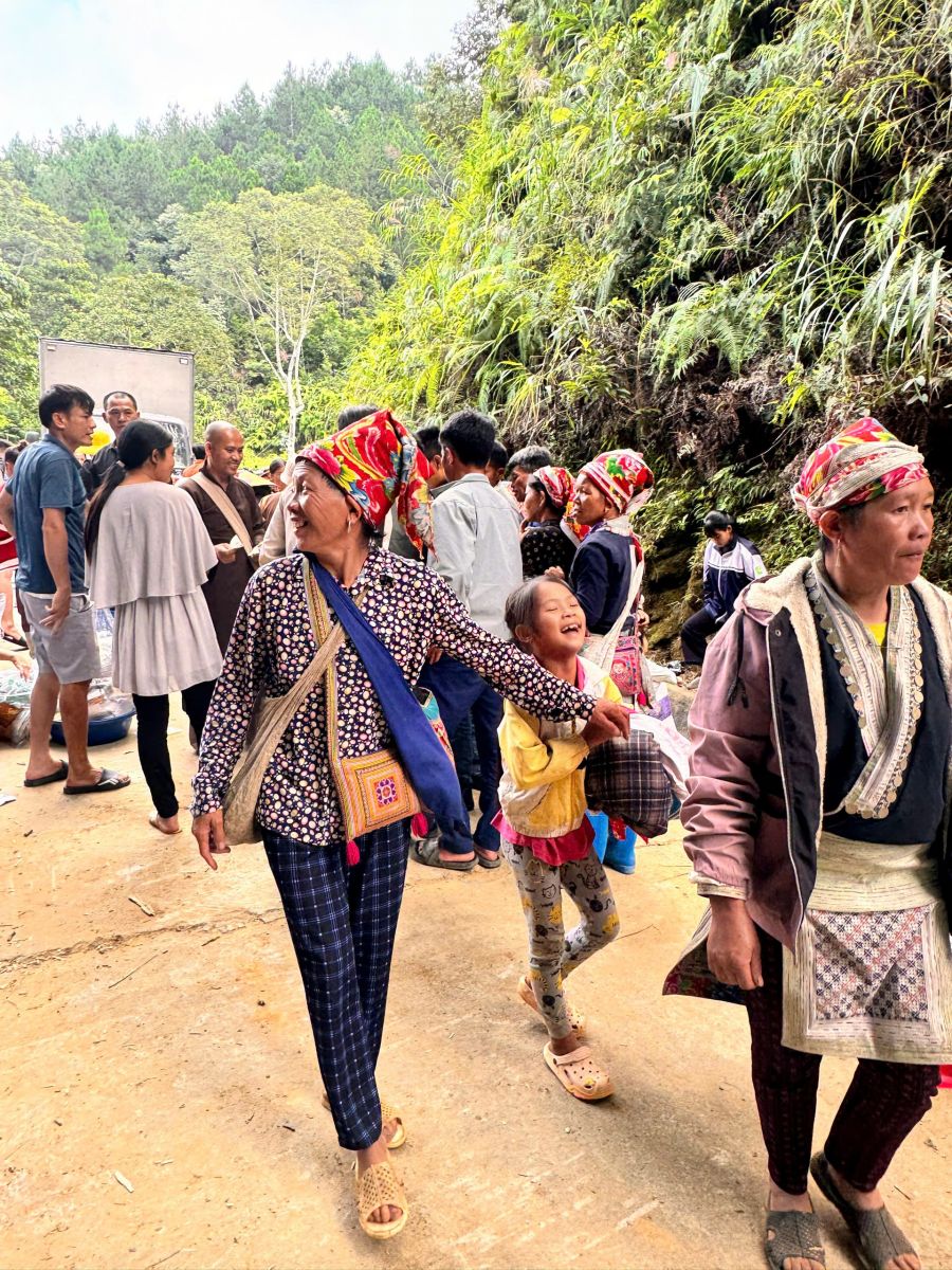 Điểm 1: Xã Y Tý, huyện Bát Xát, Lào Cai, phát 300 phần quà , trong đó mỗi phần gồm 5 cái nồi, thau giặt, 10kg gạo, mền, áo quần, gia vị …500 ngàn đồng tiền mặt,