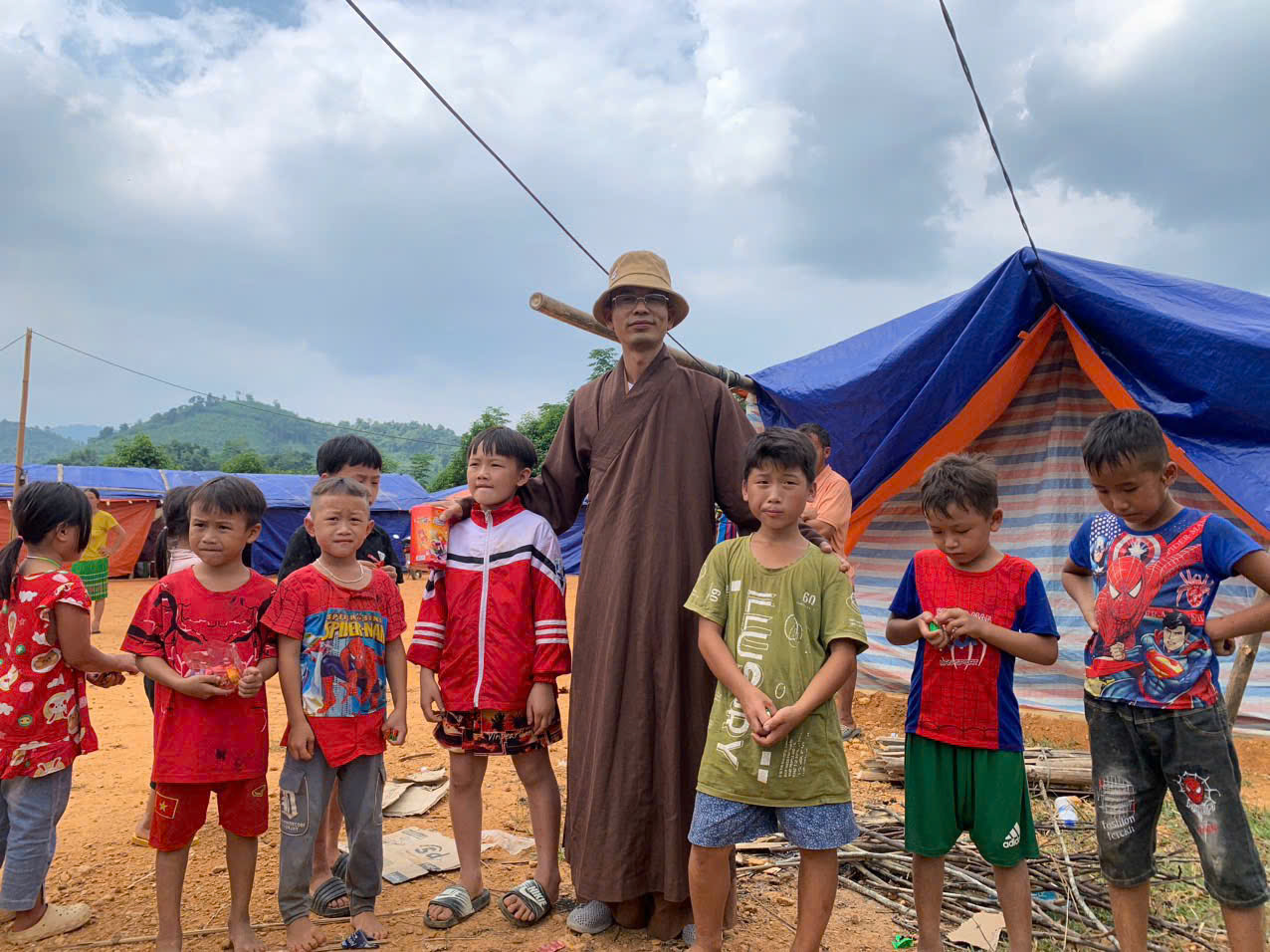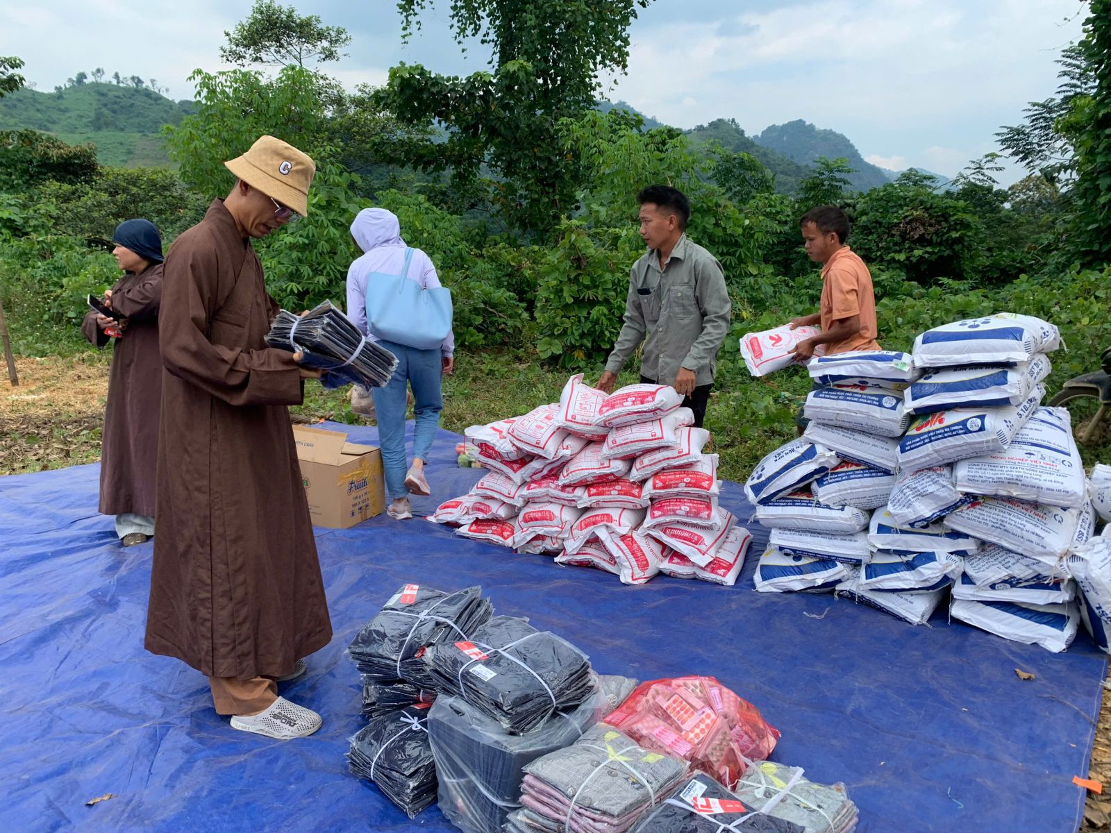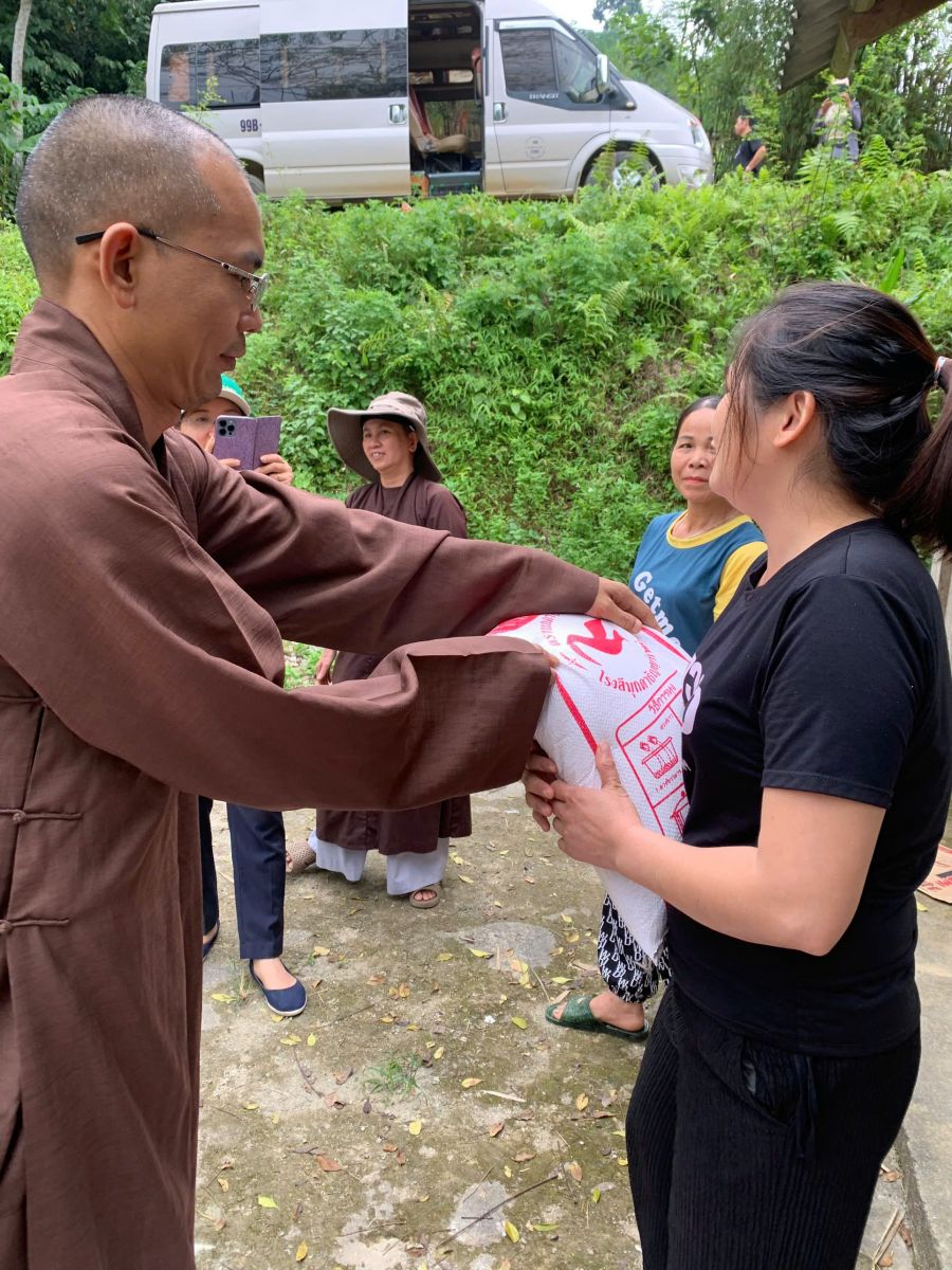 Qua đây, ĐĐ Thích Trung Quán ( trụ trì chùa Phước Huệ) thay mặt đoàn từ thiện, gửi lời cảm ơn đến quý tăng ni và đồng bào phật tử đã hỗ trợ và trực tiếp đồng hành trong chuyến đi, cảm ơn chính quyền địa phương đã hỗ trợ cho đoàn đến các điểm phát quà được thuận lợi và an toàn, chia sẻ đến những hộ gia đình thiệt hại nặng trong trận bão vừa qua, bằng tình cảm và những đóng góp cho chuyến đi với những phần quà nhỏ bé phần nào khắc phục sau bão lũ.