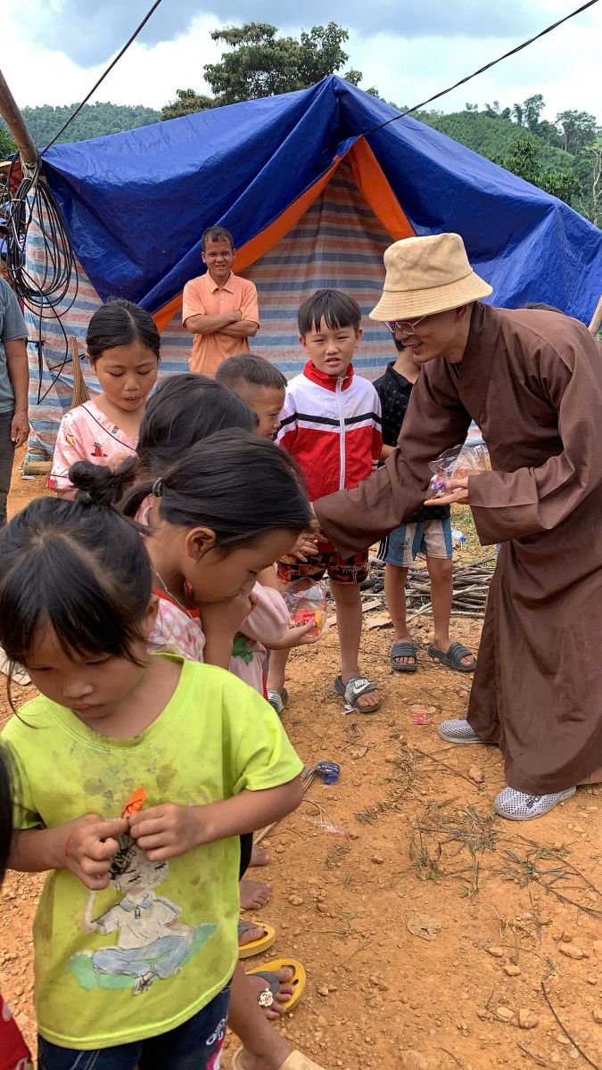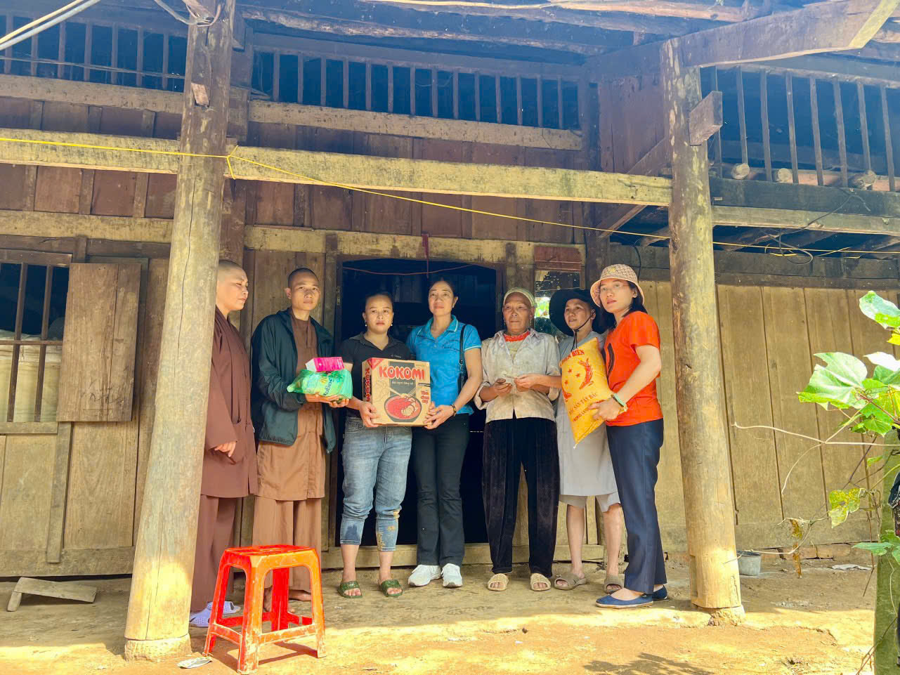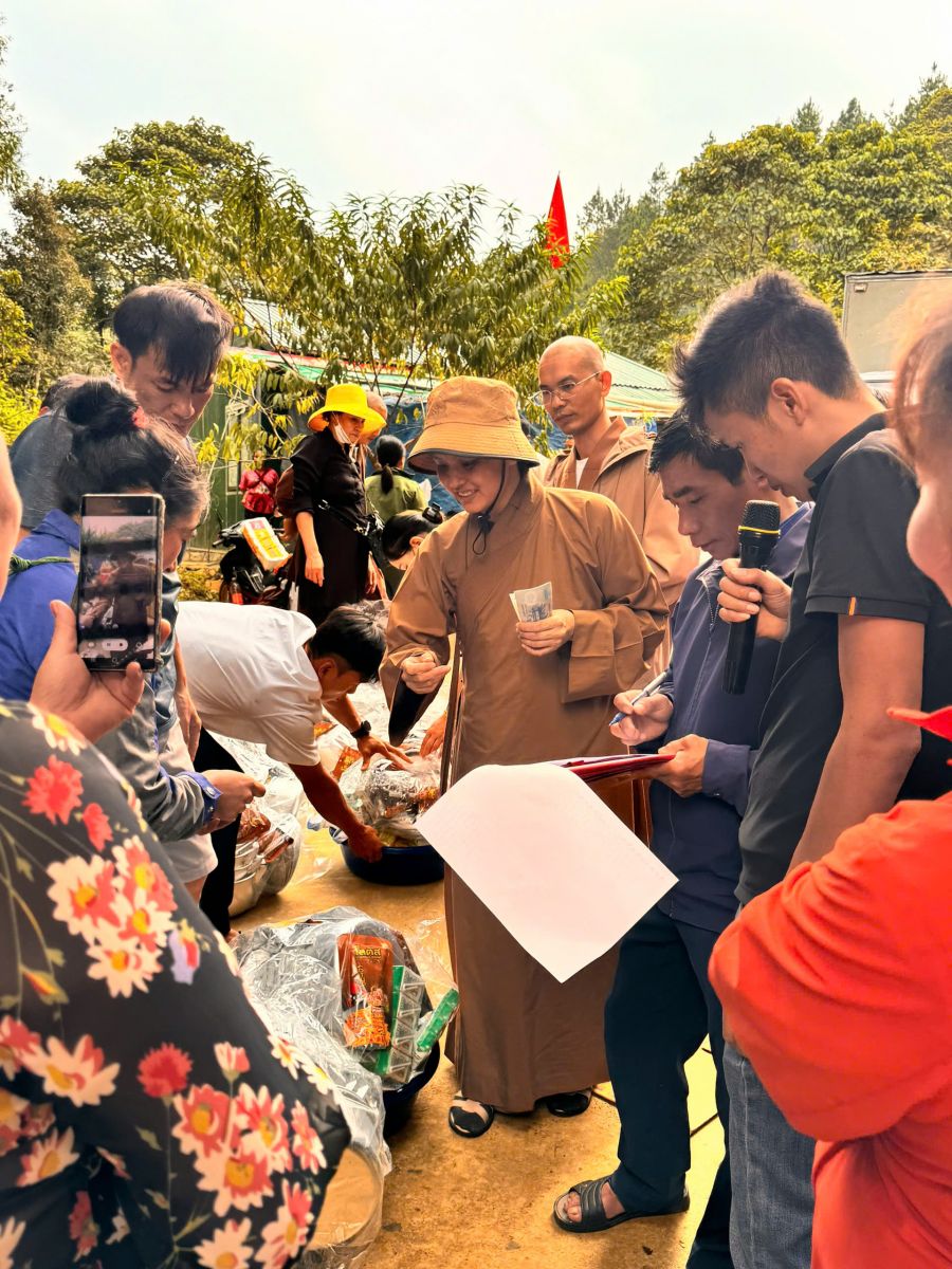 Qua đây, ĐĐ Thích Trung Quán ( trụ trì chùa Phước Huệ) thay mặt đoàn từ thiện, gửi lời cảm ơn đến quý tăng ni và đồng bào phật tử đã hỗ trợ và trực tiếp đồng hành trong chuyến đi, cảm ơn chính quyền địa phương đã hỗ trợ cho đoàn đến các điểm phát quà được thuận lợi và an toàn, chia sẻ đến những hộ gia đình thiệt hại nặng trong trận bão vừa qua, bằng tình cảm và những đóng góp cho chuyến đi với những phần quà nhỏ bé phần nào khắc phục sau bão lũ.