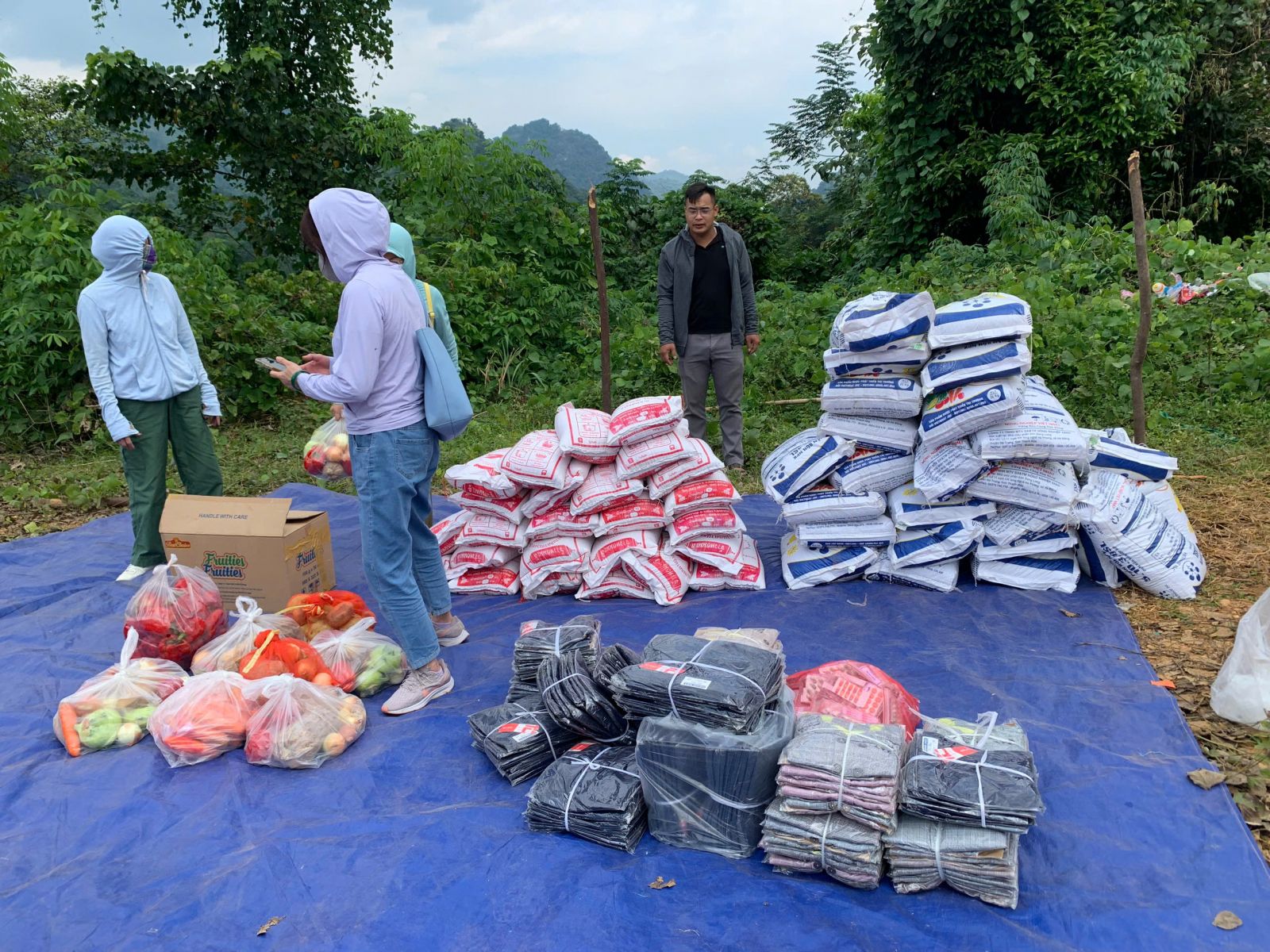 Điểm 2: Bản Tưn, xã Xuân lạc, huyện Chợ Đồn, Bắc Cạn: phát 50 phần quà, gồm có áo quần, 10kg gạo, 1 bao phân bón NPK, thuốc tây…500 ngàn tiền mặt.