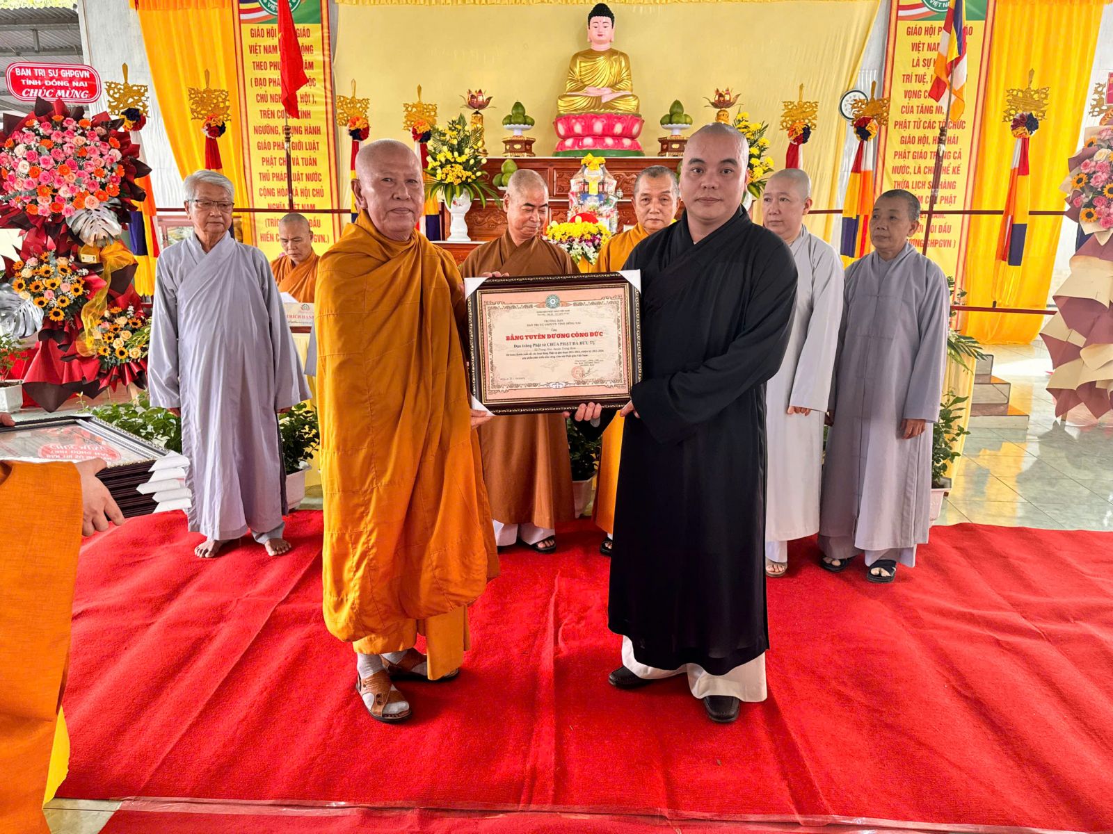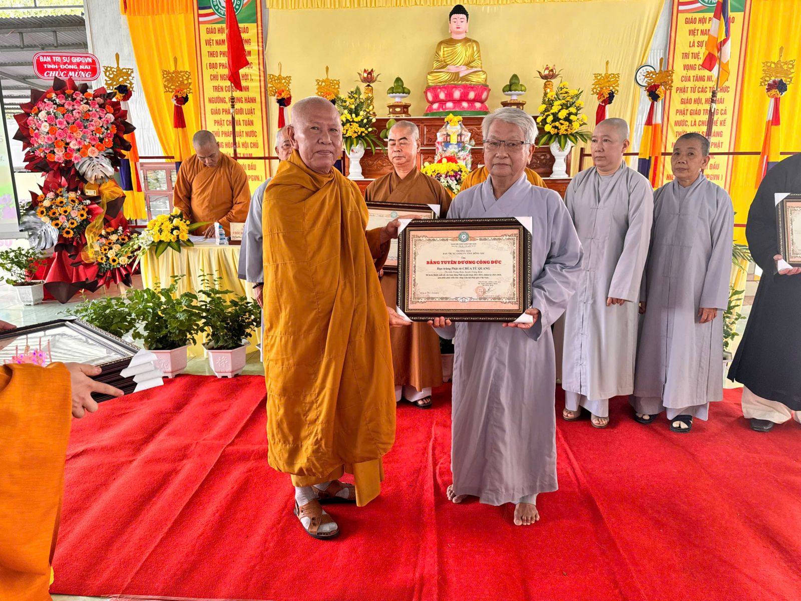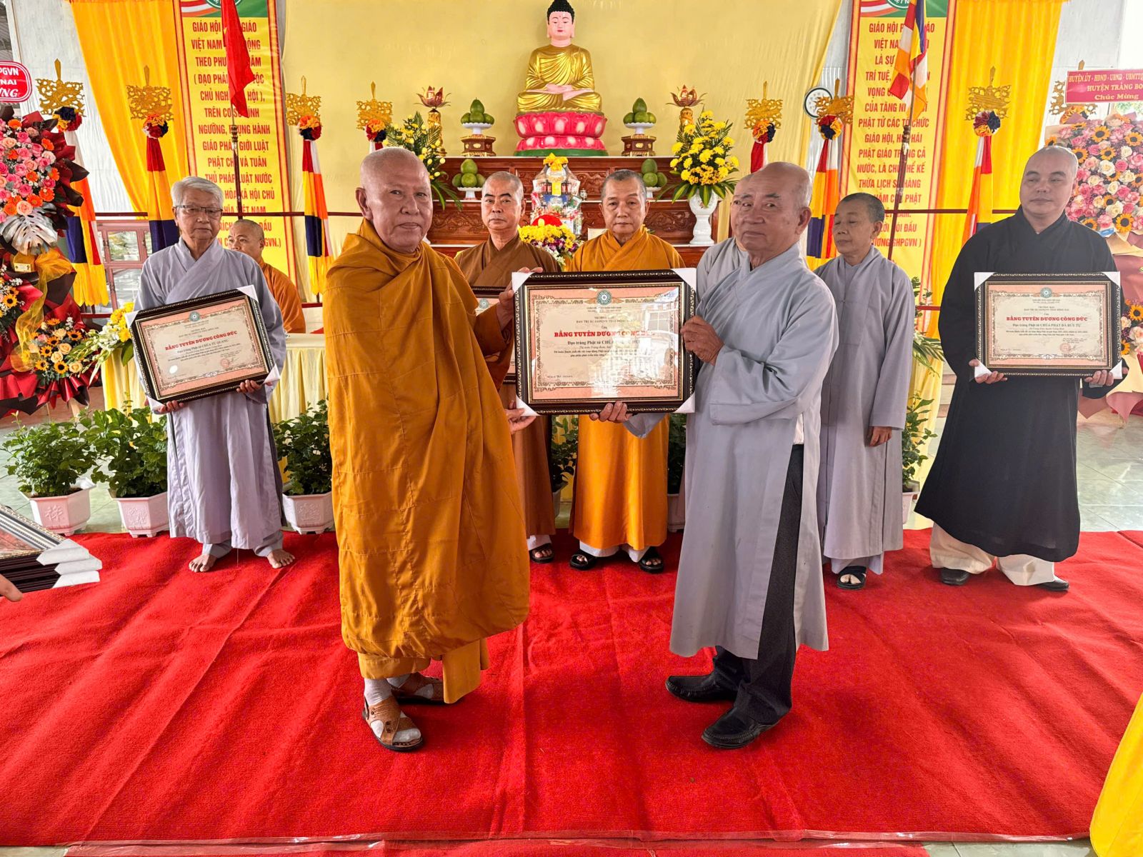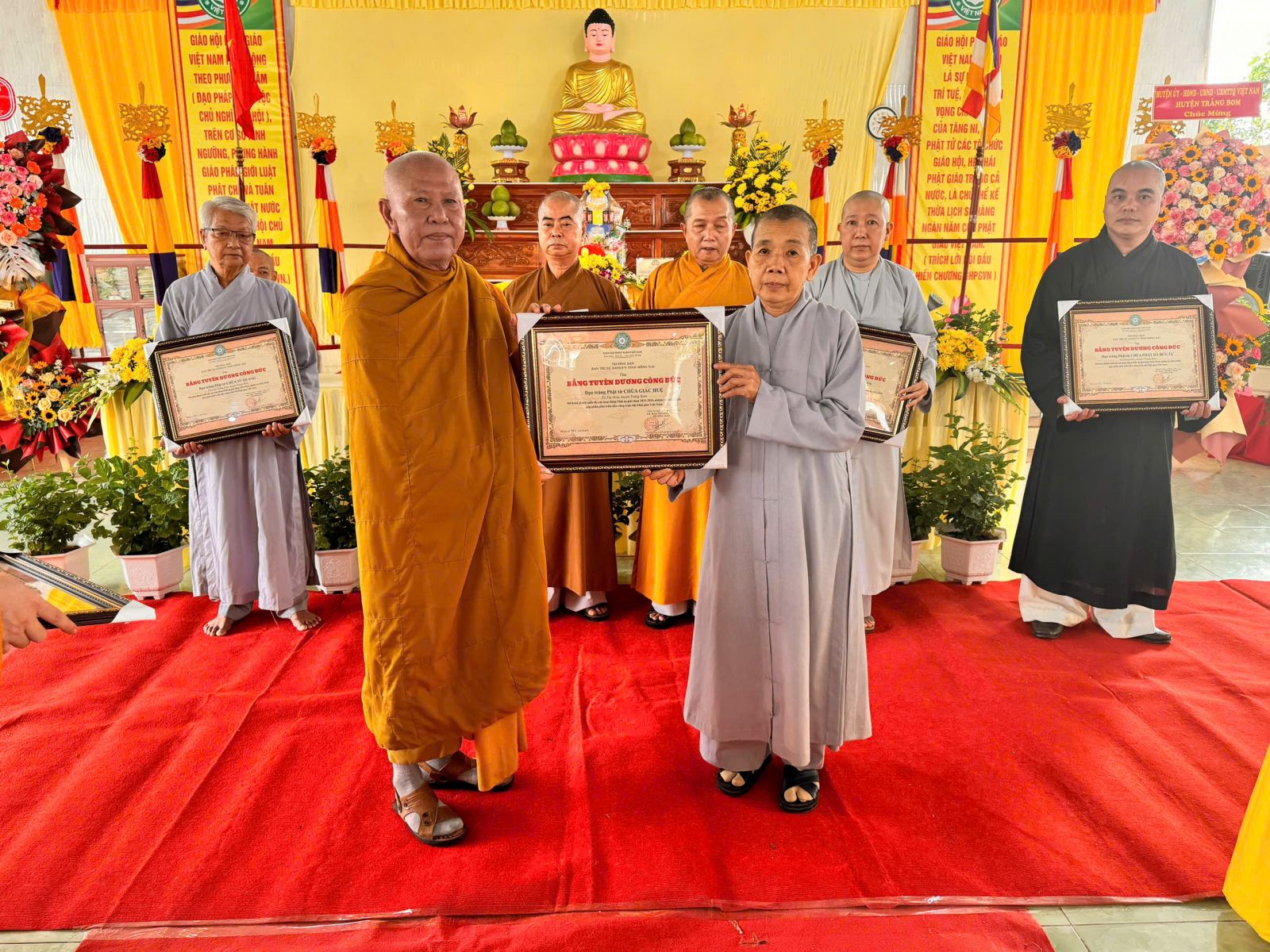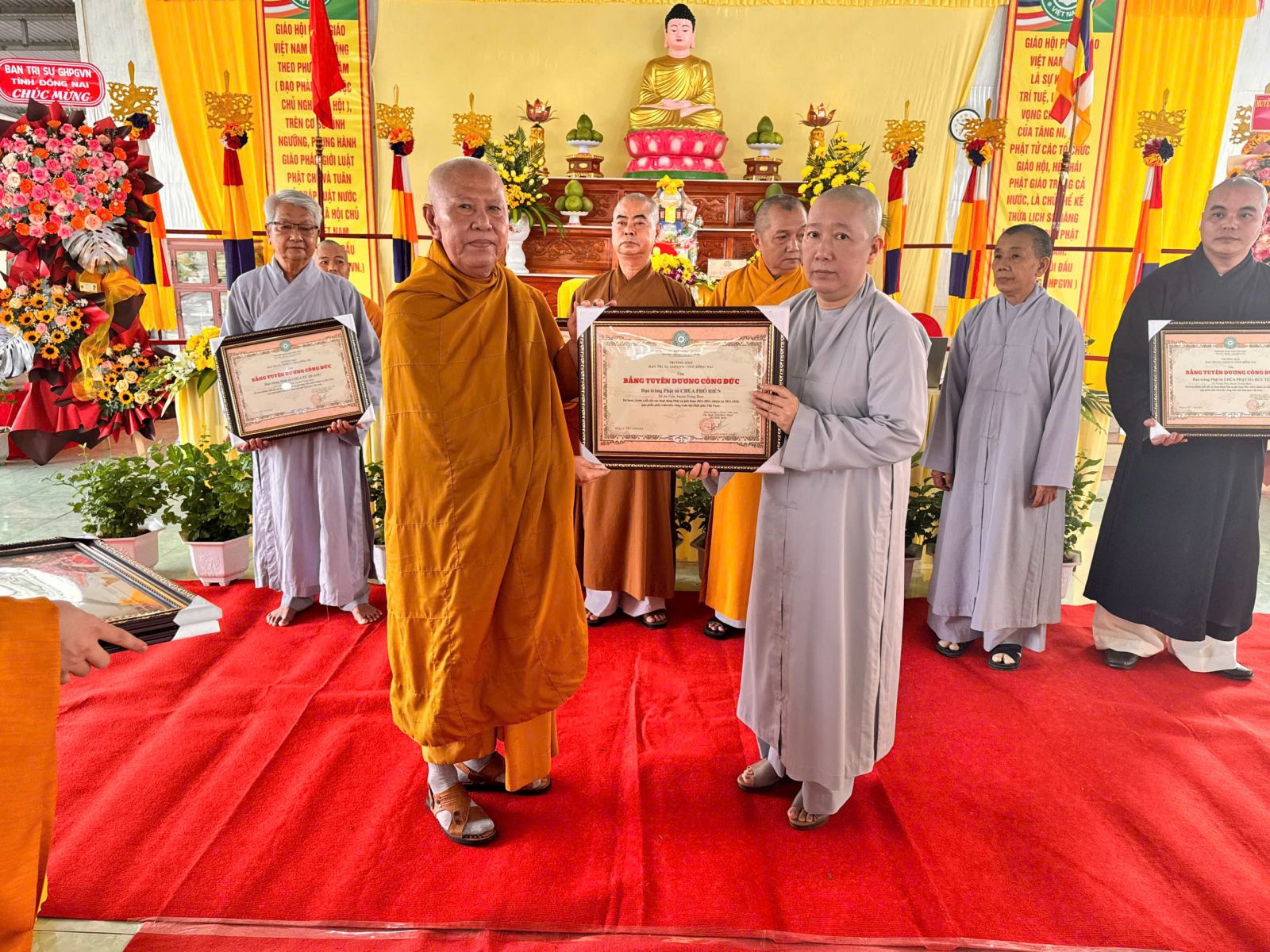 Cũng trong hội nghị này, Ban trị sự GHPGVN tỉnh Đồng Nai, Ban trị sự GHPGVN huyện, tặng bằng Tuyên dương công đức để tôn vinh những giá trị tinh thần cao đẹp của tập thể, cá nhân trong việc đẩy mạnh công tác từ thiện xã hội, an sinh xã hội…trên tinh thần từ bi của đạo Phật. Uỷ Ban nhân dân huyện Trảng Bom tặng bằng khen cho 9 tập thể và 5 cá nhân đã có nhiều đóng góp trong công tác tôn giáo huyện Trảng Bom.