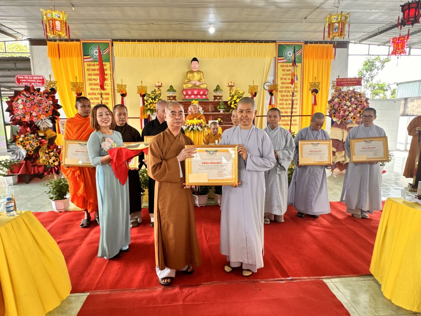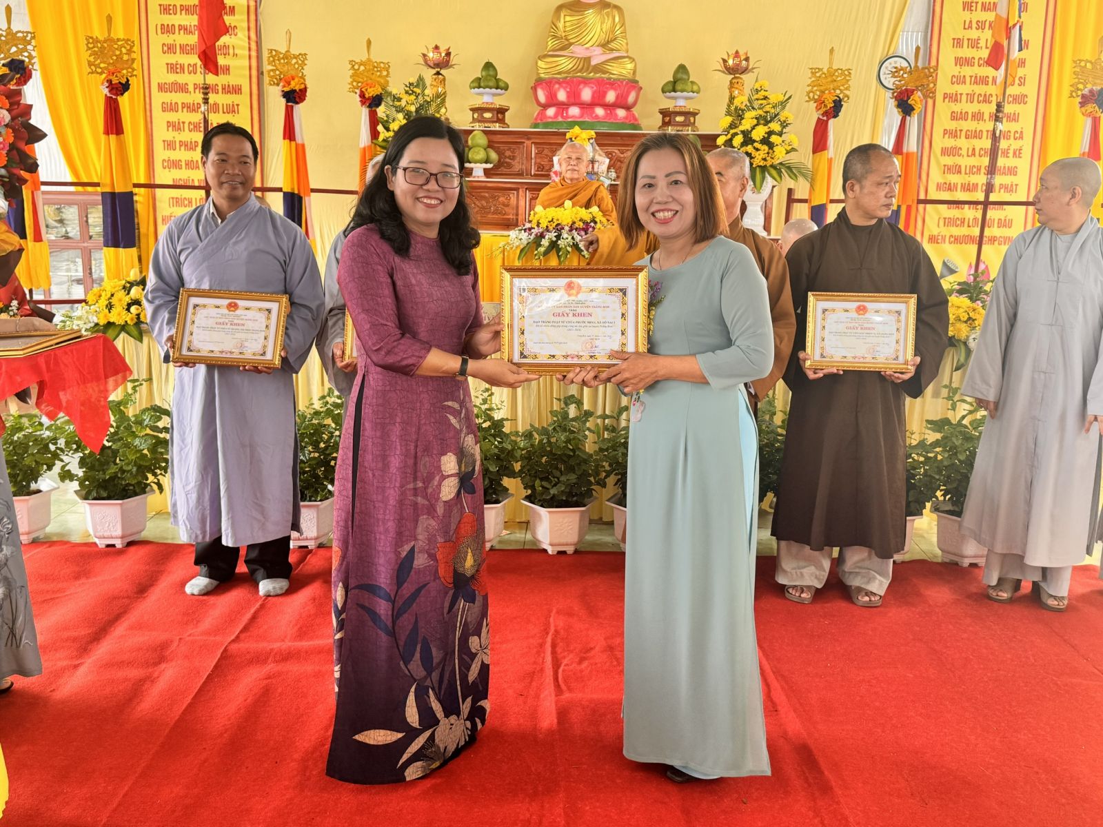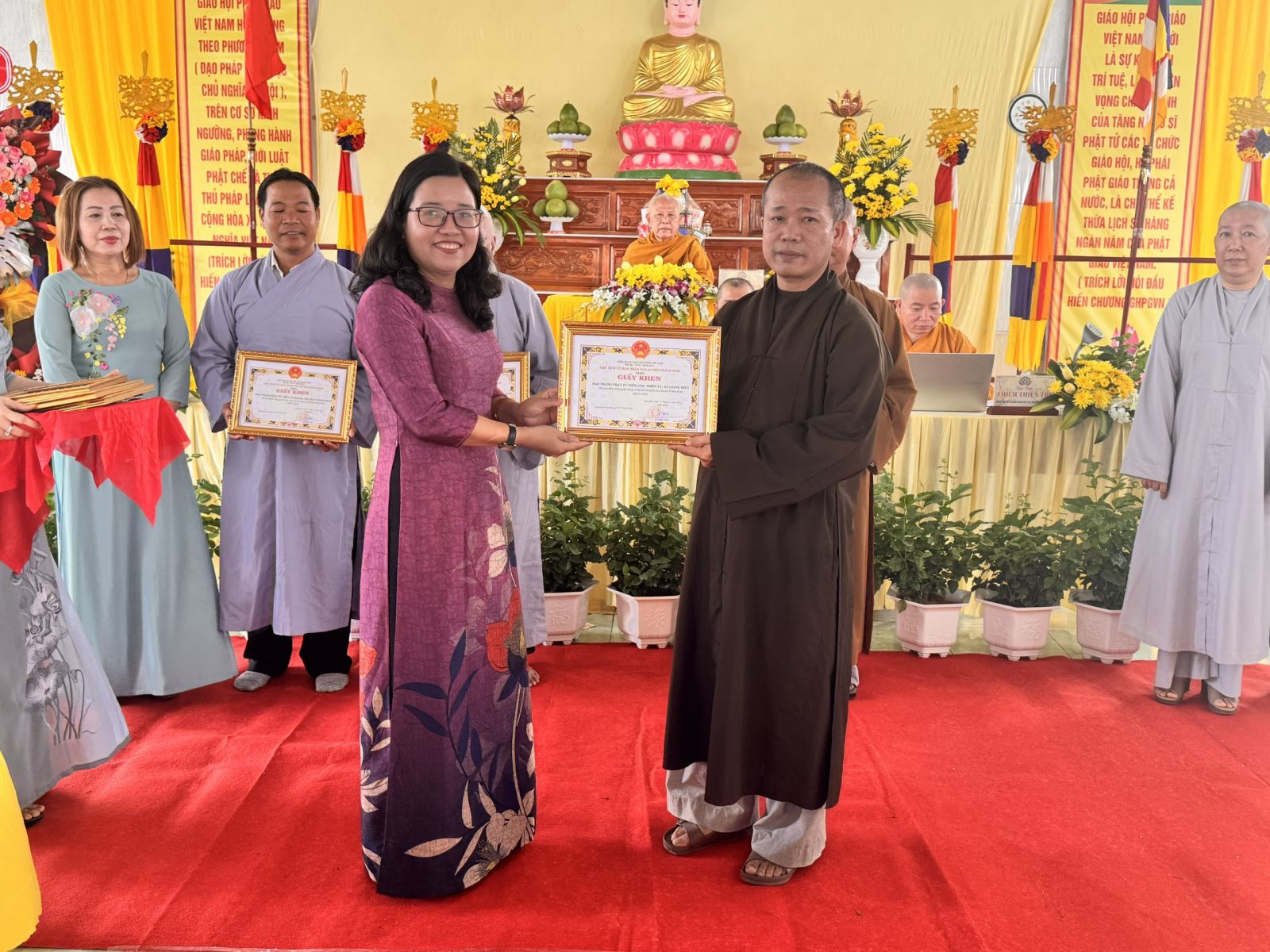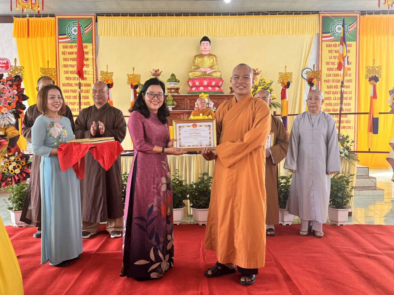 Cũng trong hội nghị này, Ban trị sự GHPGVN tỉnh Đồng Nai, Ban trị sự GHPGVN huyện, tặng bằng Tuyên dương công đức để tôn vinh những giá trị tinh thần cao đẹp của tập thể, cá nhân trong việc đẩy mạnh công tác từ thiện xã hội, an sinh xã hội…trên tinh thần từ bi của đạo Phật. Uỷ Ban nhân dân huyện Trảng Bom tặng bằng khen cho 9 tập thể và 5 cá nhân đã có nhiều đóng góp trong công tác tôn giáo huyện Trảng Bom.
