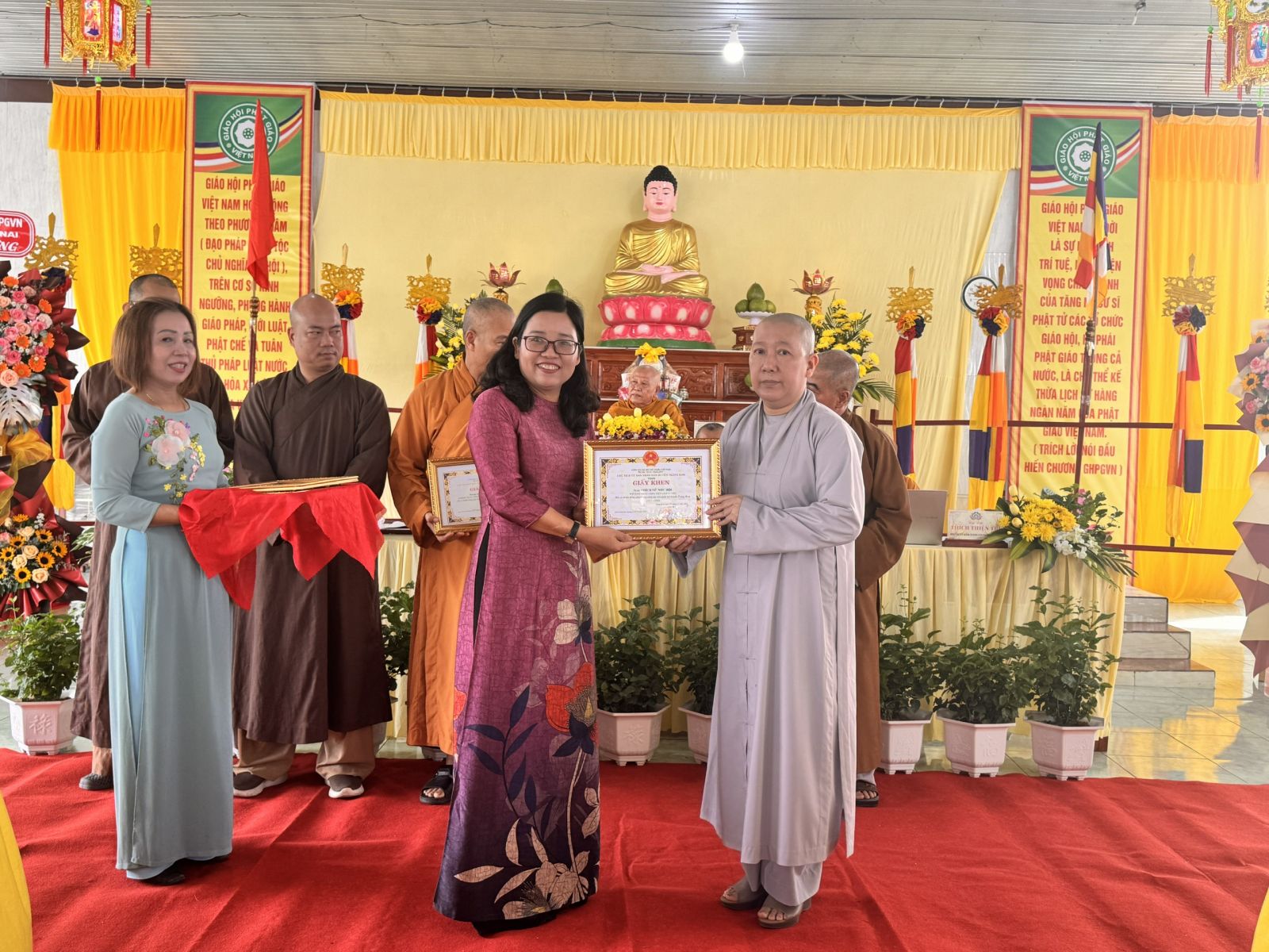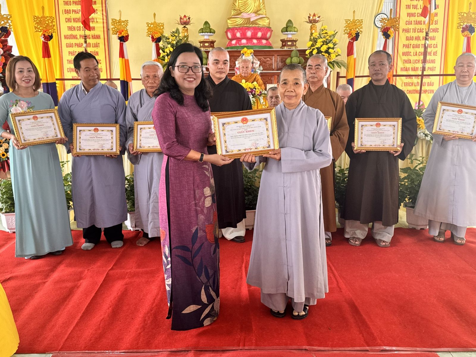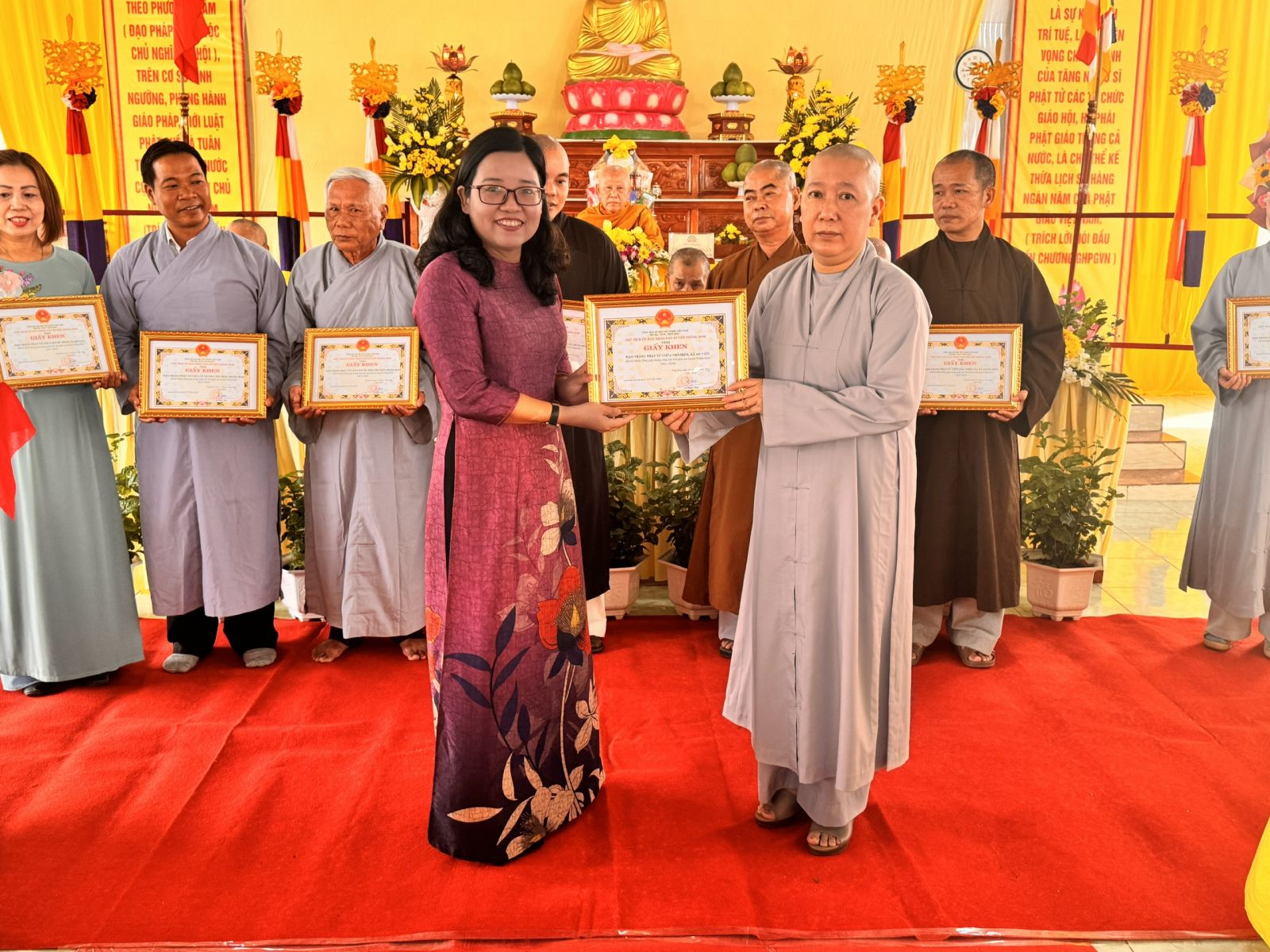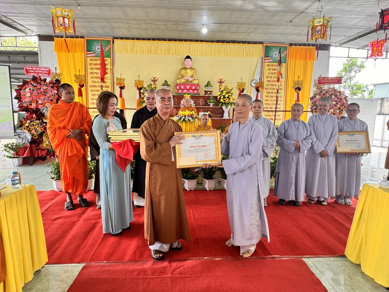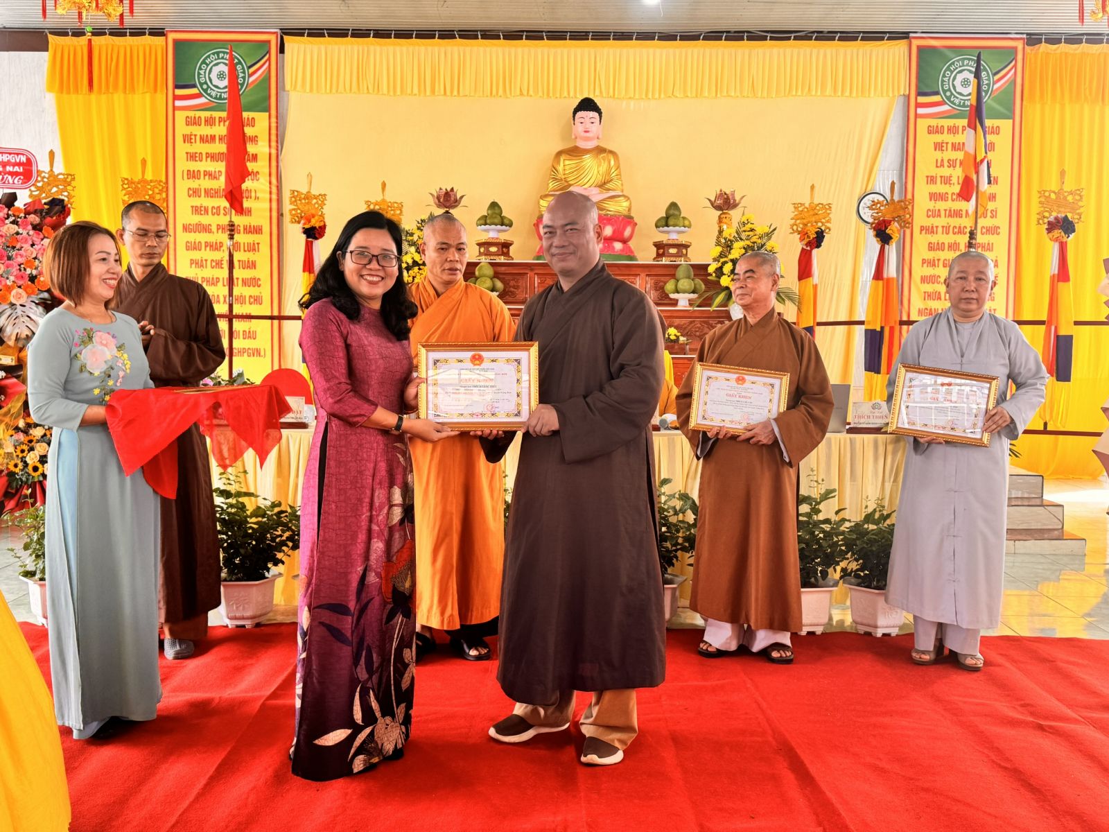 Cũng trong hội nghị này, Ban trị sự GHPGVN tỉnh Đồng Nai, Ban trị sự GHPGVN huyện, tặng bằng Tuyên dương công đức để tôn vinh những giá trị tinh thần cao đẹp của tập thể, cá nhân trong việc đẩy mạnh công tác từ thiện xã hội, an sinh xã hội…trên tinh thần từ bi của đạo Phật. Uỷ Ban nhân dân huyện Trảng Bom tặng bằng khen cho 9 tập thể và 5 cá nhân đã có nhiều đóng góp trong công tác tôn giáo huyện Trảng Bom.