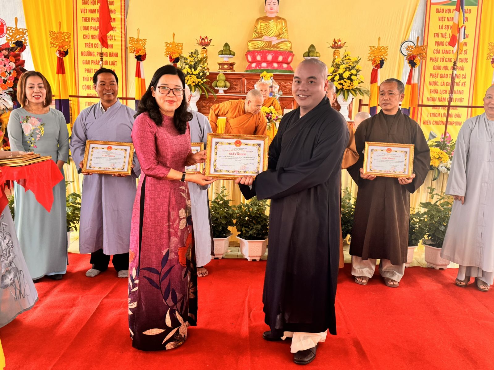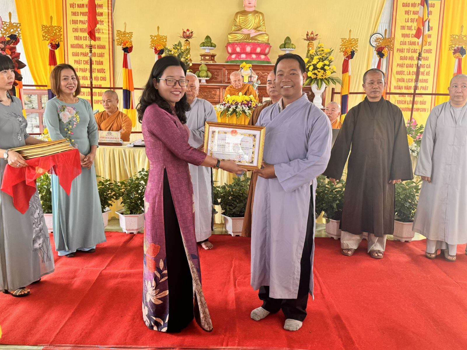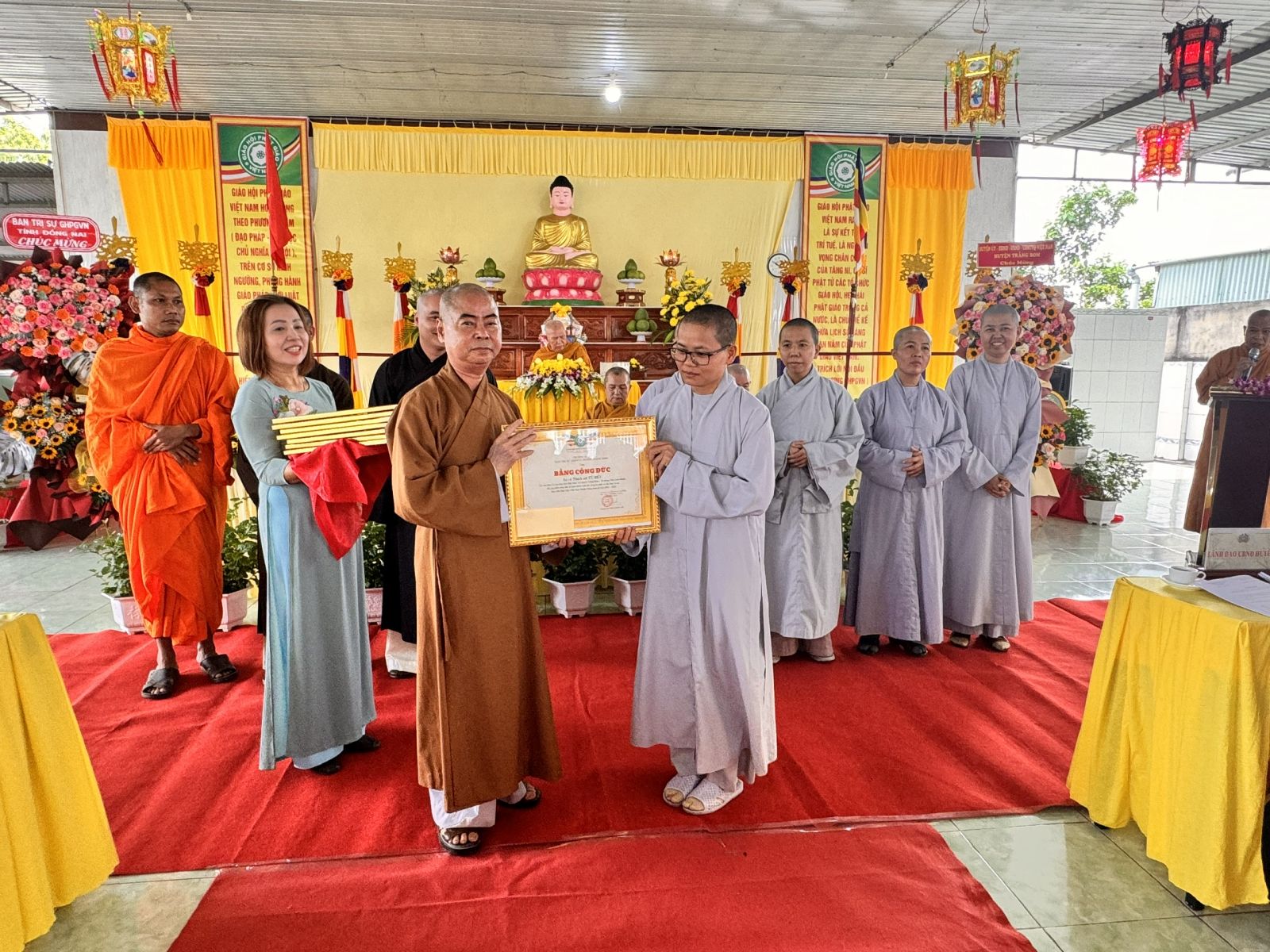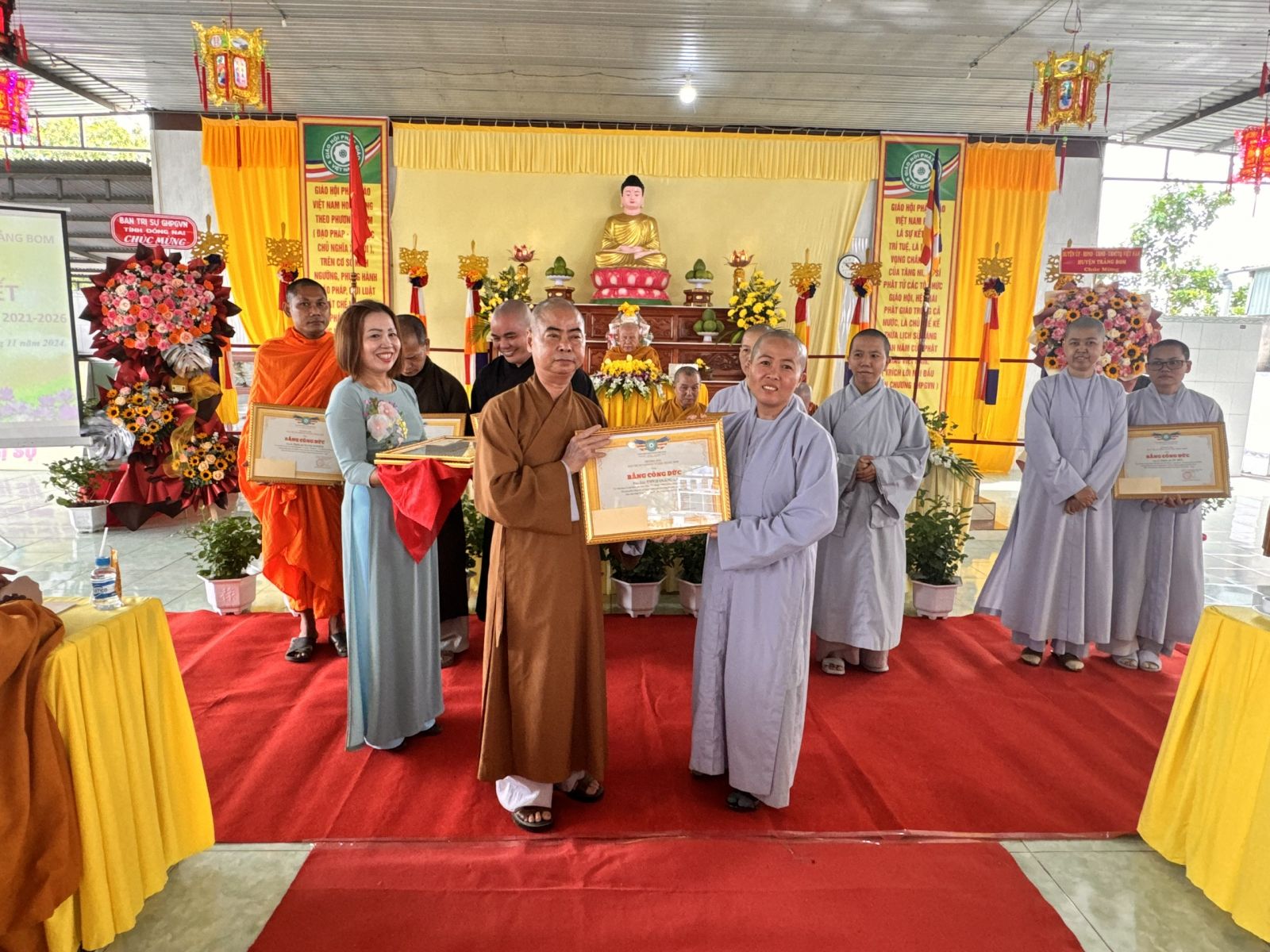 Cũng trong hội nghị này, Ban trị sự GHPGVN tỉnh Đồng Nai, Ban trị sự GHPGVN huyện, tặng bằng Tuyên dương công đức để tôn vinh những giá trị tinh thần cao đẹp của tập thể, cá nhân trong việc đẩy mạnh công tác từ thiện xã hội, an sinh xã hội…trên tinh thần từ bi của đạo Phật. Uỷ Ban nhân dân huyện Trảng Bom tặng bằng khen cho 9 tập thể và 5 cá nhân đã có nhiều đóng góp trong công tác tôn giáo huyện Trảng Bom.