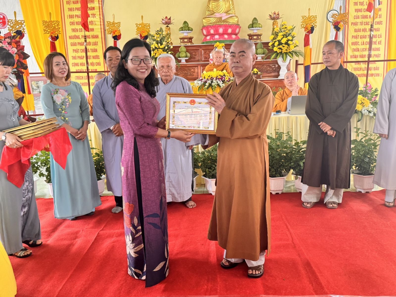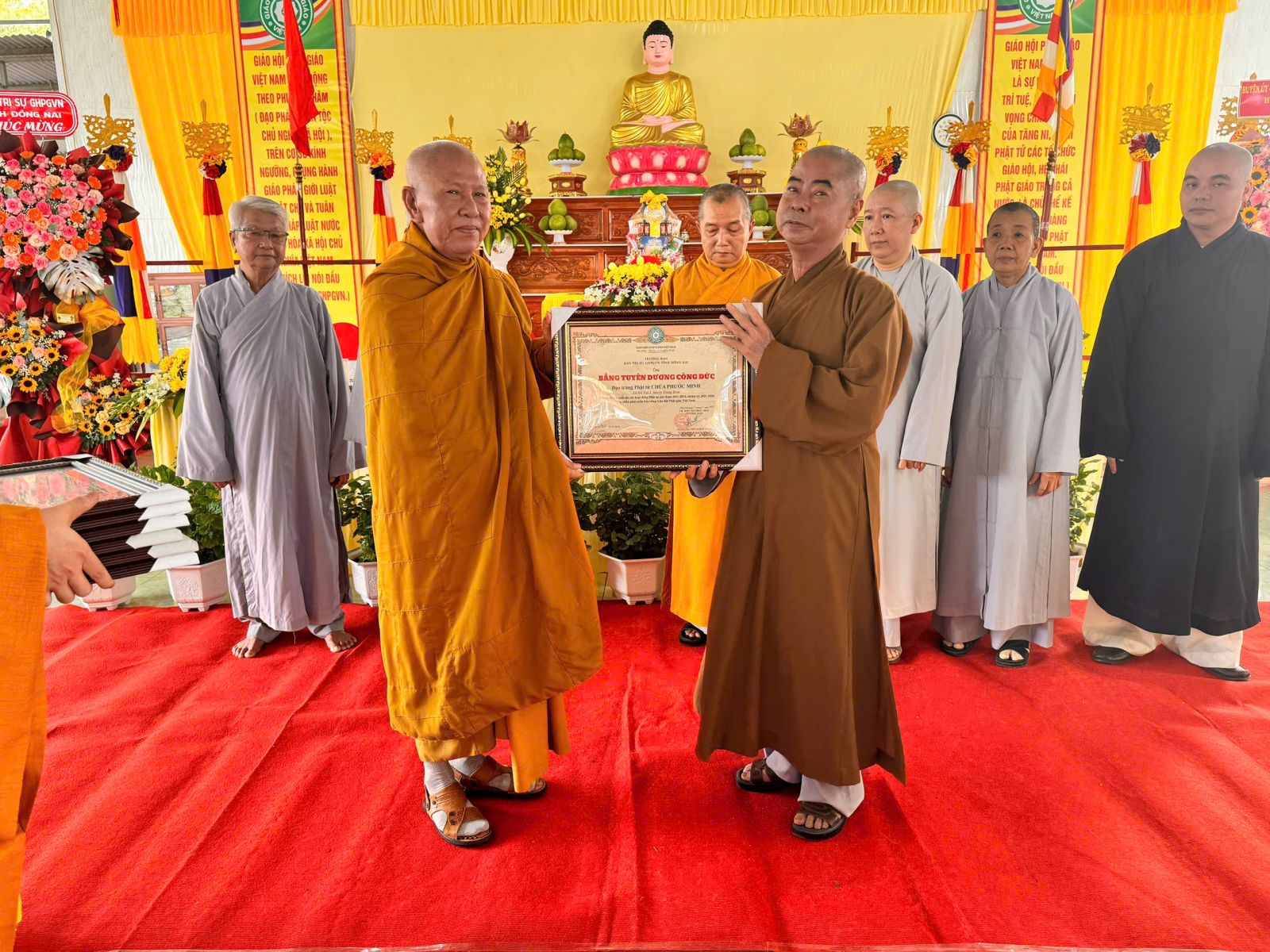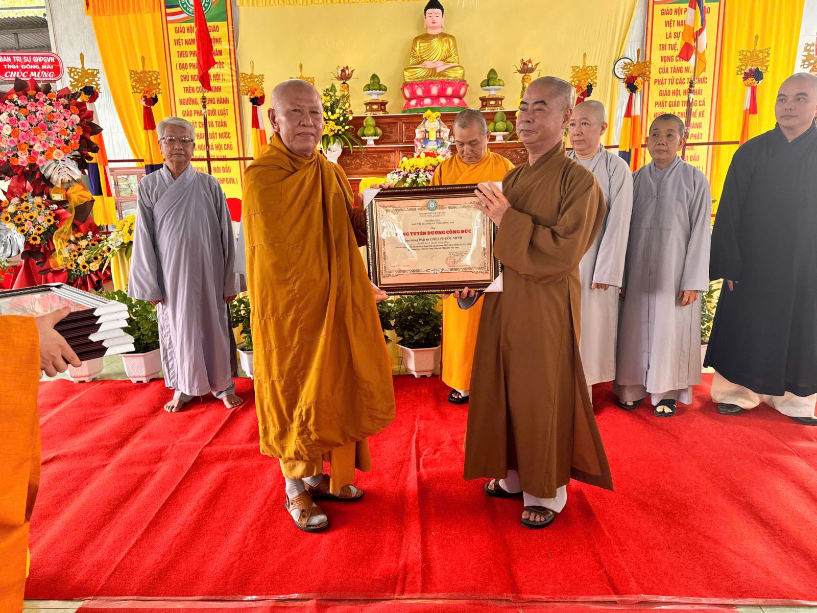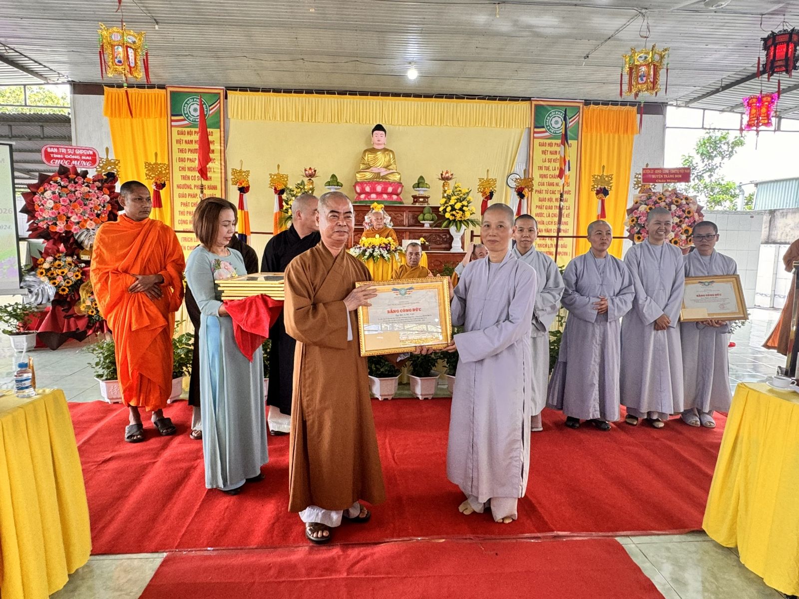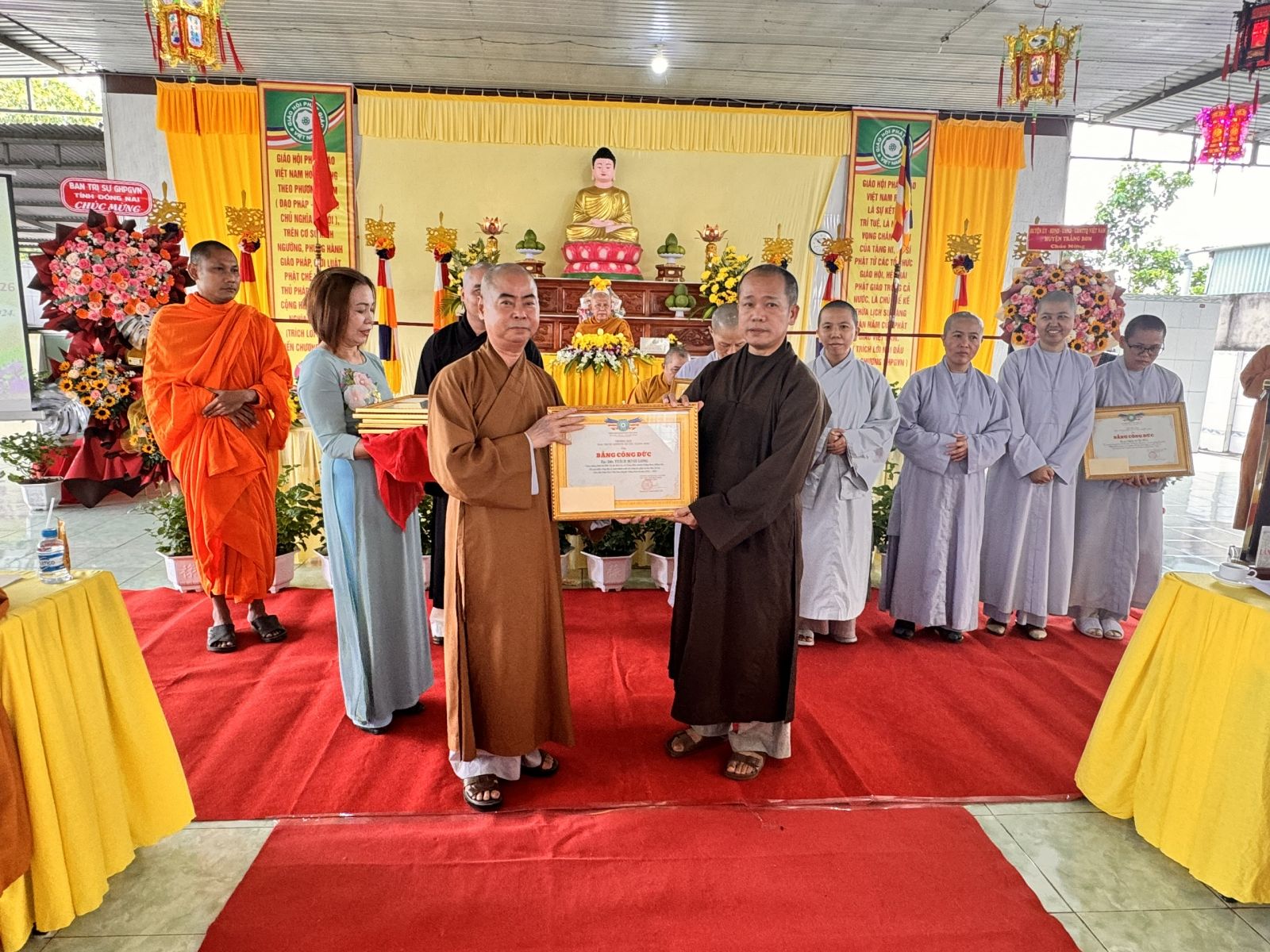Cũng trong hội nghị này, Ban trị sự GHPGVN tỉnh Đồng Nai, Ban trị sự GHPGVN huyện, tặng bằng Tuyên dương công đức để tôn vinh những giá trị tinh thần cao đẹp của tập thể, cá nhân trong việc đẩy mạnh công tác từ thiện xã hội, an sinh xã hội…trên tinh thần từ bi của đạo Phật. Uỷ Ban nhân dân huyện Trảng Bom tặng bằng khen cho 9 tập thể và 5 cá nhân đã có nhiều đóng góp trong công tác tôn giáo huyện Trảng Bom.
