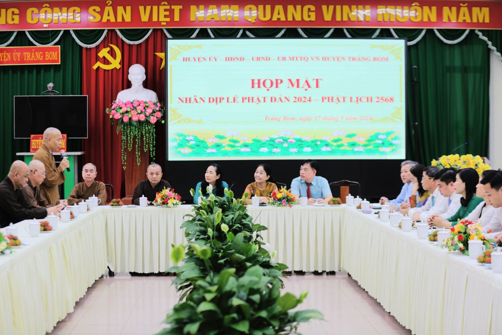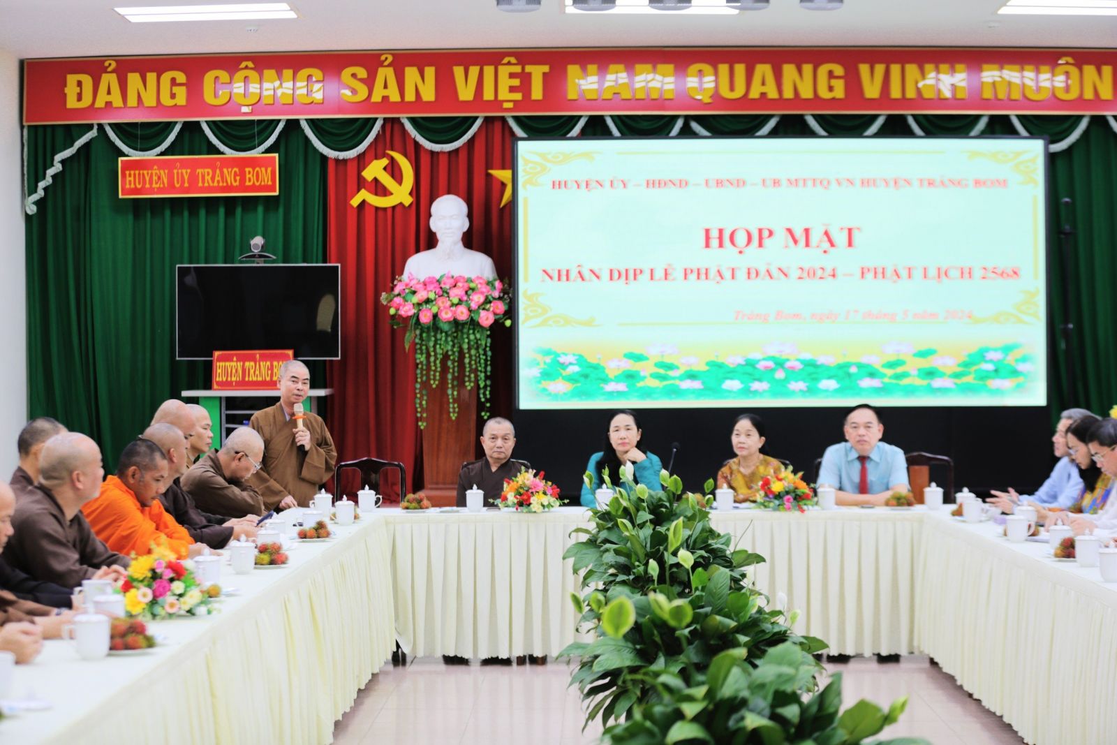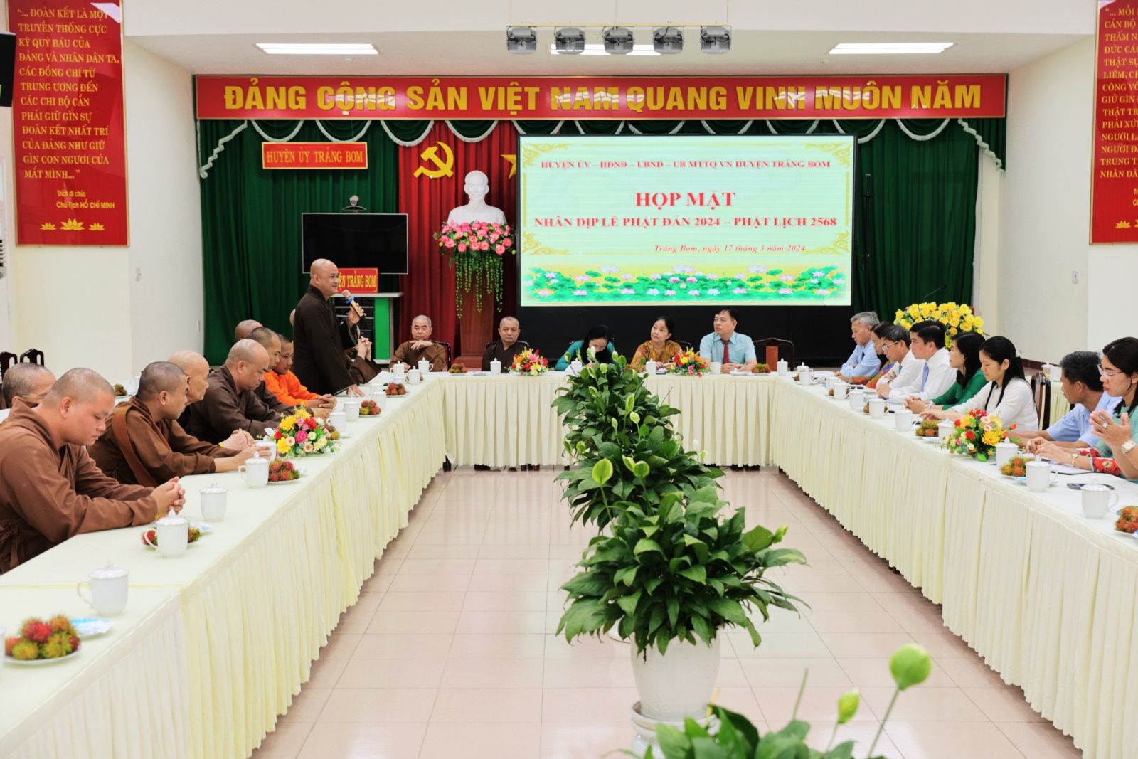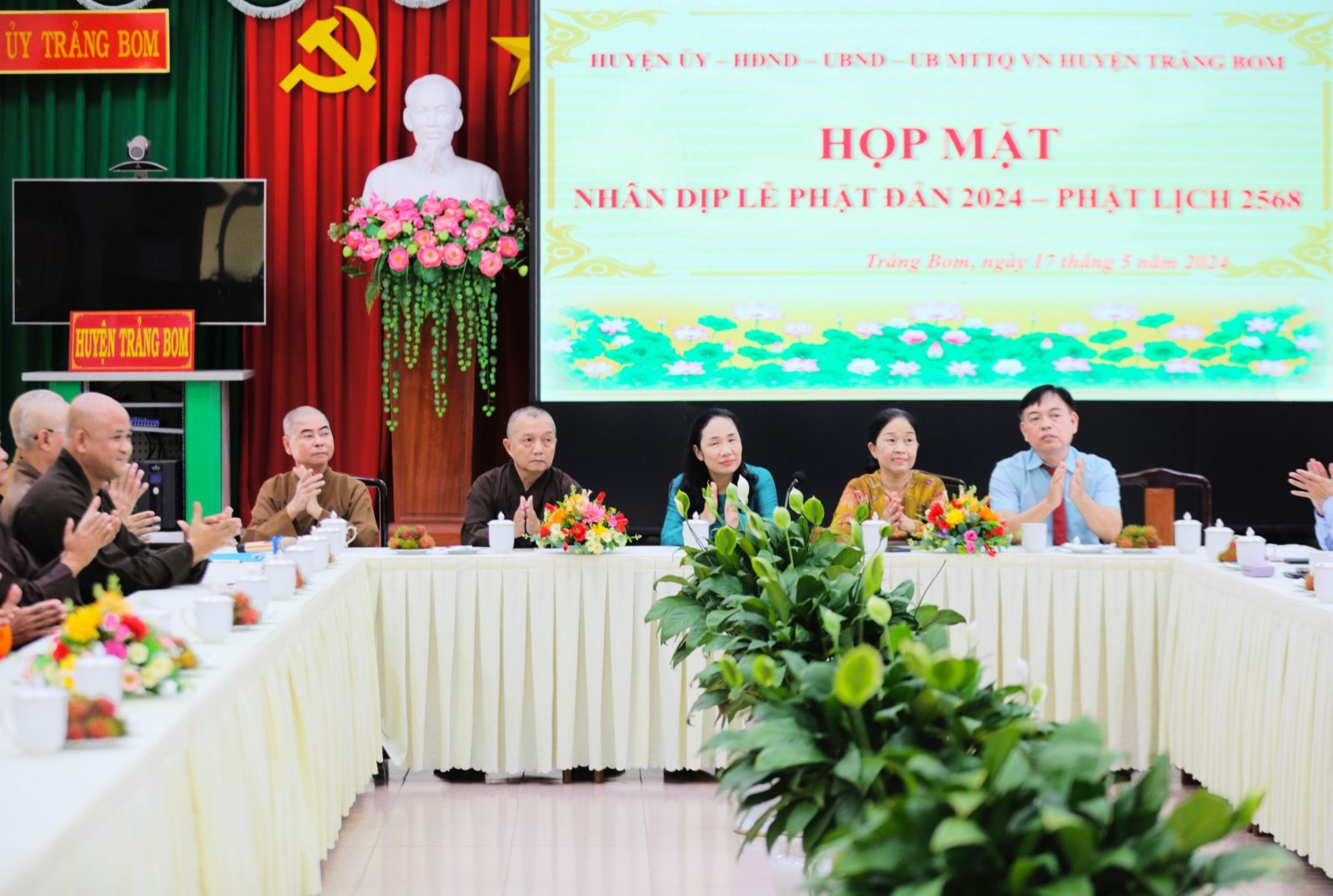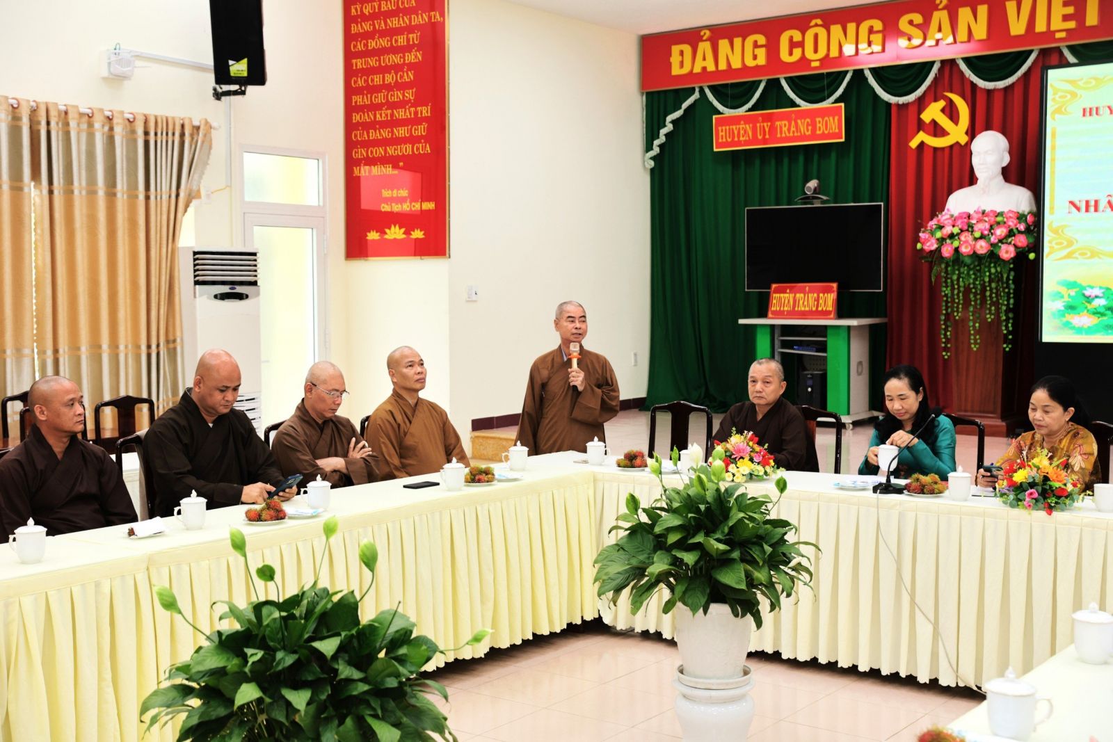 Tại buổi họp mặt, lãnh đạo huyện Trảng Bom đã thông tin về tình hình kinh tế, xã hội của huyện trong thời gian qua và khẳng định trong sự phát triển chung đó có đóng góp không nhỏ của các chức sắc, chức việc, phật tử trên địa bàn huyện. Hàng năm, các cấp chính quyền trong huyện luôn quan tâm, tạo mọi điều kiện thuận lợi cho các hoạt động tôn giáo hợp pháp. Đồng thời đánh giá cao sự tham gia tích cực, có hiệu quả tăng ni, phật tử trong các phong trào, cuộc vận động do huyện phát động, góp phần nâng cao đời sống vật chất, tinh thần cho nhân dân, giữ vững an ninh chính trị và trật tự, an toàn xã hội tại địa phương; tạo mối quan hệ gắn bó, đoàn kết, đùm bọc lẫn nhau trong cộng đồng dân cư.